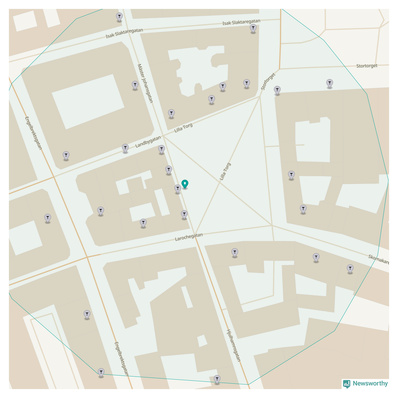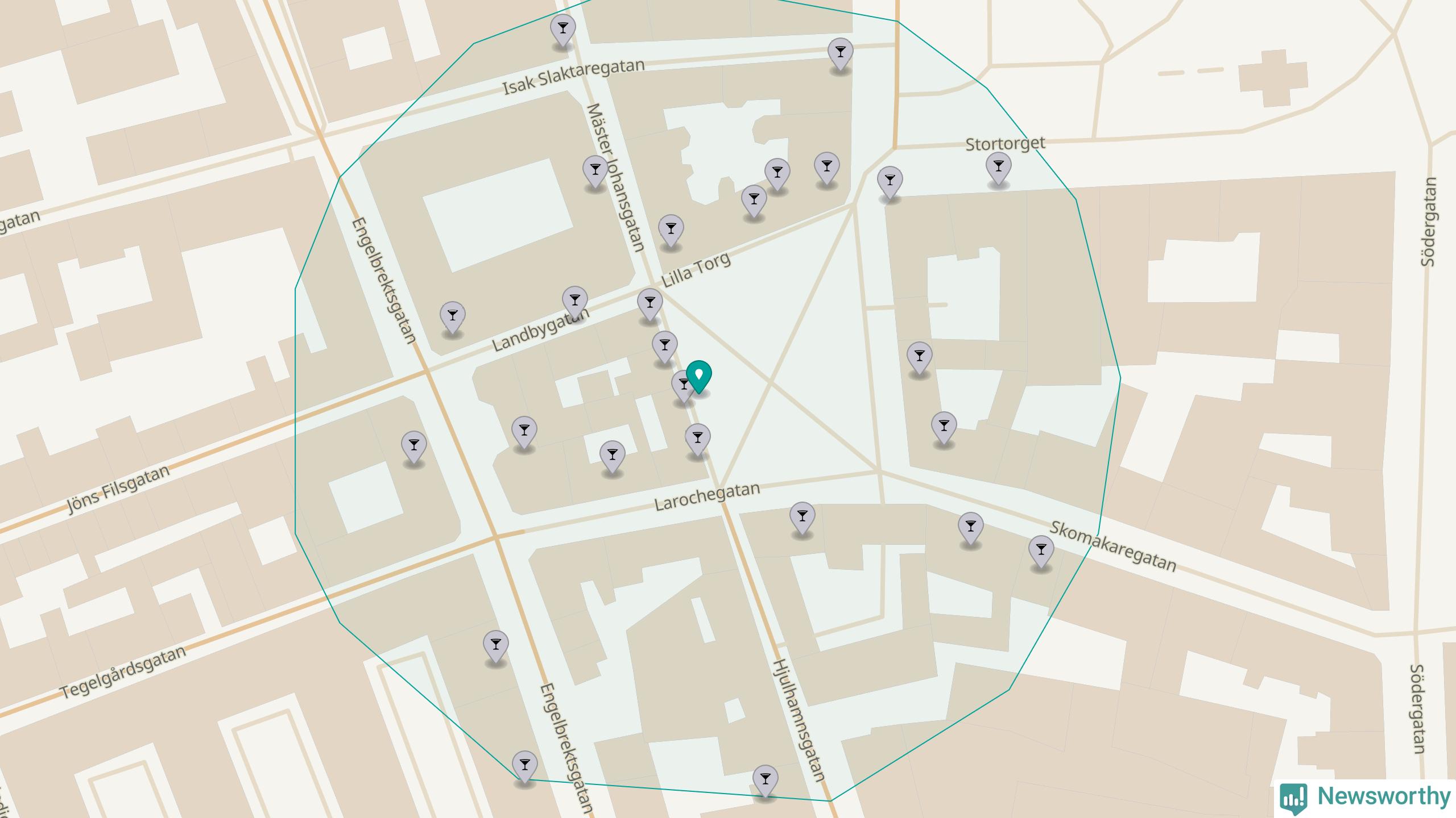 Om du står på Lilla torg har du sisådär 24 krogar, restauranger eller hotell med serveringstillstånd inom en radie på 100 meter. Det är den krogtätaste platsen i Malmö kommun, den krogtätaste platsen i Skåne – och en av de krogtätaste platserna i hela Sverige.