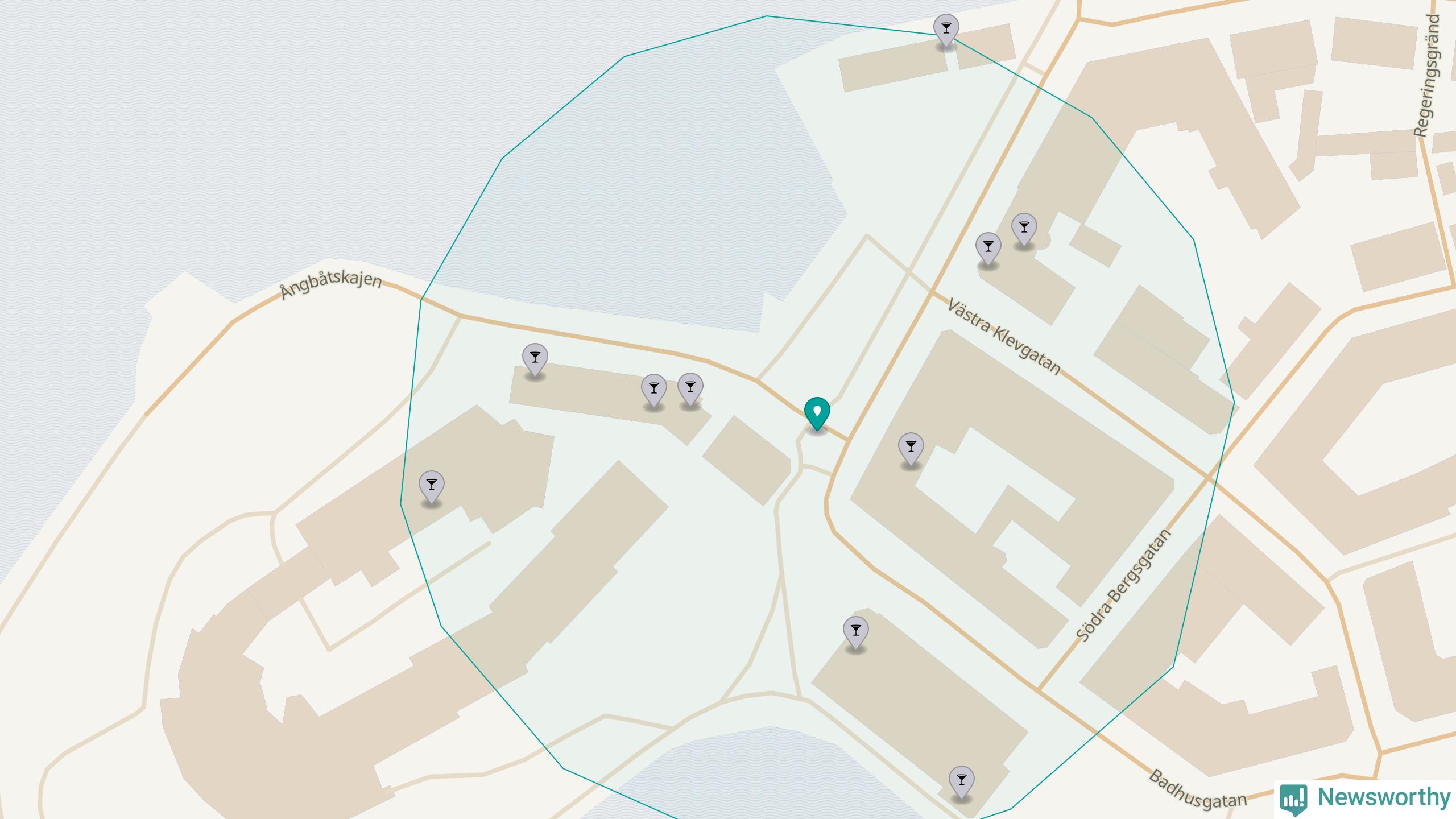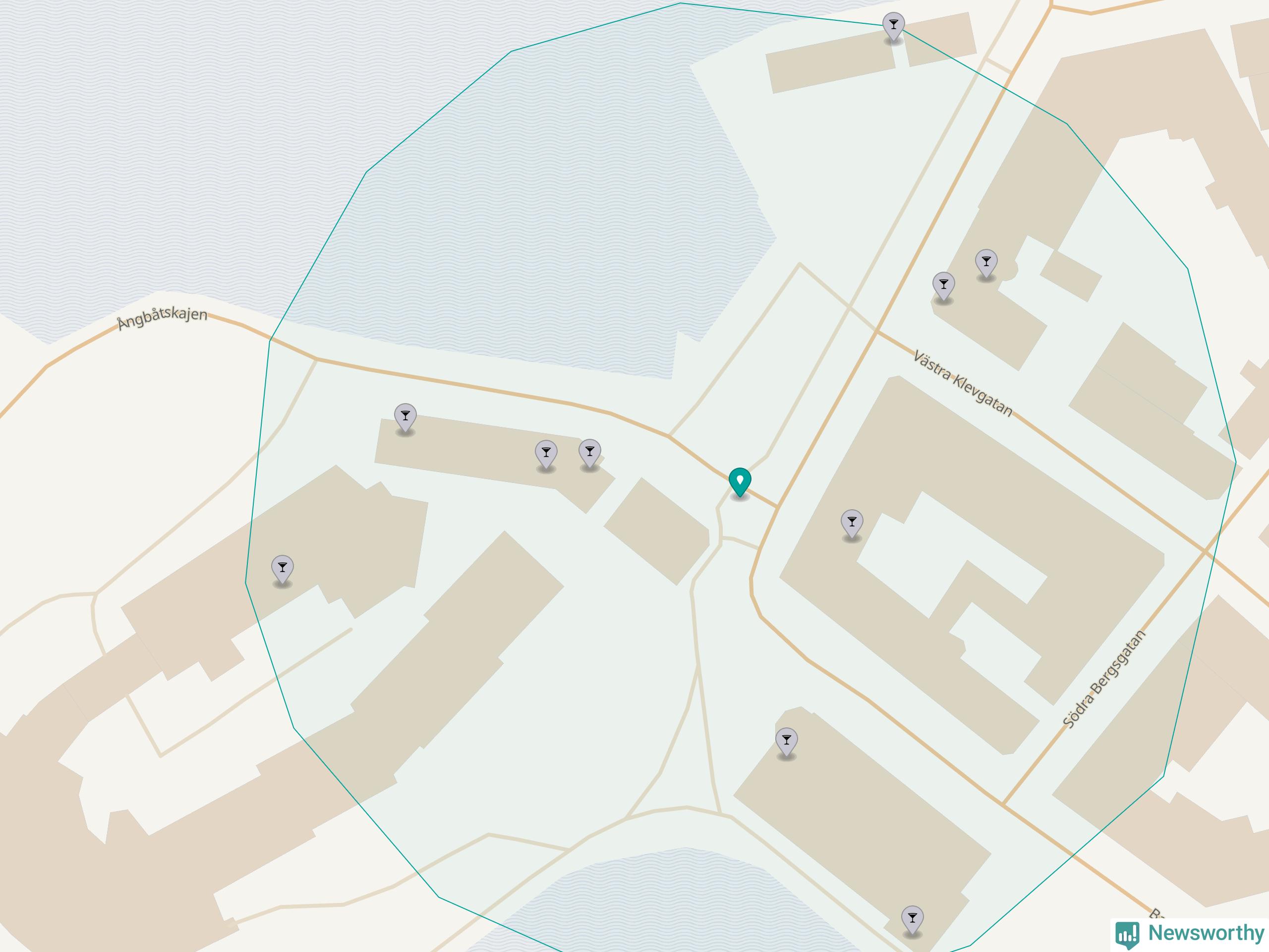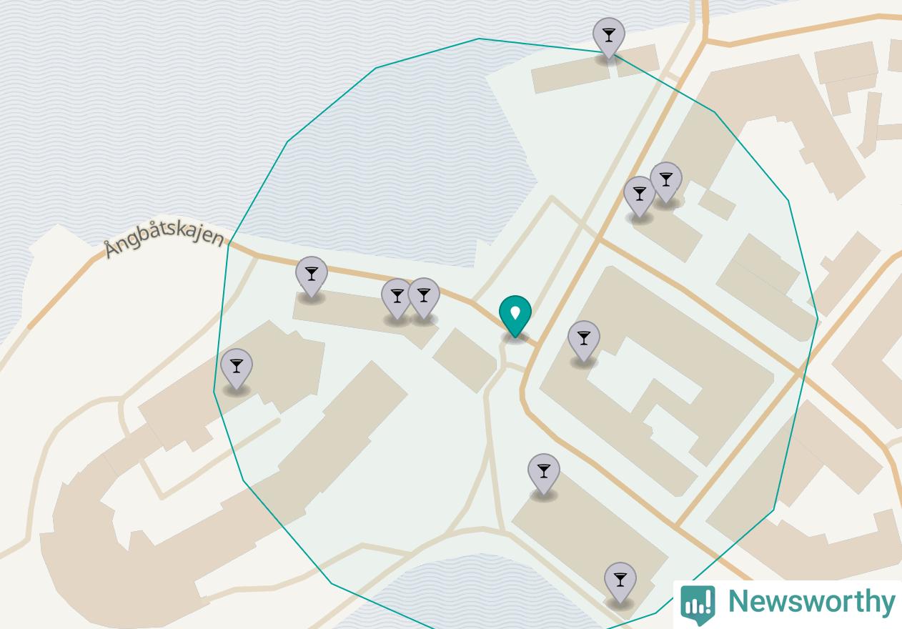 Om du står på Ångbåtskajen har du tio krogar, restauranger eller hotell med serveringstillstånd inom en radie på 100 meter. Det är den krogtätaste platsen i Strömstads kommun.