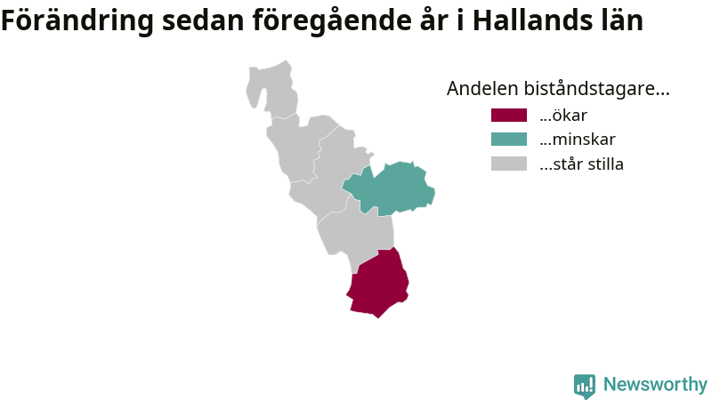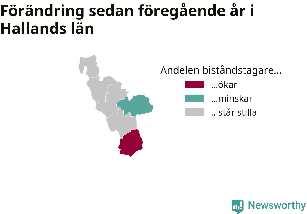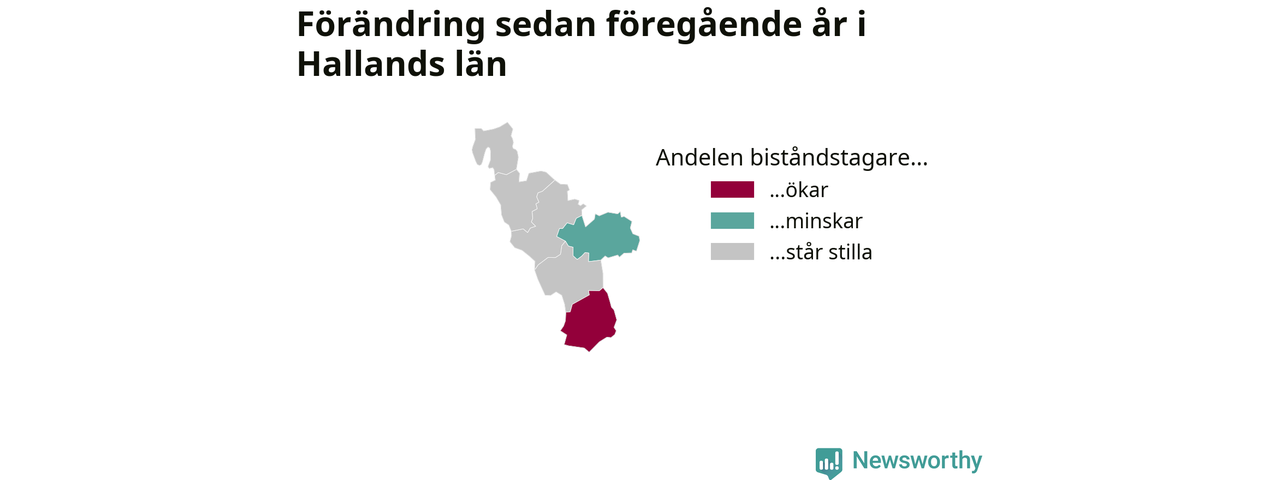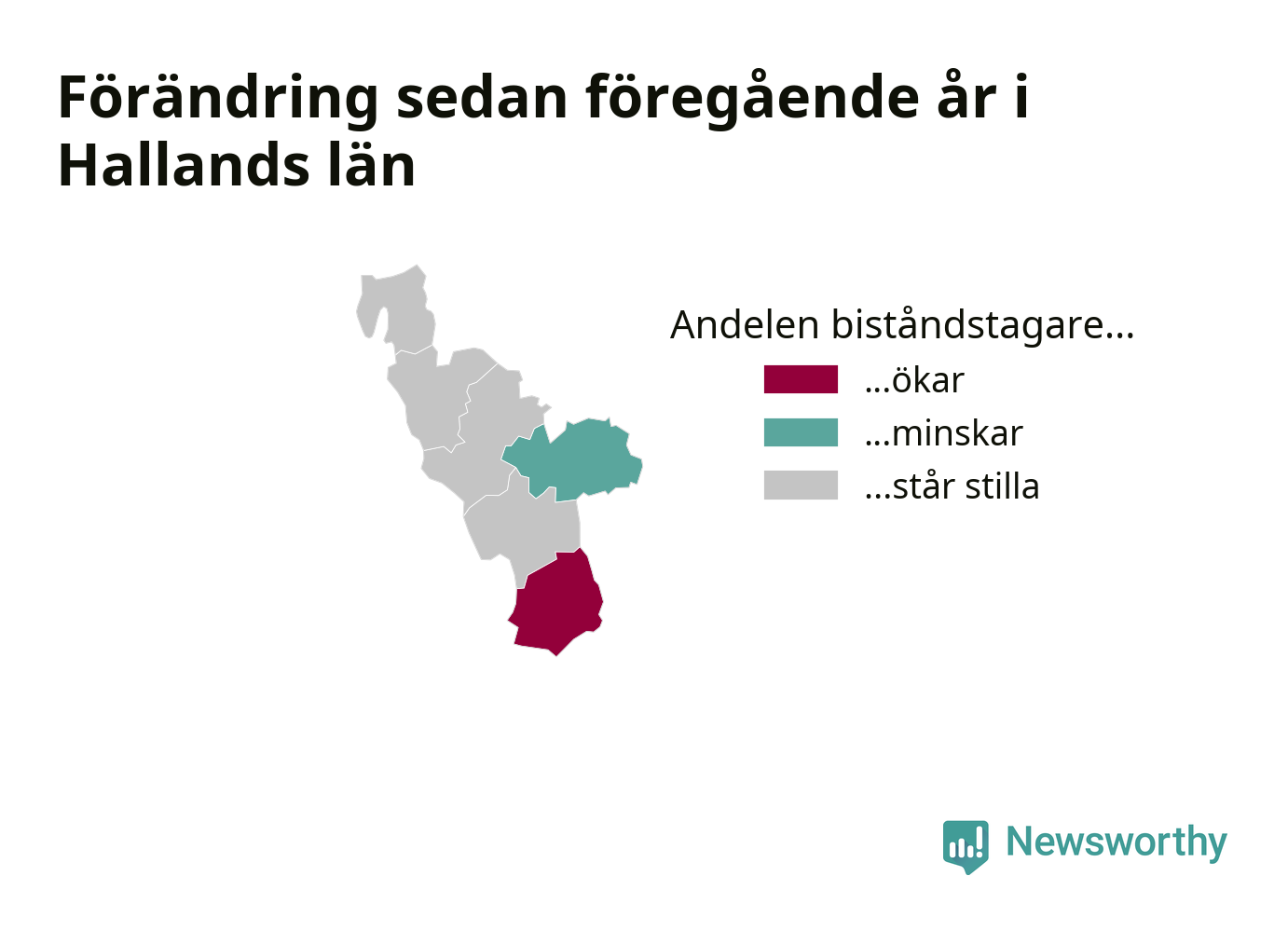 I Halland som helhet var andelen biståndstagare 0,7 procent, vilket är ungefär samma nivå som månaden innan.