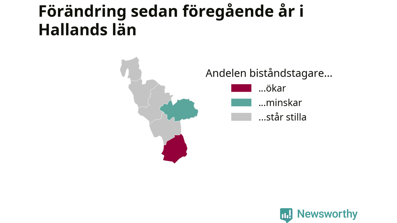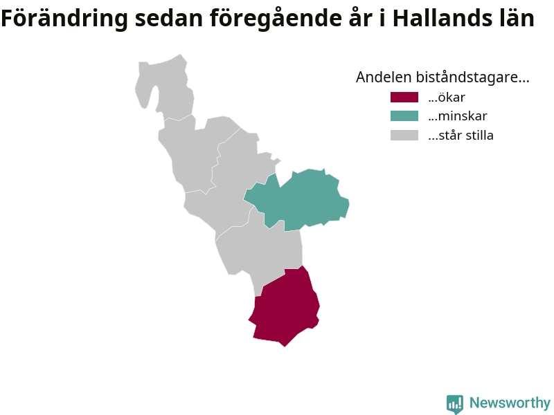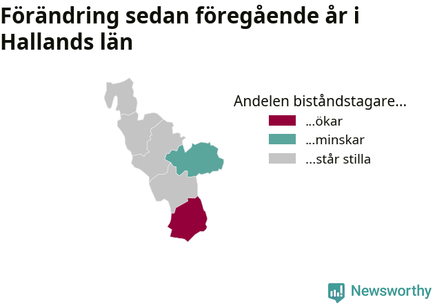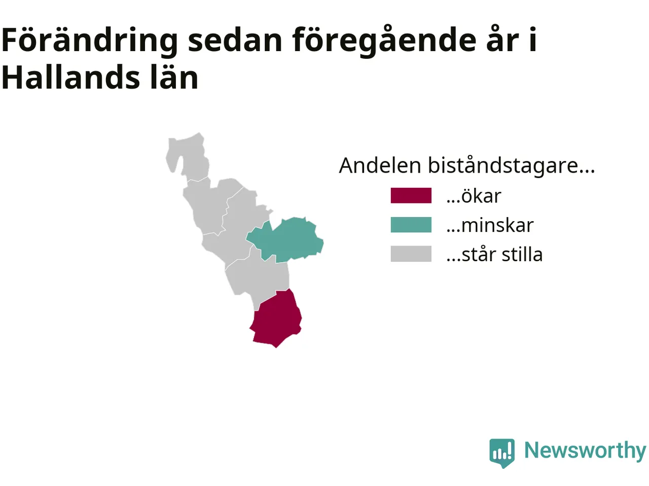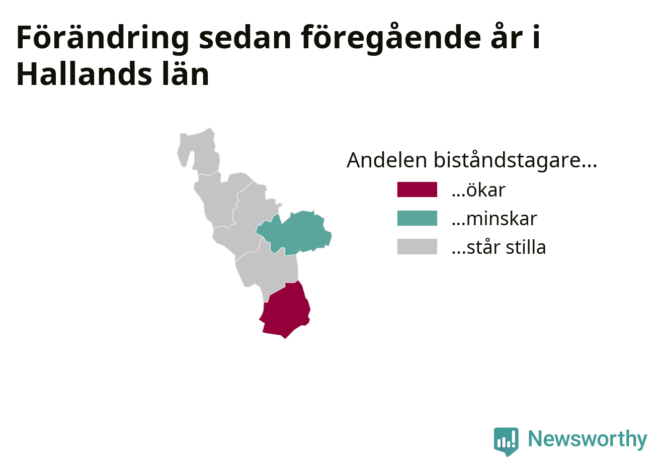 I Halland som helhet var andelen biståndstagare 0,7 procent, vilket är ungefär samma nivå som månaden innan.