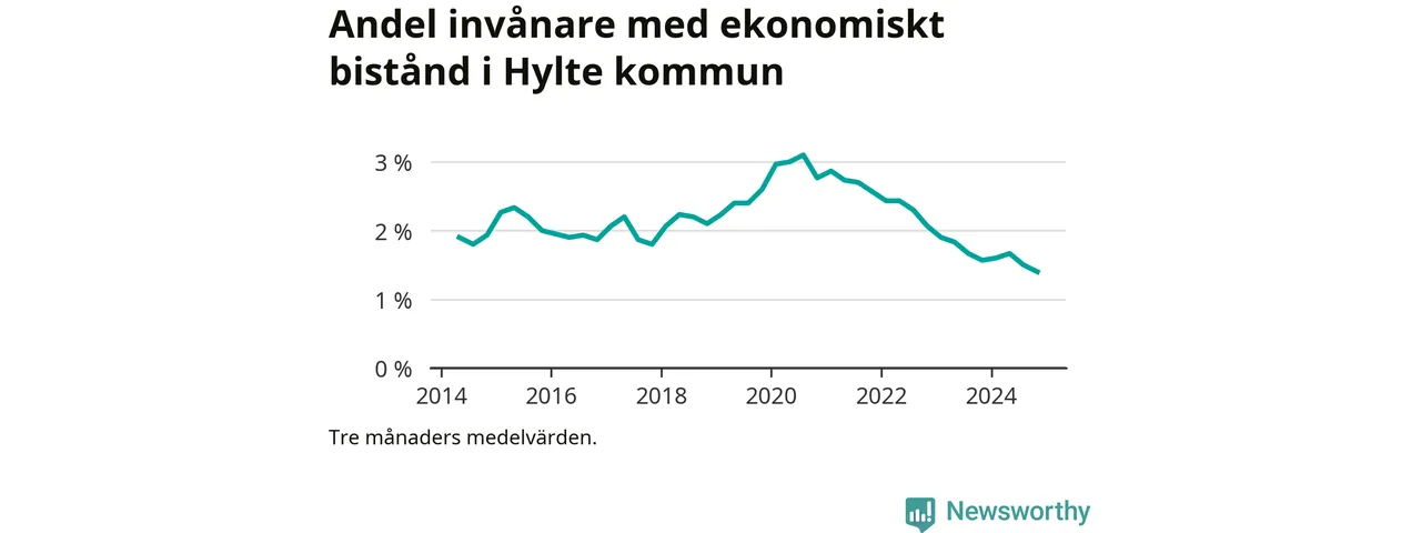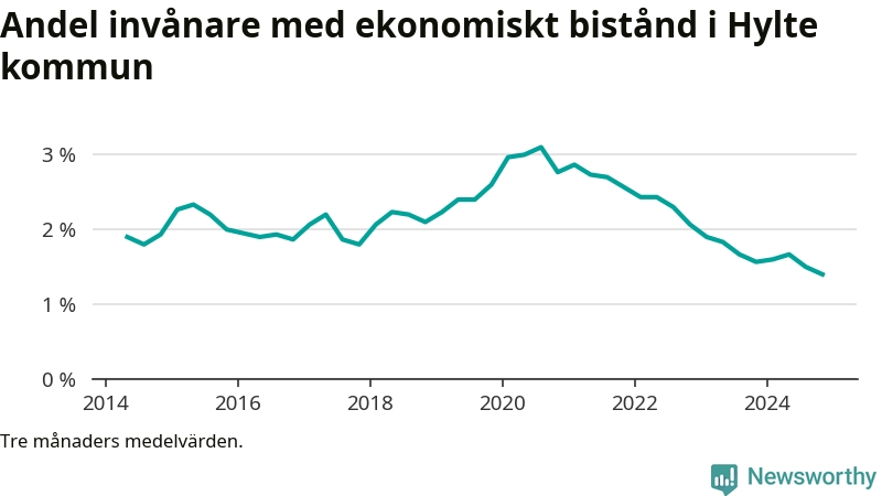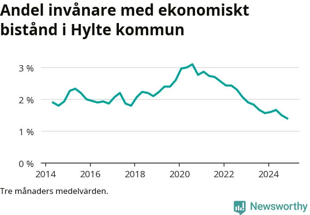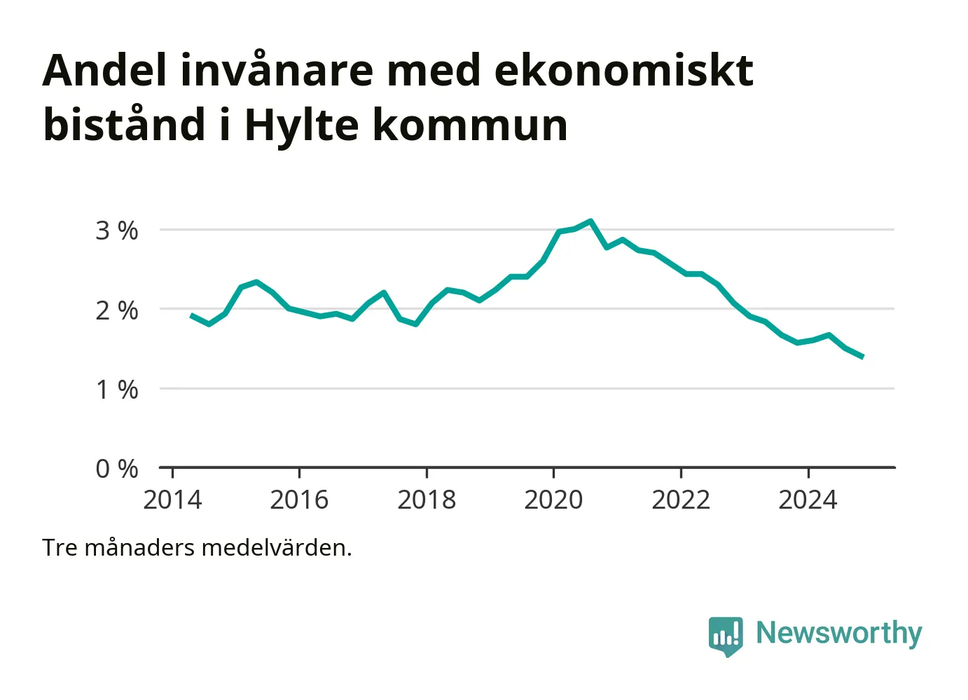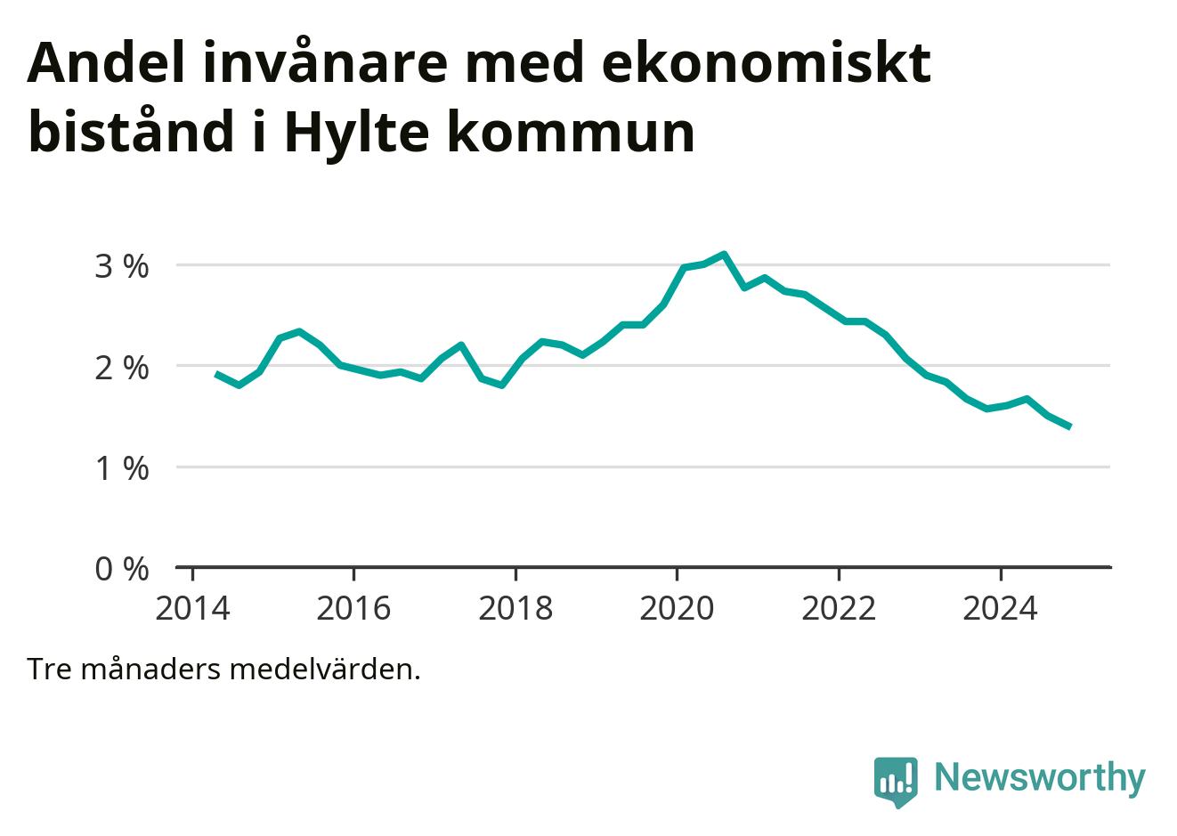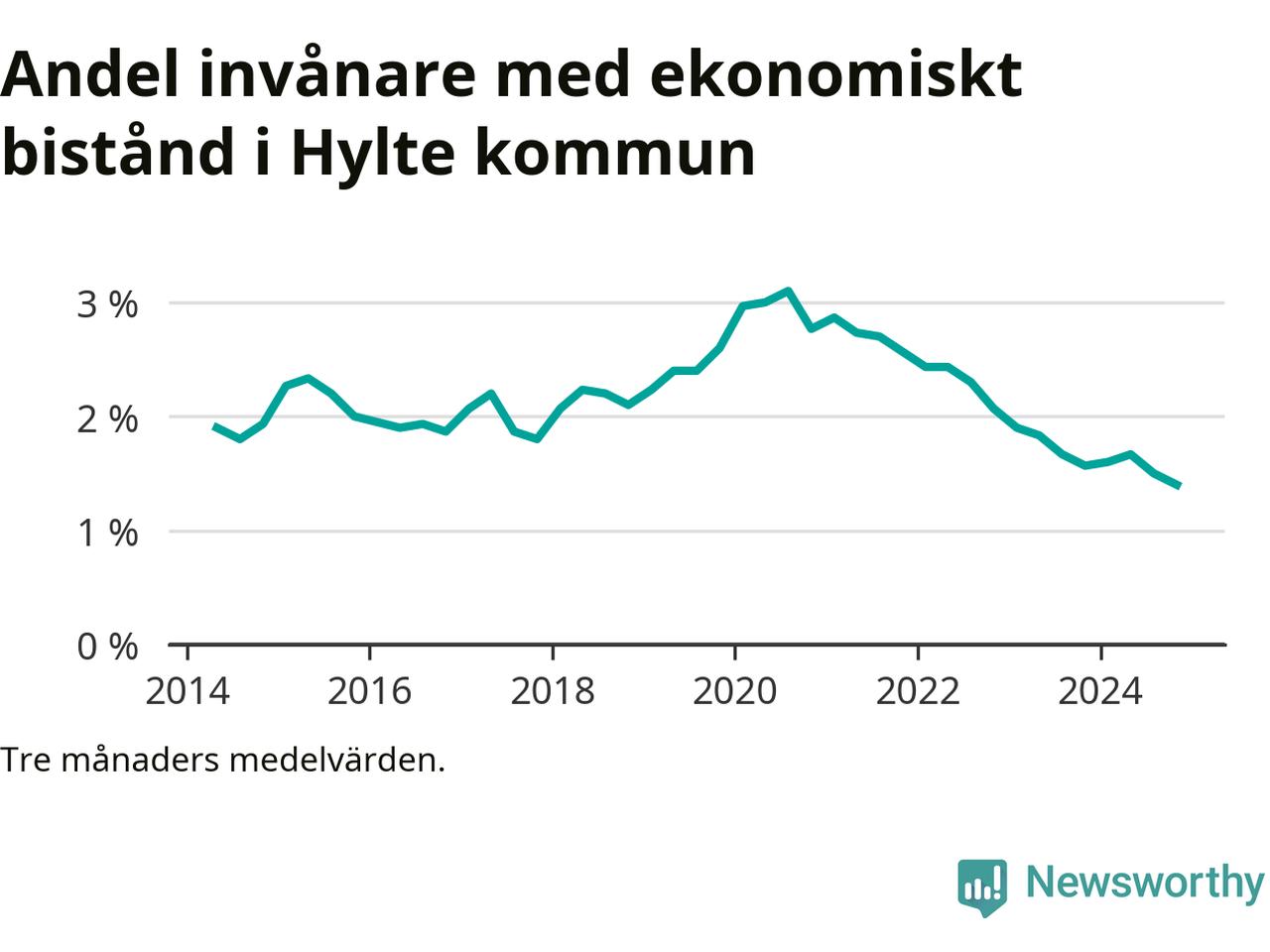 Andelen invånare med ekonomiskt bistånd i Hylte kommun var under hösten den lägsta sedan åtminstone 2014. Det visar den senaste, preliminära statistiken från Socialstyrelsen.