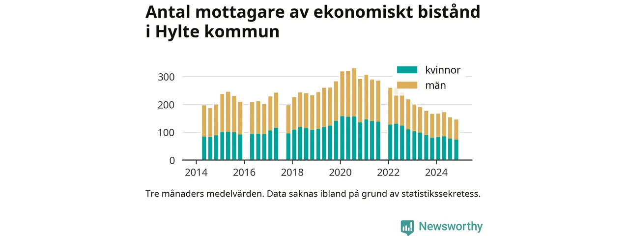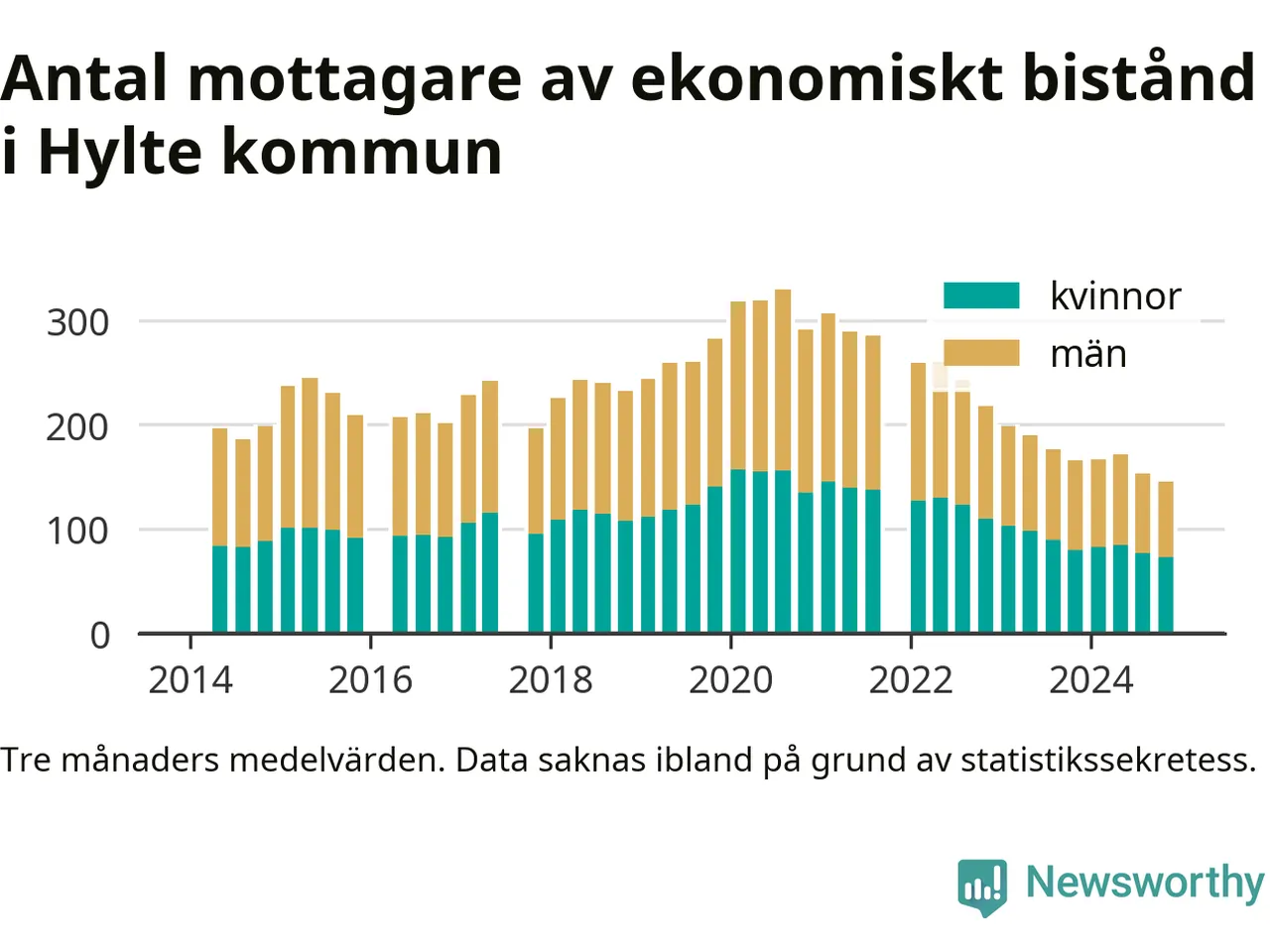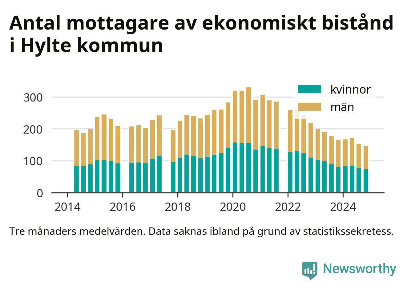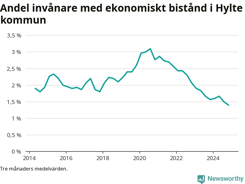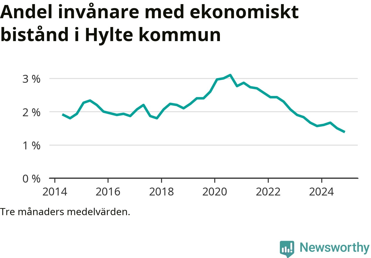 Andelen invånare med ekonomiskt bistånd i Hylte kommun var under hösten den lägsta sedan åtminstone 2014. Det visar den senaste, preliminära statistiken från Socialstyrelsen.