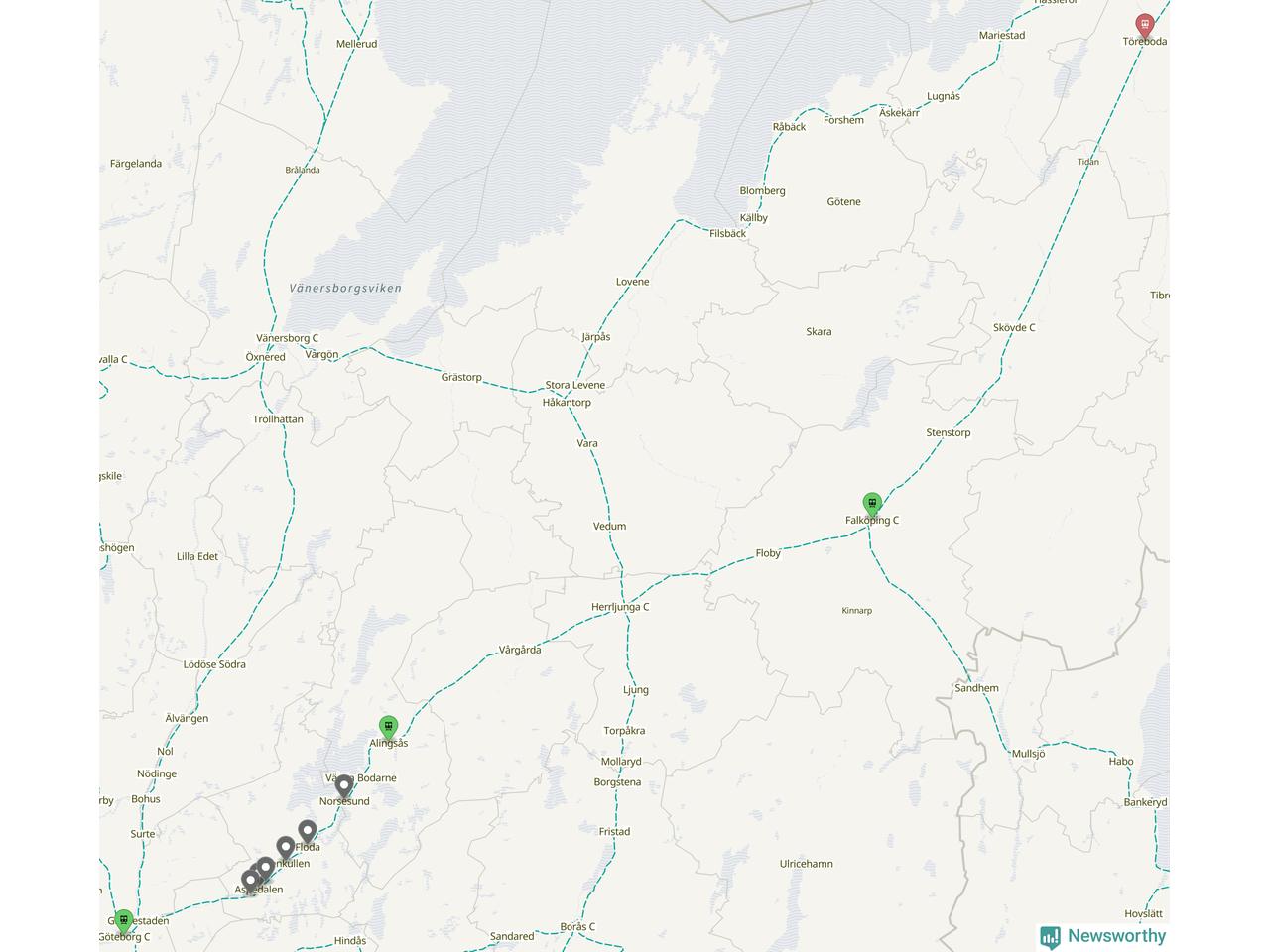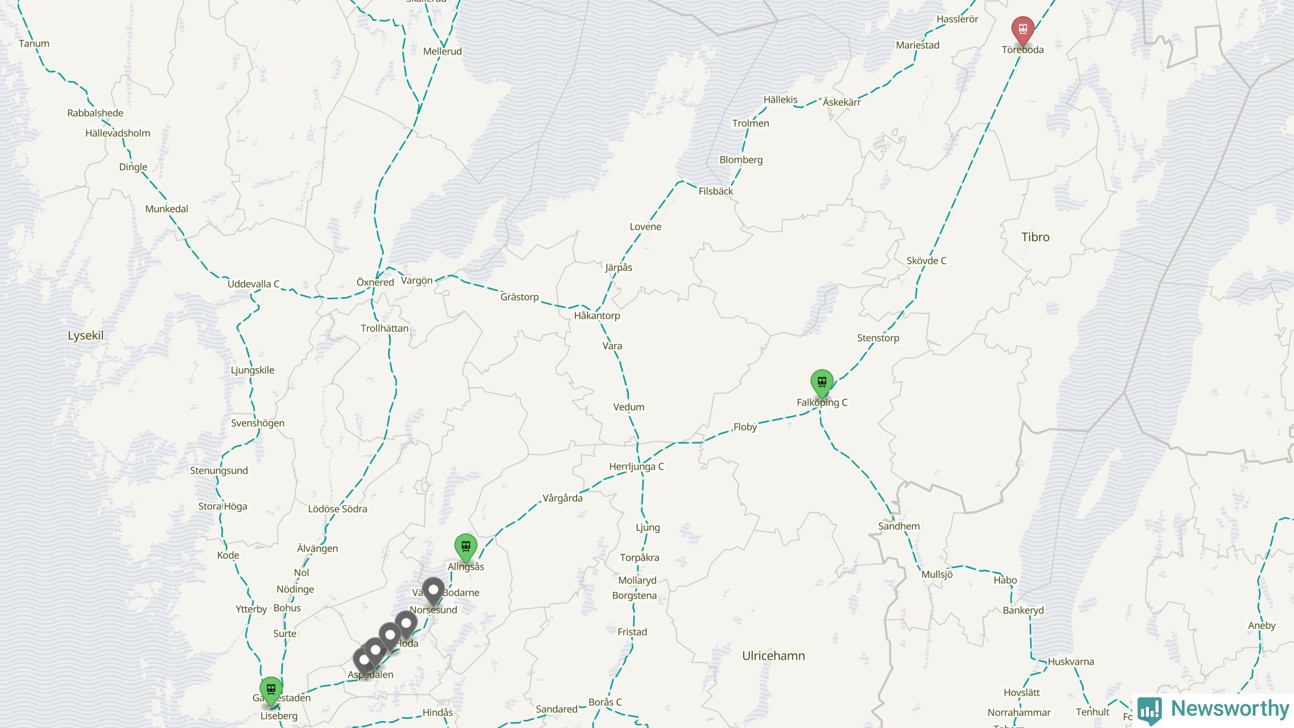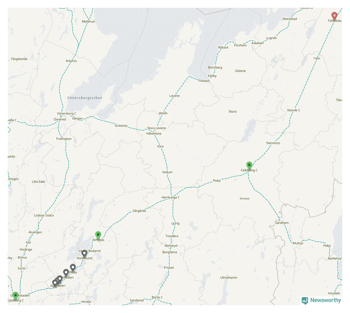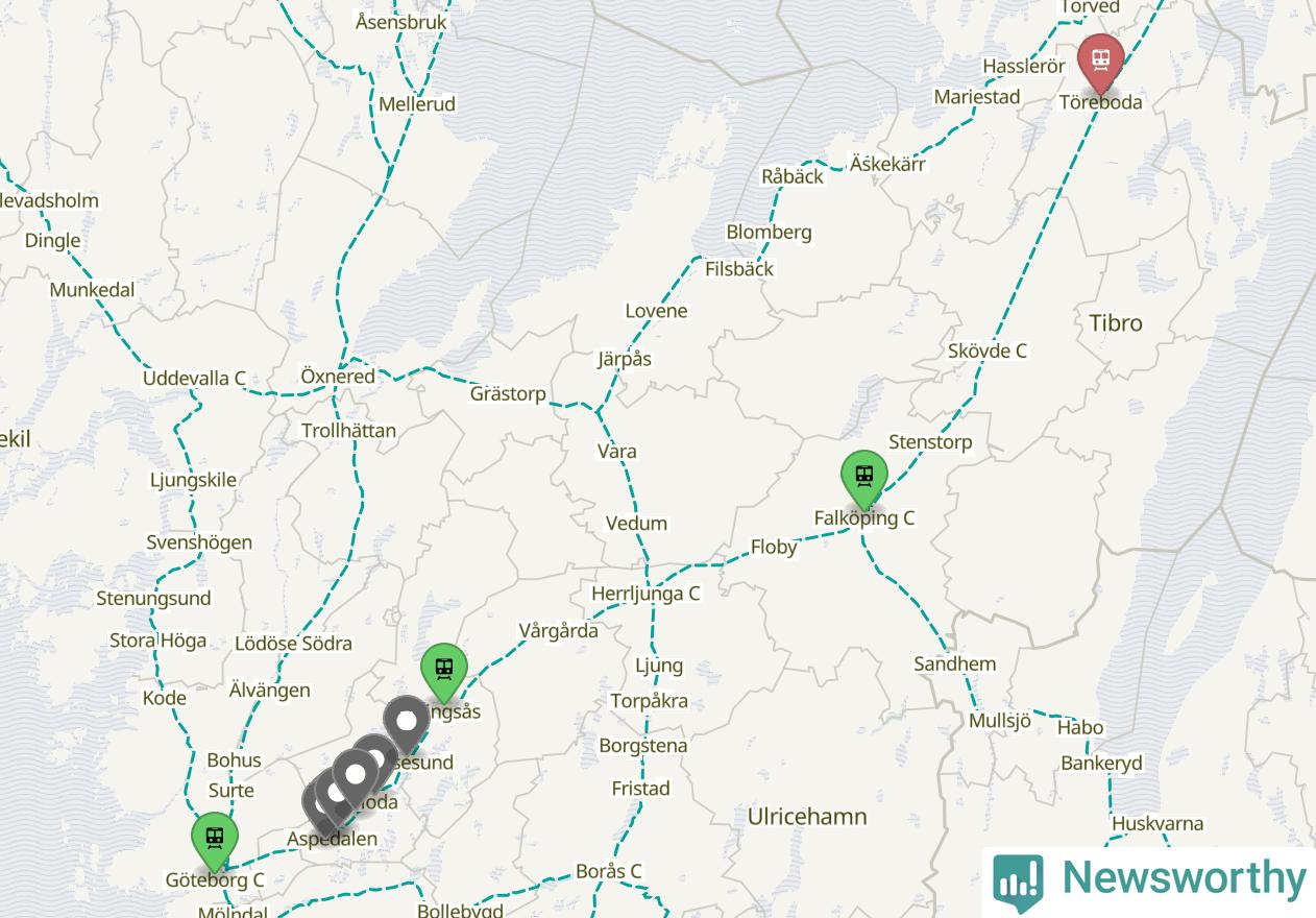 Kartdata från Mapbox, Newsworthy, OpenStreetMap och Trafikverket. Uppgifter om sträckor med passagerartrafik från jarnvag.net.