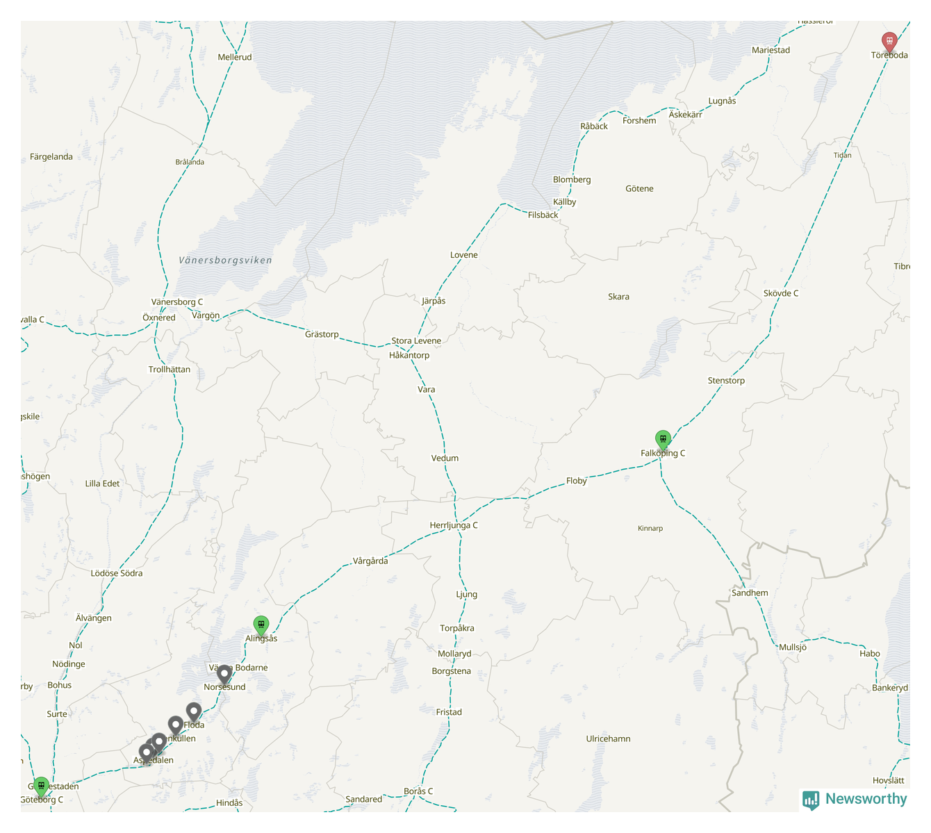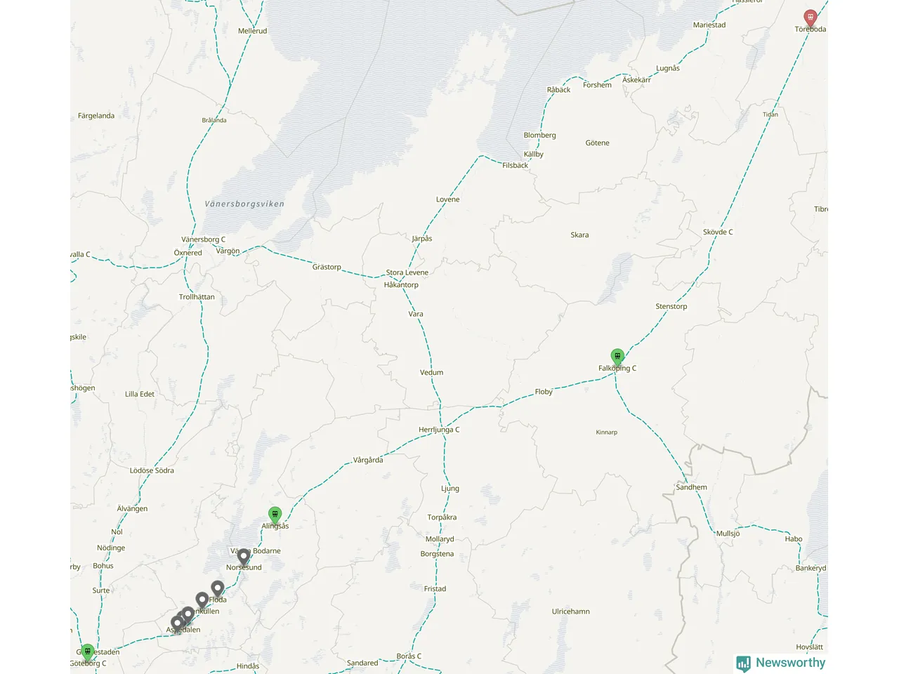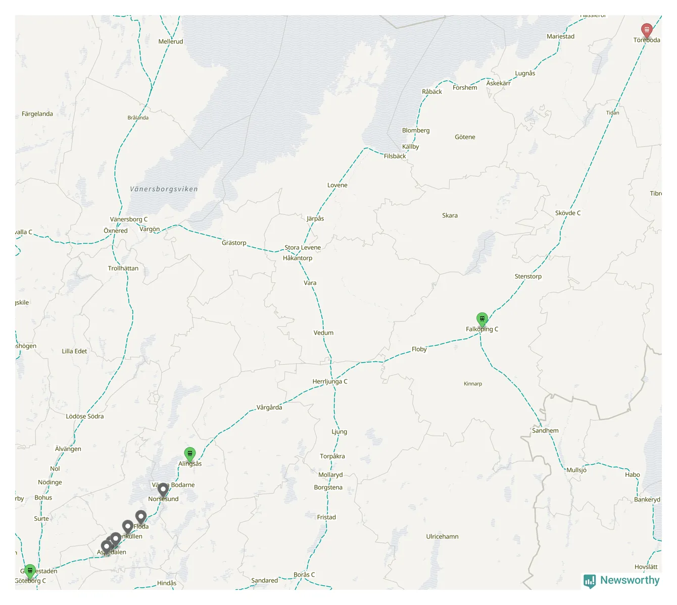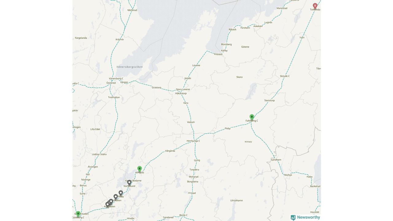 Kartdata från Mapbox, Newsworthy, OpenStreetMap och Trafikverket. Uppgifter om sträckor med passagerartrafik från jarnvag.net.