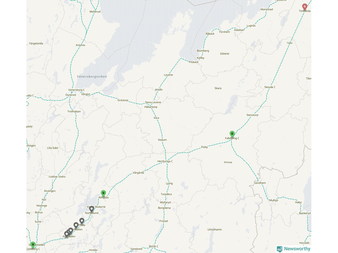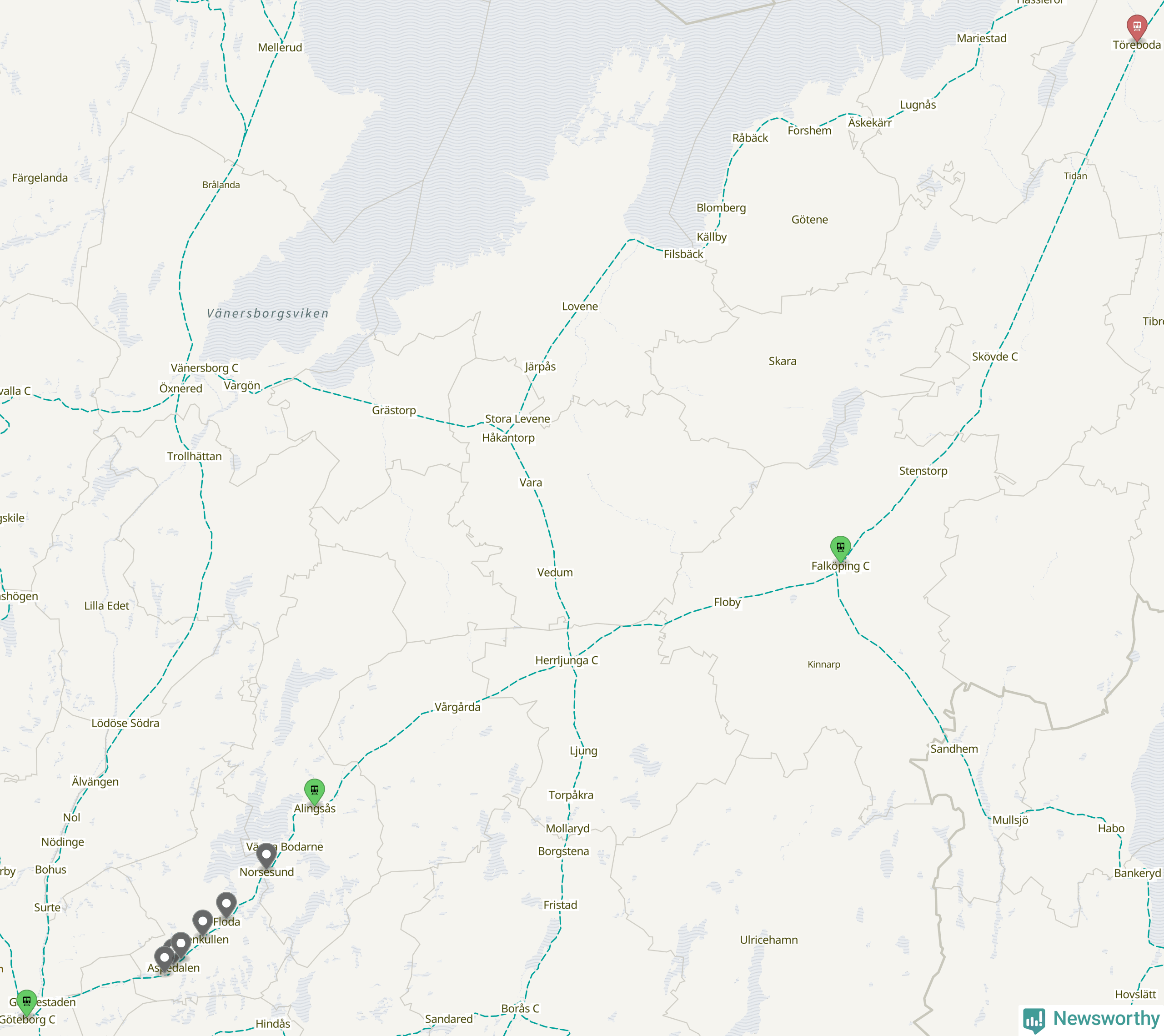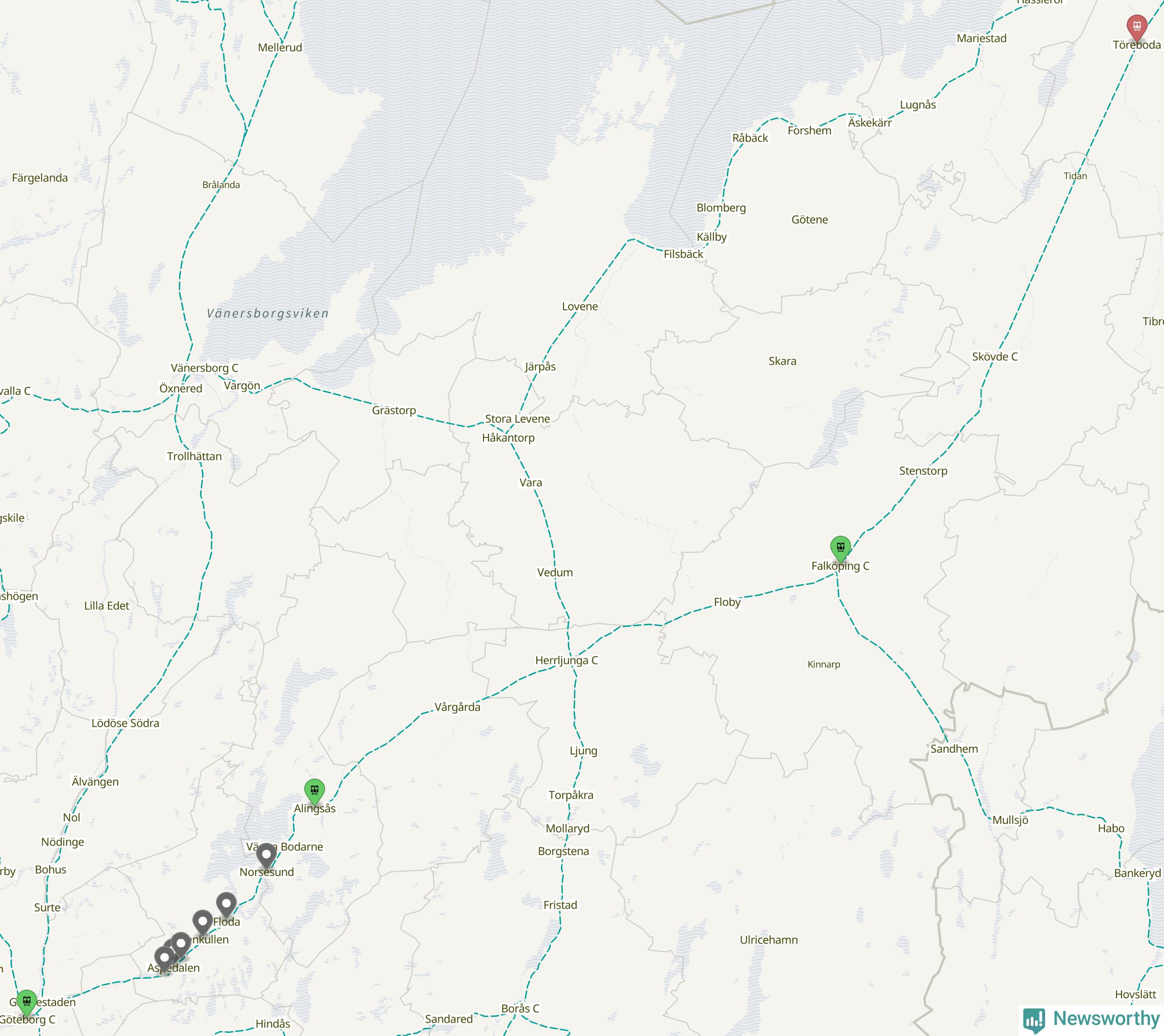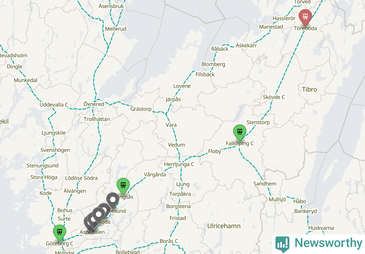 19 december 11.28–13.00obehöriga i spårområdetStopp i tågtrafiken i Vårgårda sedan kl 11:30 på grund av obehöriga i spårområdet