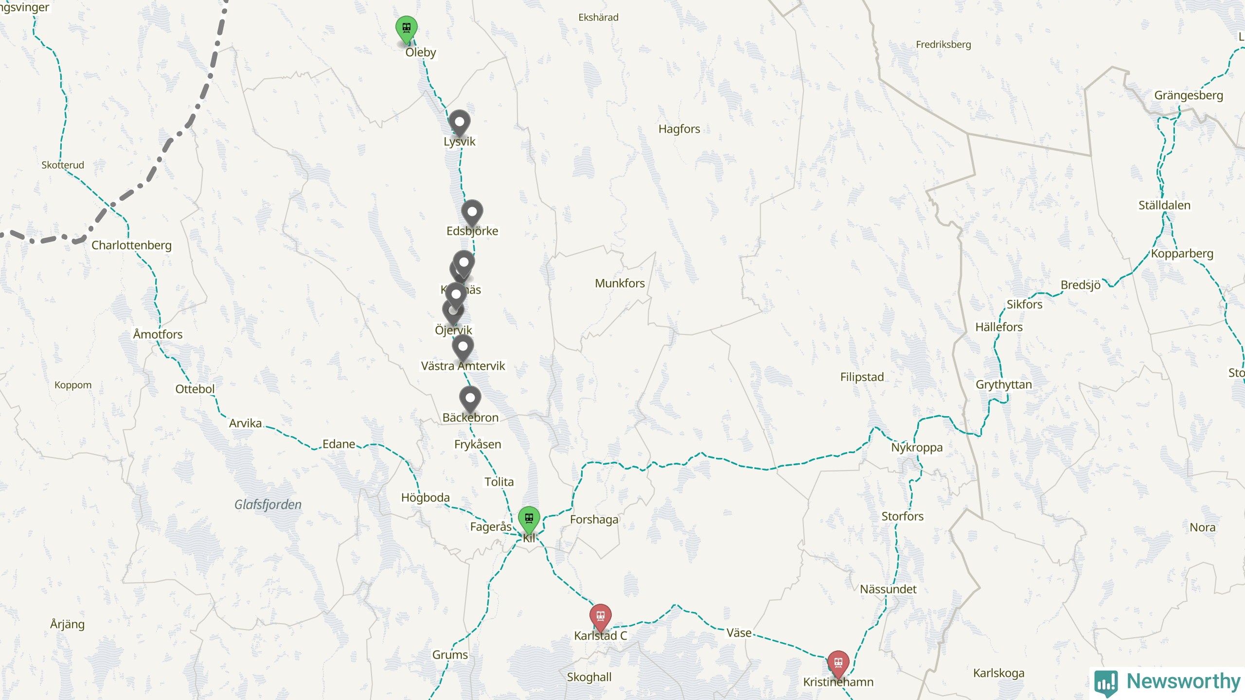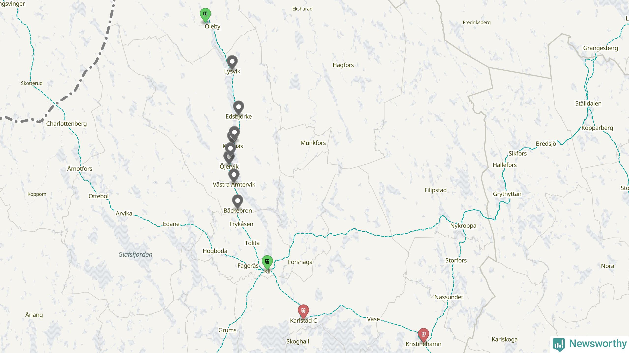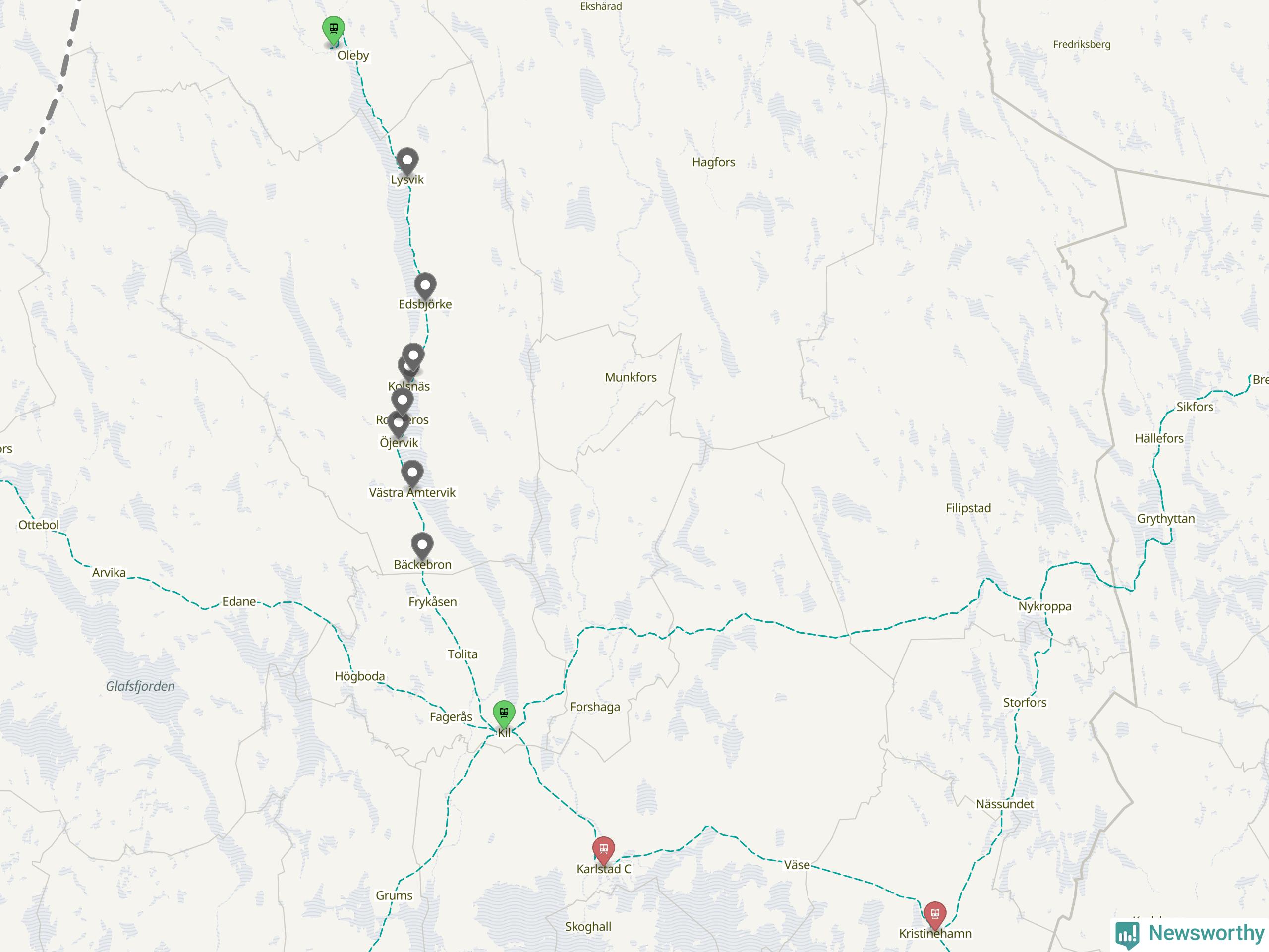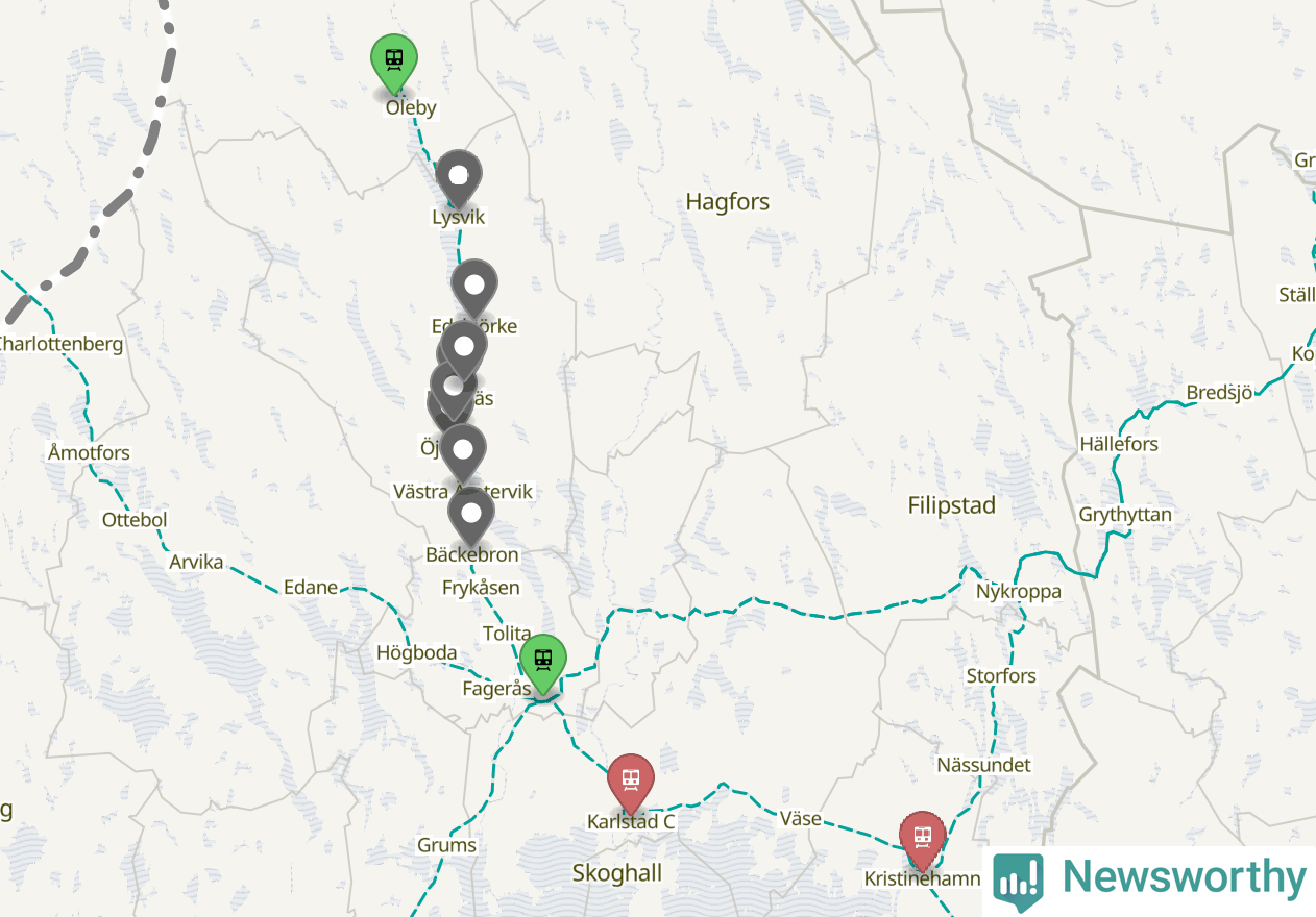 Kartdata från Mapbox, Newsworthy, OpenStreetMap och Trafikverket. Uppgifter om sträckor med passagerartrafik från jarnvag.net.
