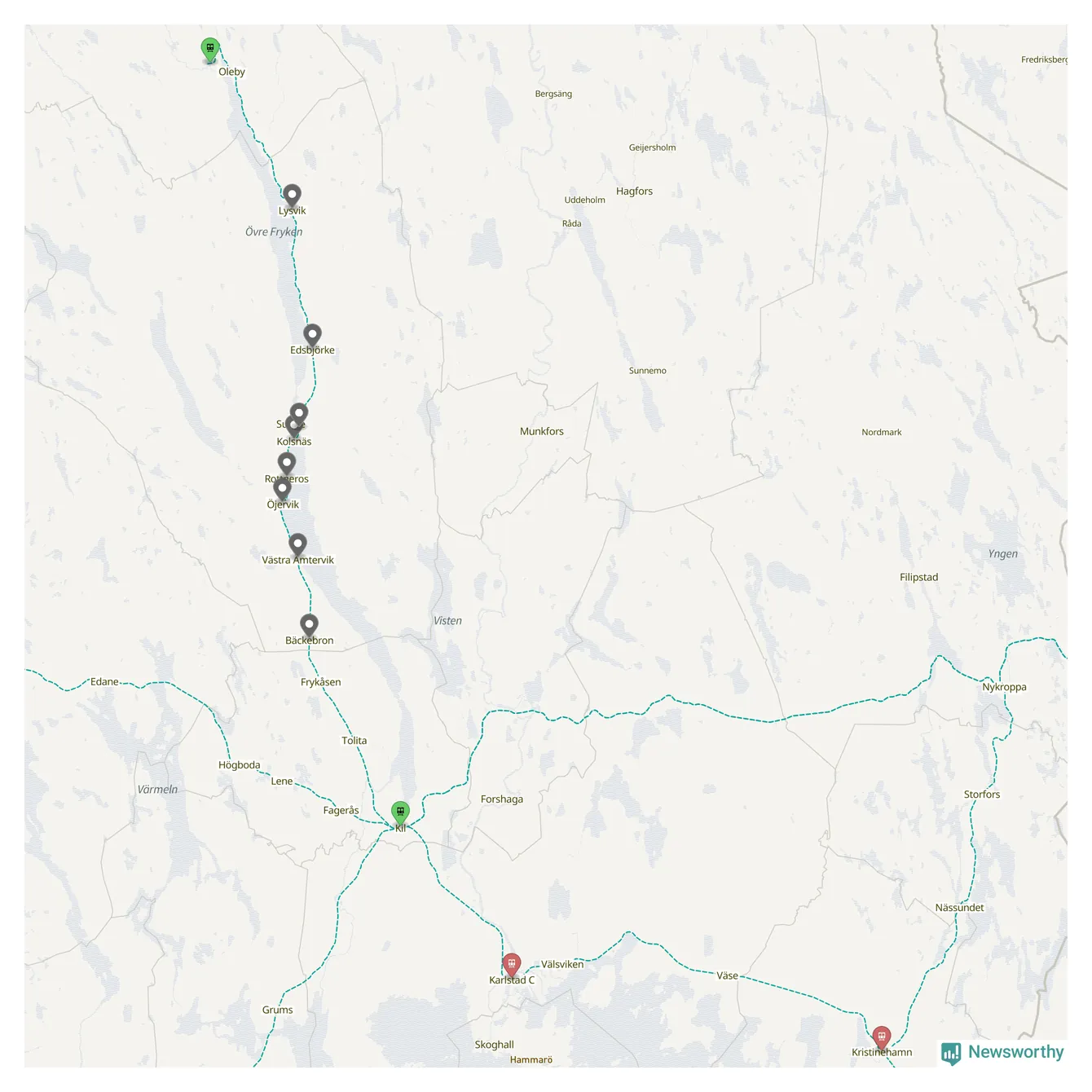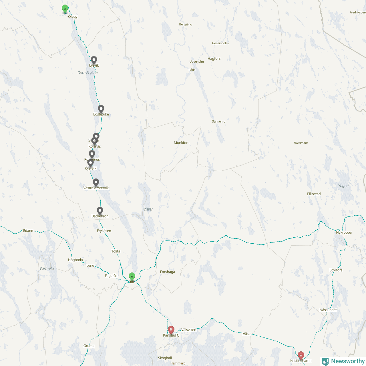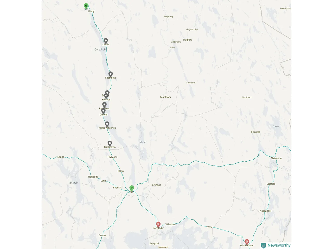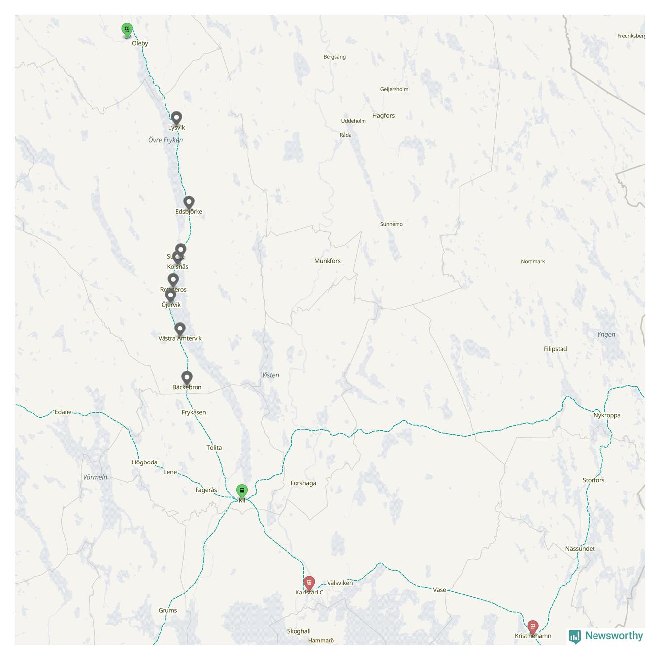 Kartdata från Mapbox, Newsworthy, OpenStreetMap och Trafikverket. Uppgifter om sträckor med passagerartrafik från jarnvag.net.