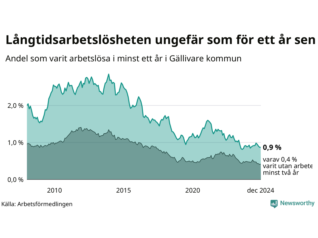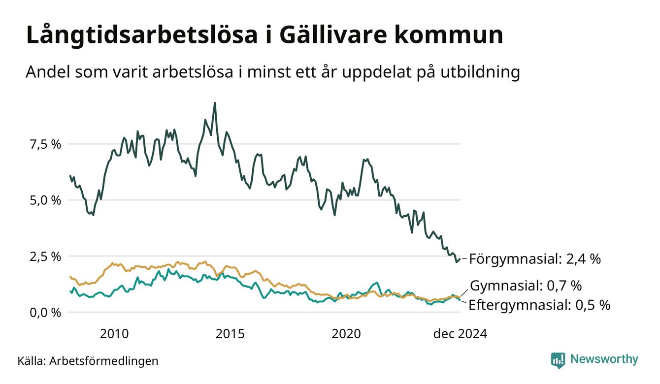 Graf: Andel arbetslösa i Gällivare som varit utan arbete i minst 12 månader