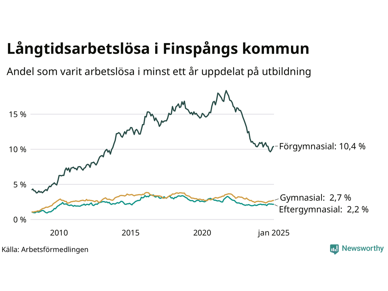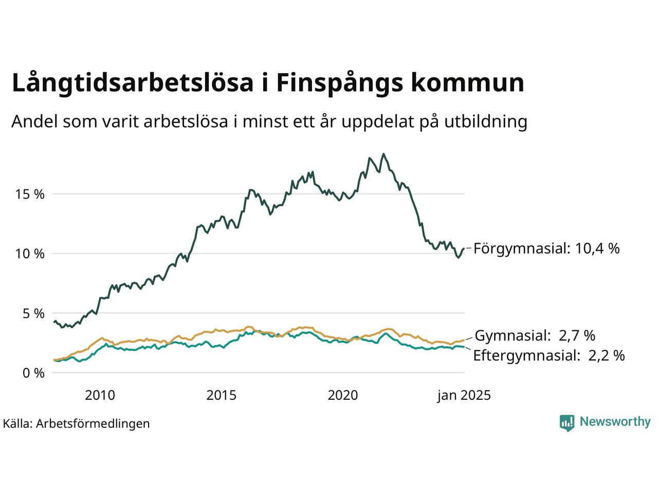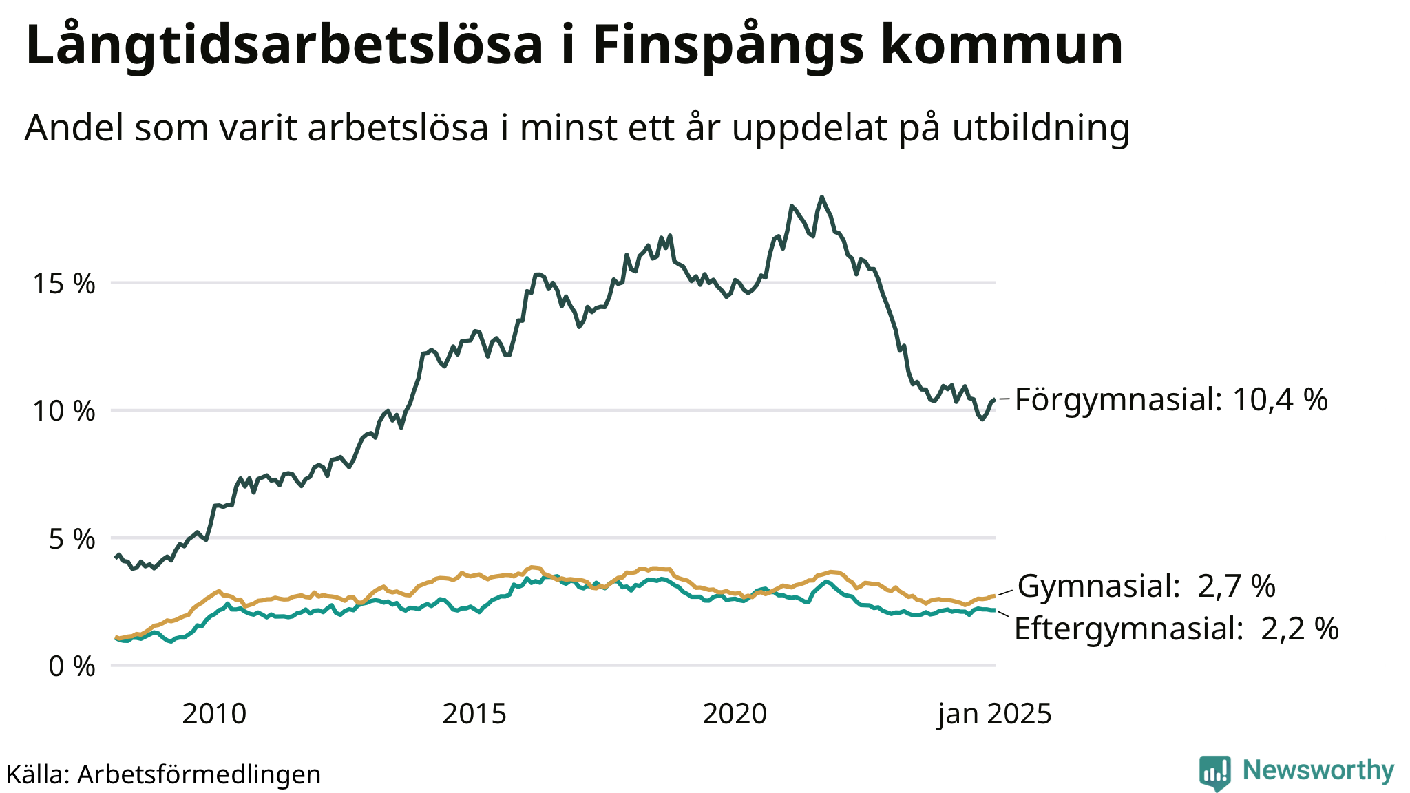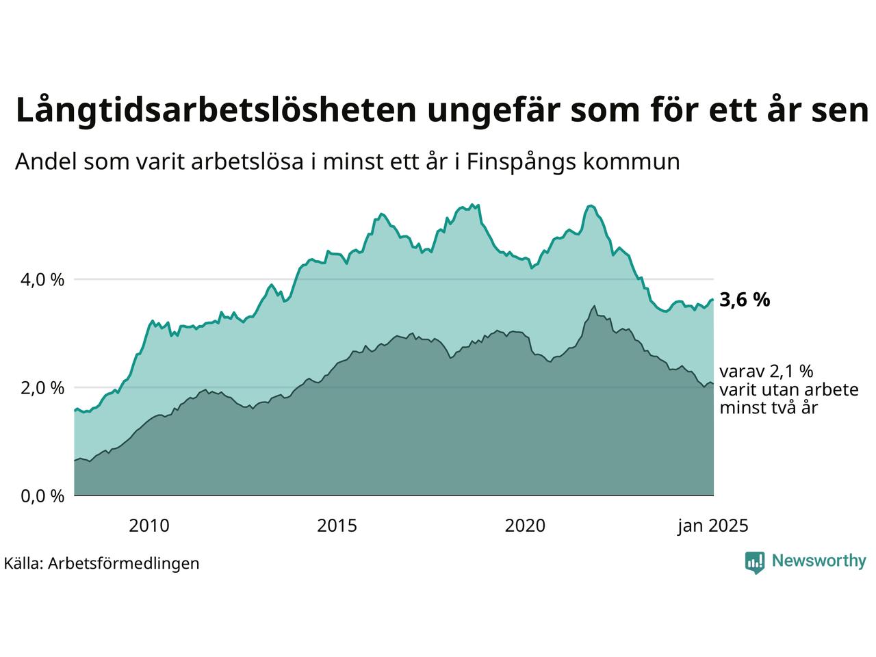 | Andel arbetslösa i minst ett år | 3,6 % | 3,3 % | 2,9 % |