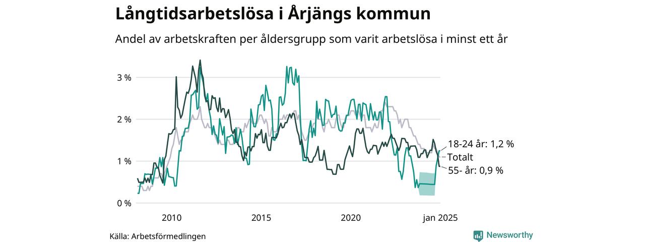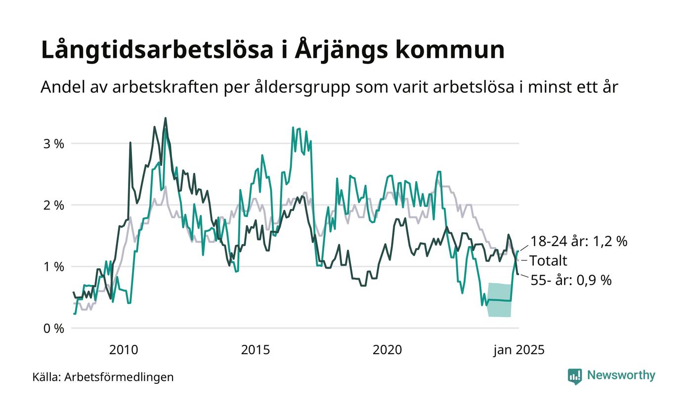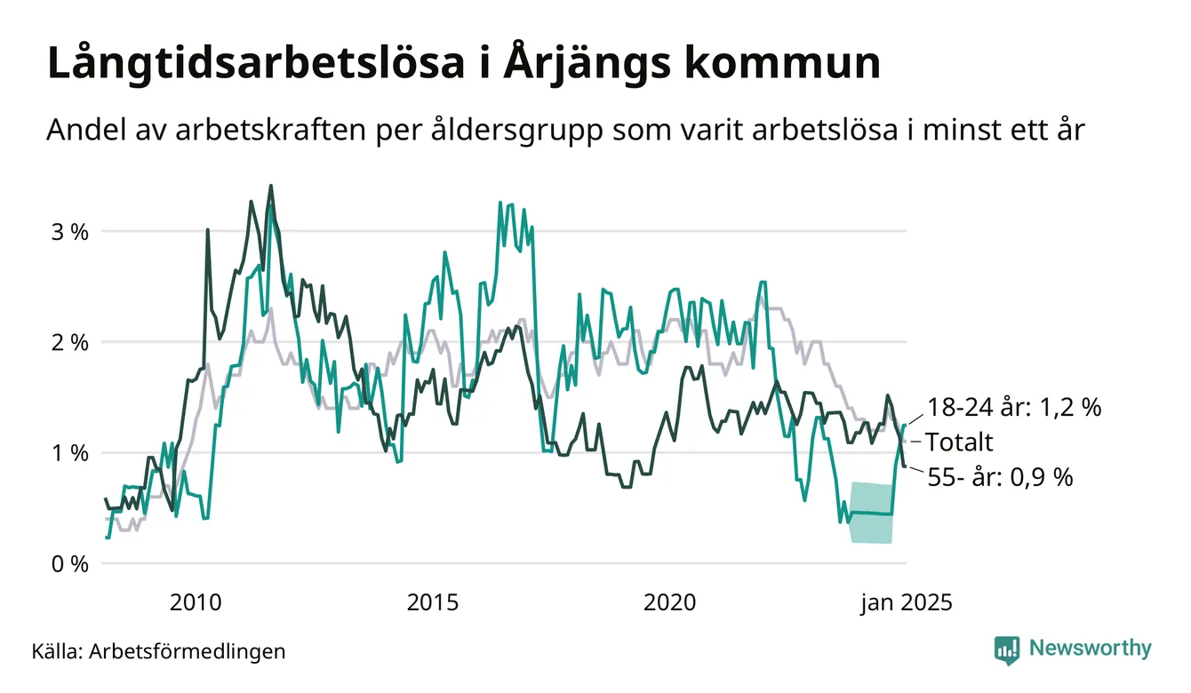 Av de 51 personerna som varit arbetslösa i mer än ett år i Årjängs kommun är tio personer mellan 55 och 651 år och sju är mellan 18 och 24 år.