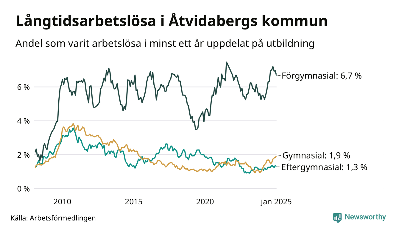 | Bland dem med eftergymnasial utbildning | 1,3 % | 1,7 % | 1,8 % |