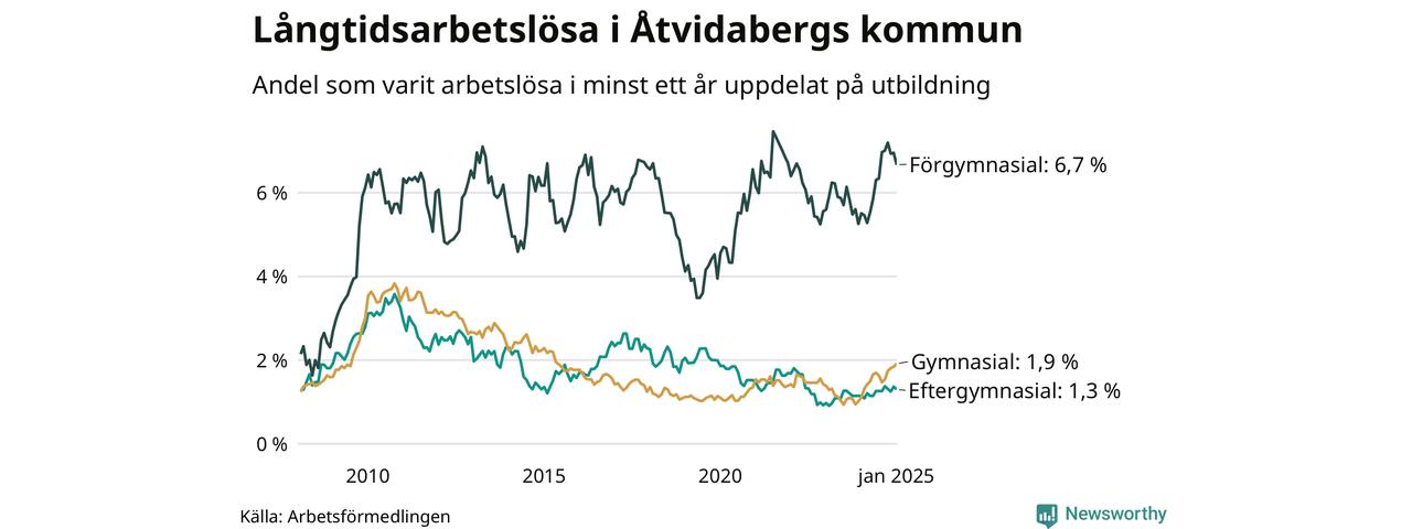 Andelen som varit utan arbete i minst ett år i Åtvidaberg i januari var högre än för ett år sedan. Men jämfört med i december har antalet långtidsarbetslösa minskat.