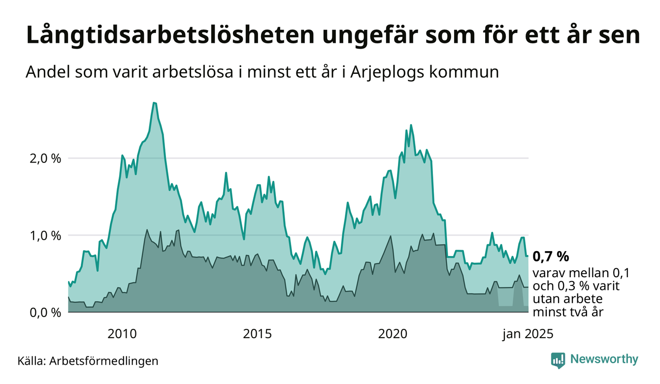 | Andel arbetslösa i minst ett år | 0,7 % | 1,5 % | 2,9 % |