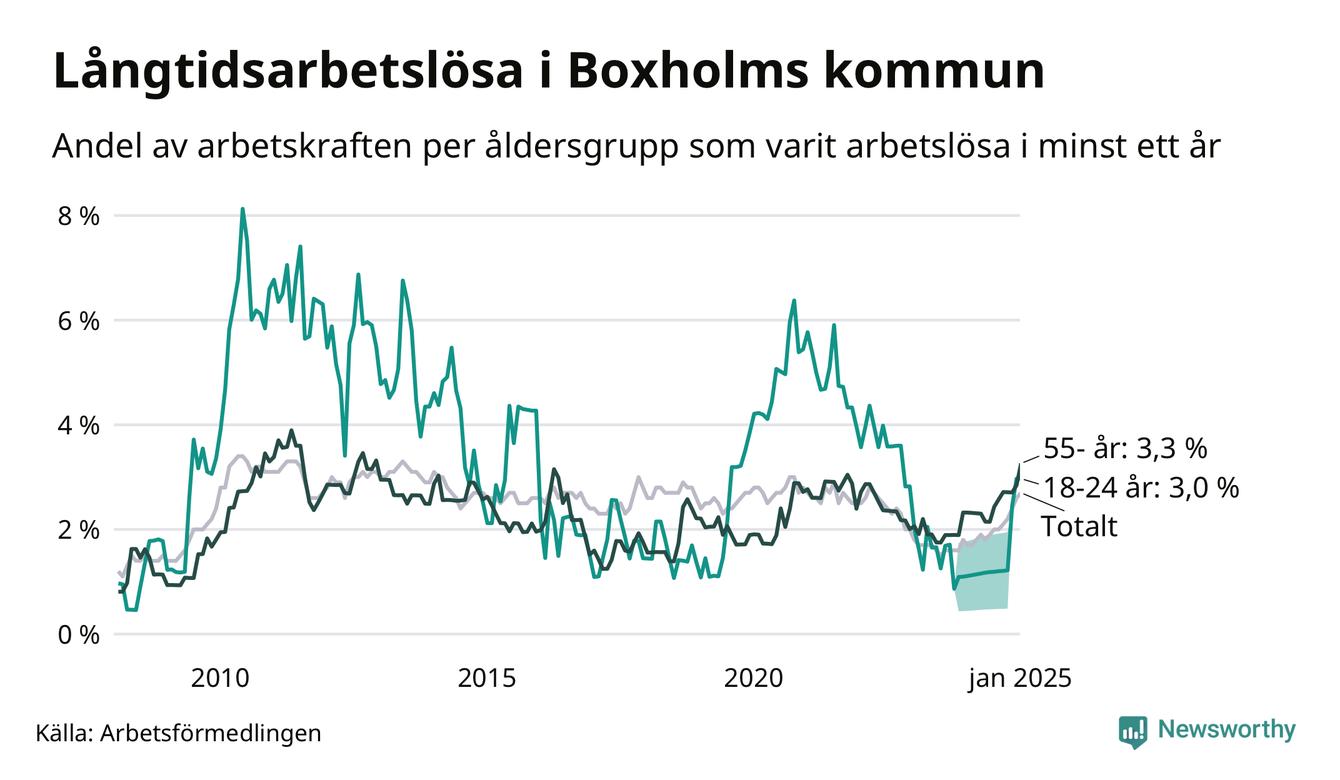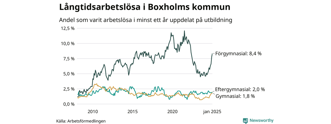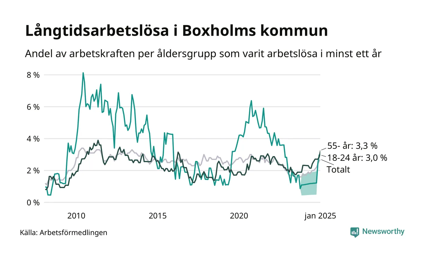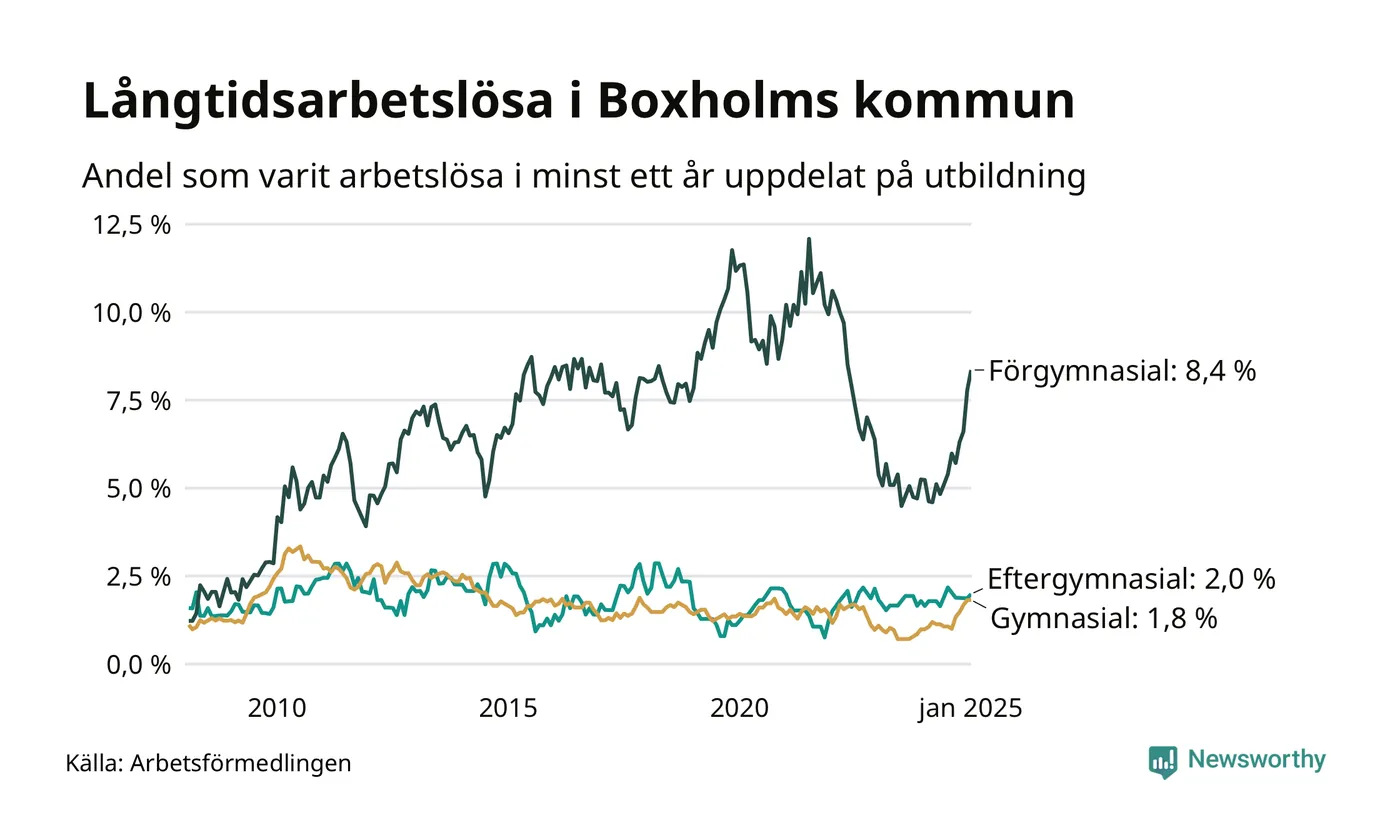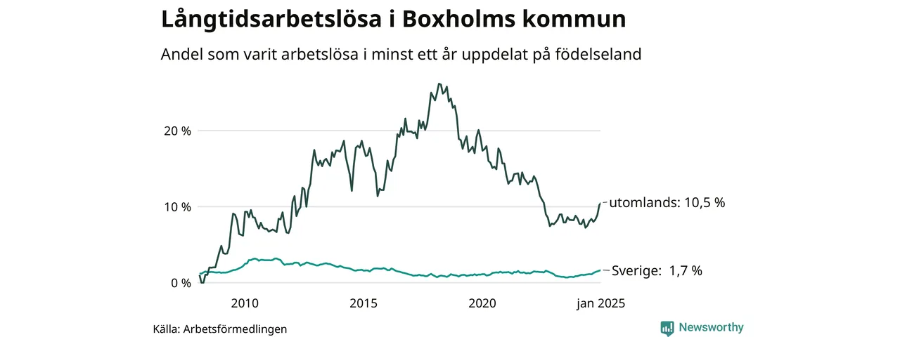 Inte sedan mars 2022 har andelen långtidsarbetslösa varit så hög i Boxholm. Det visar Arbetsförmedlingens senaste månadsstatistik.