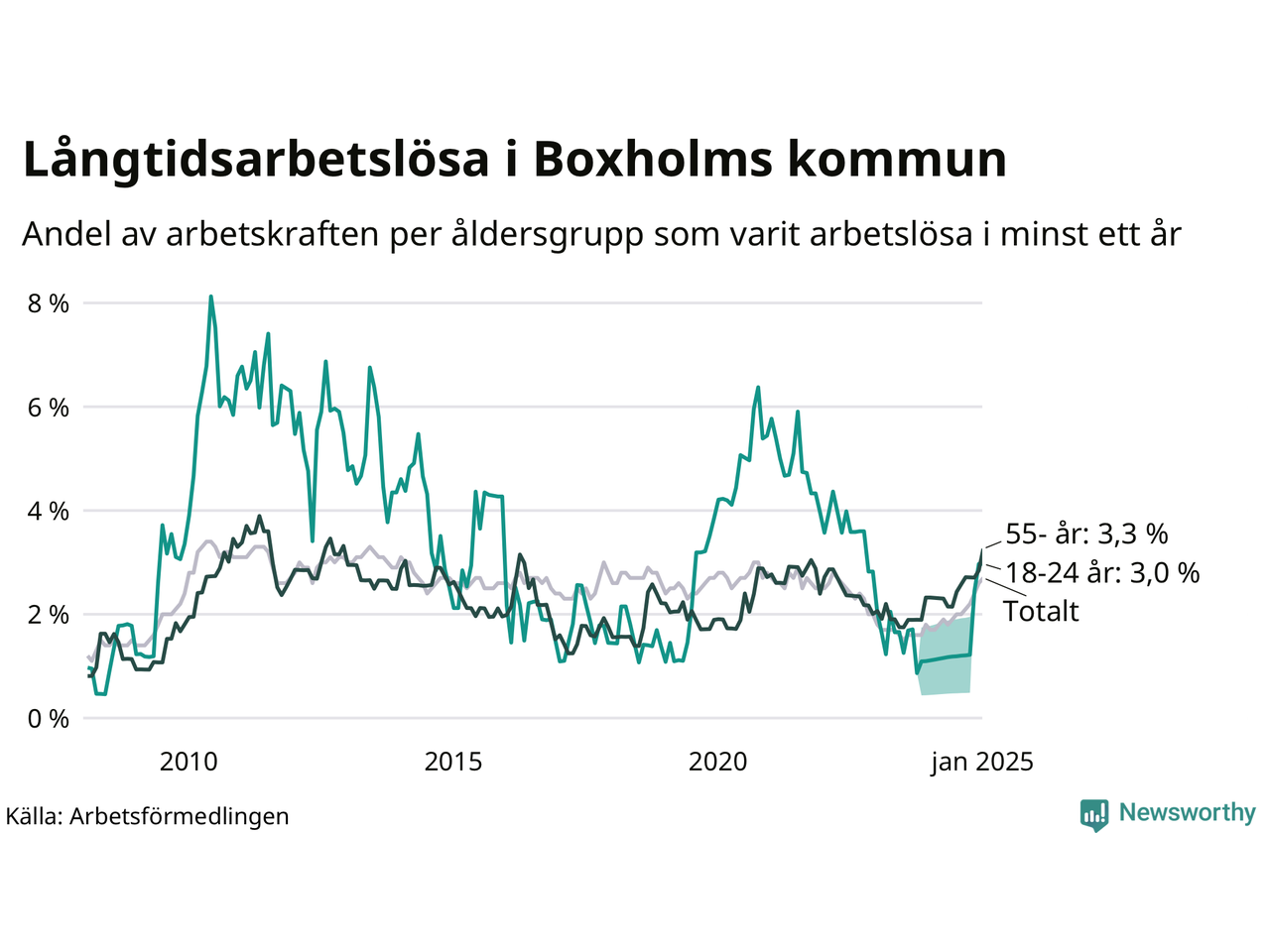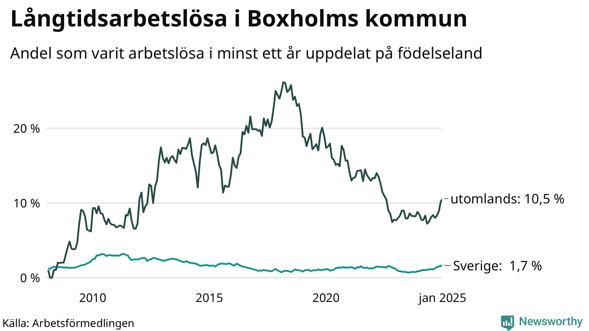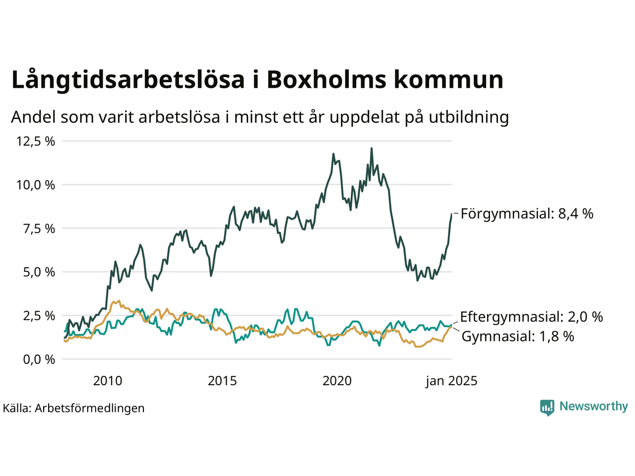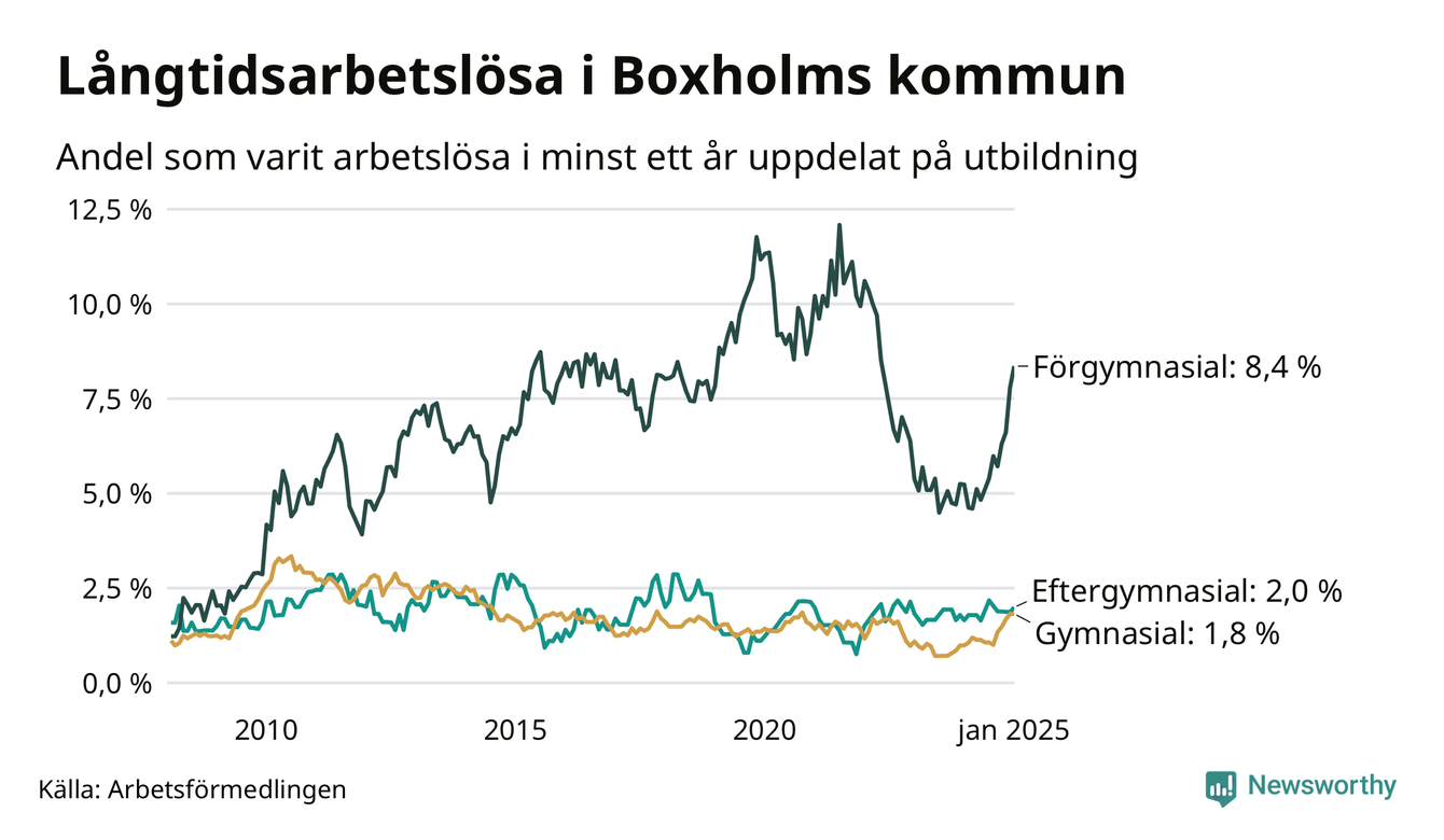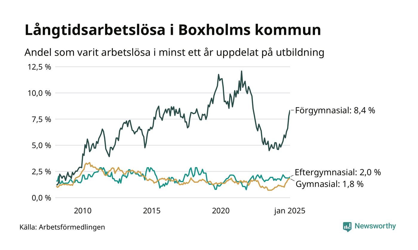 Inte sedan mars 2022 har andelen långtidsarbetslösa varit så hög i Boxholm. Det visar Arbetsförmedlingens senaste månadsstatistik.