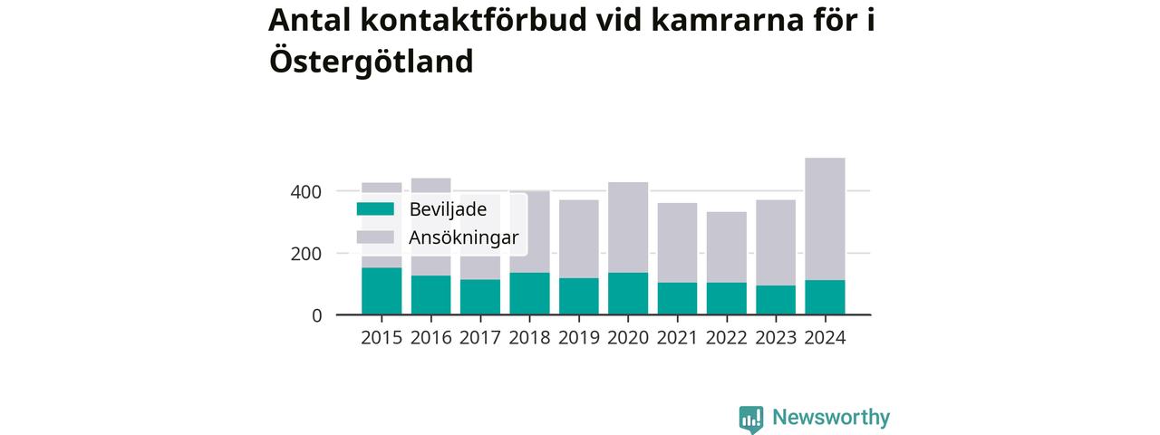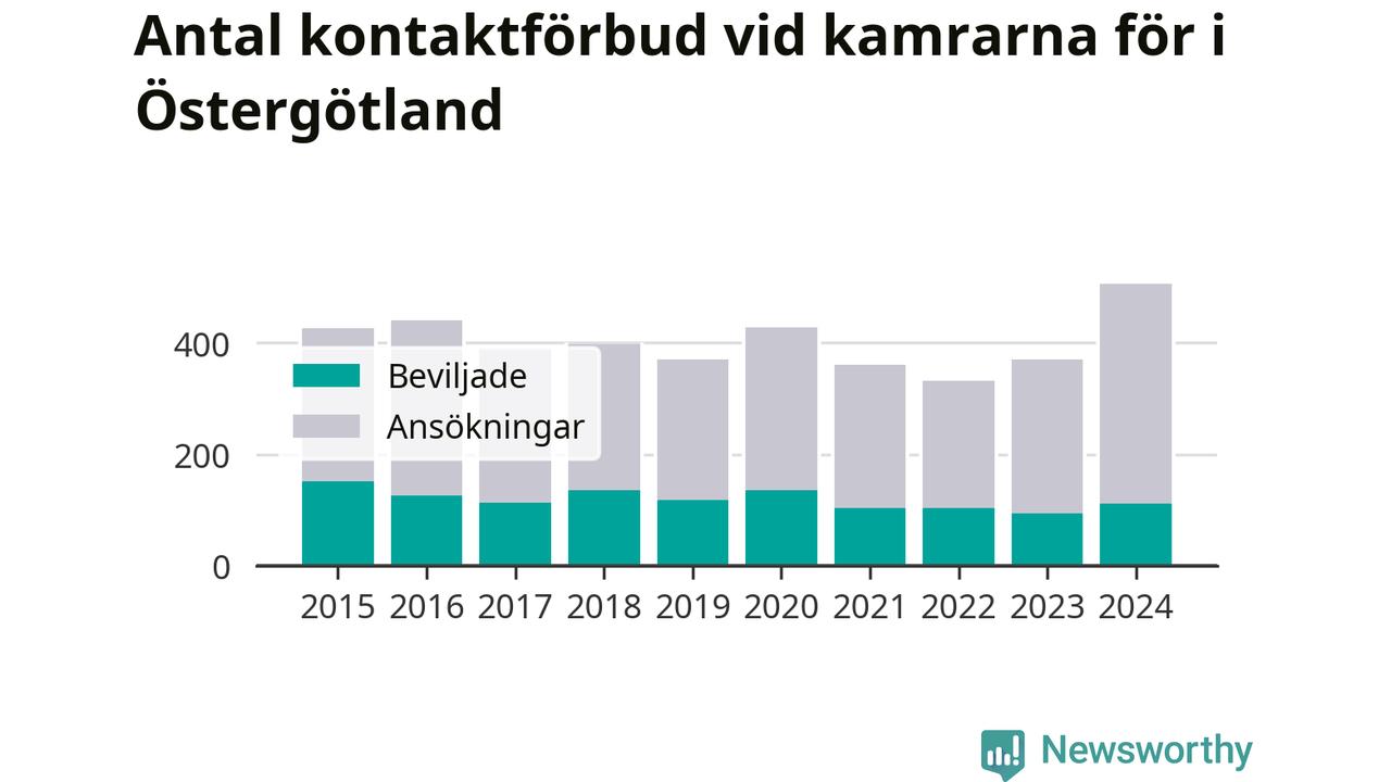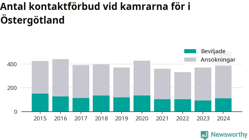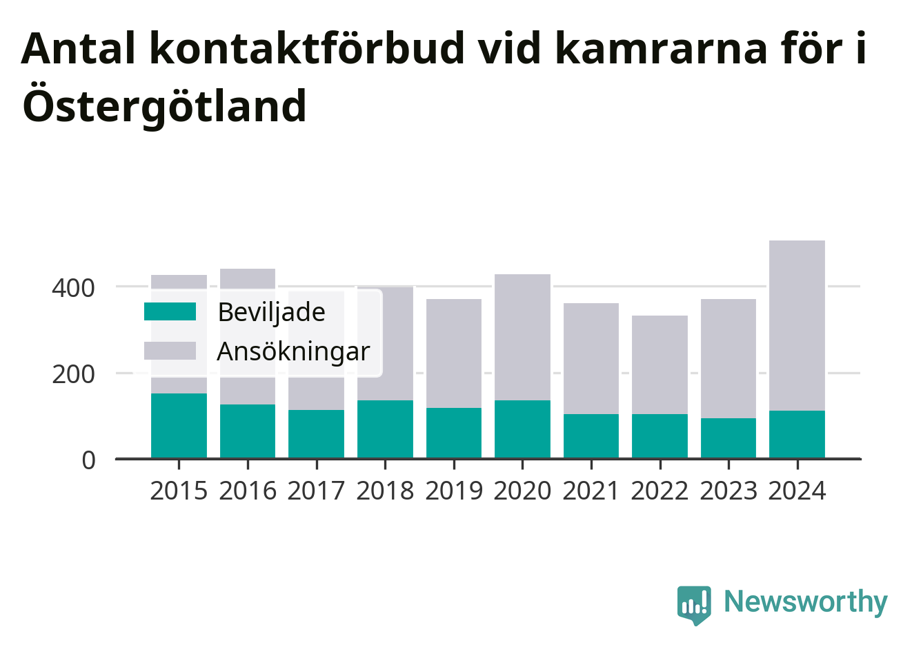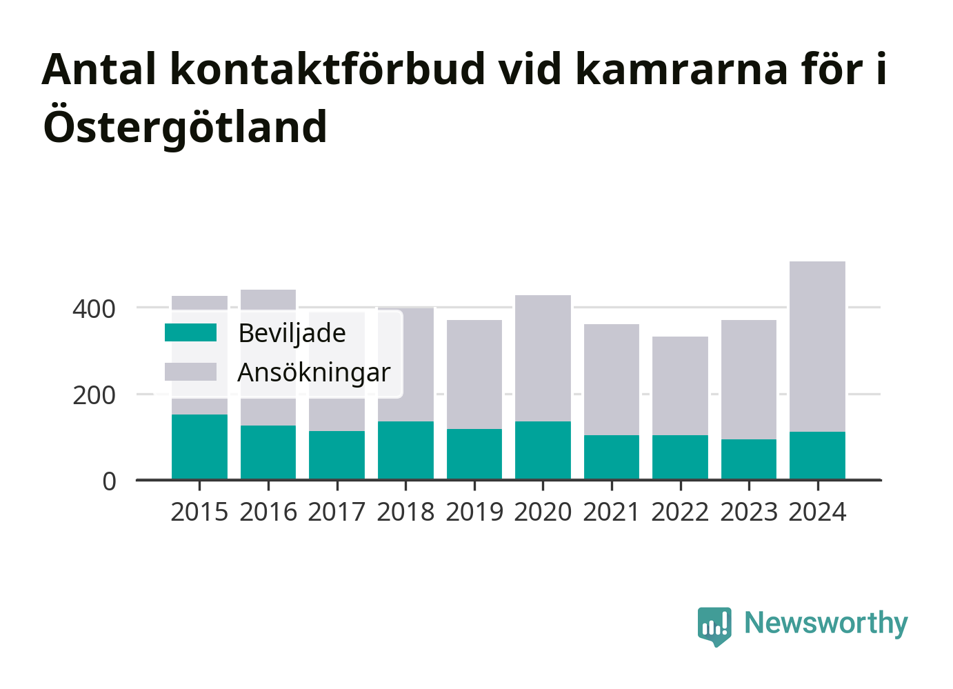 Av alla ansökningar om kontaktförbud har ungefär en fjärdedel godkänts vid åklagarkammaren i Linköping och åklagarkammaren i Norrköping, som Östergötlands län hör till, de senaste tio åren. I fjol fick 20 procent av ansökningarna bifall. Det kan jämföras med 30 procent i hela landet.