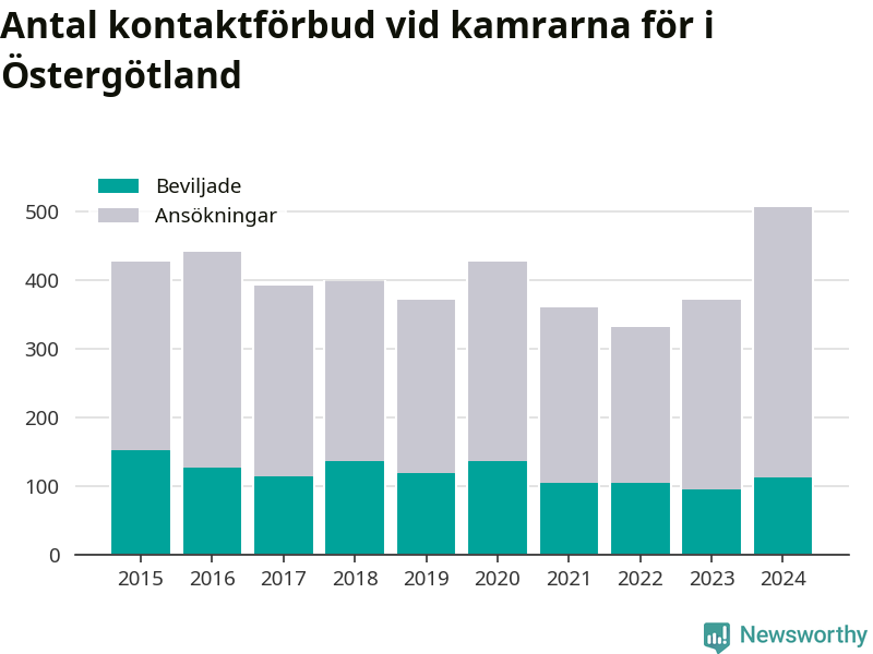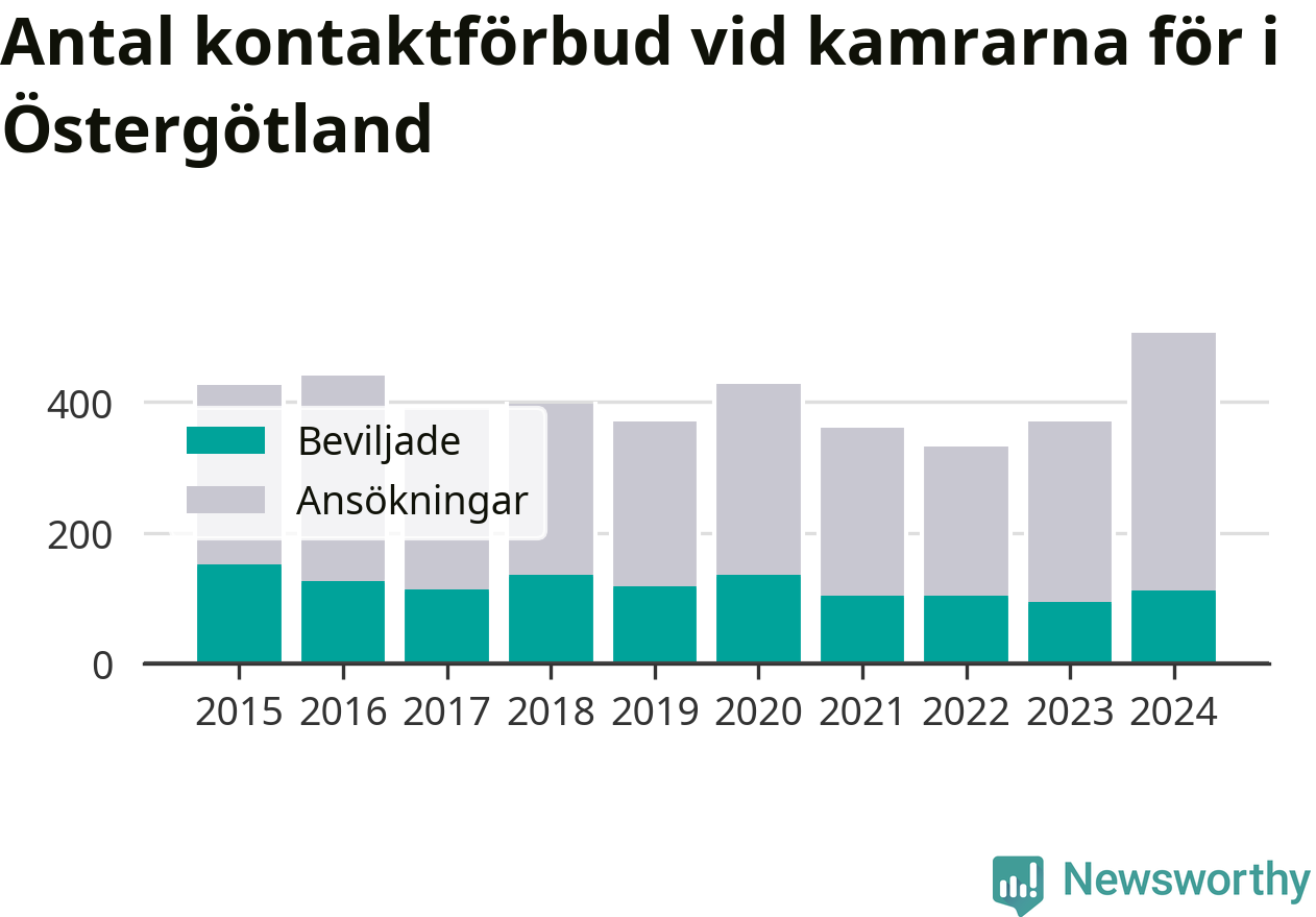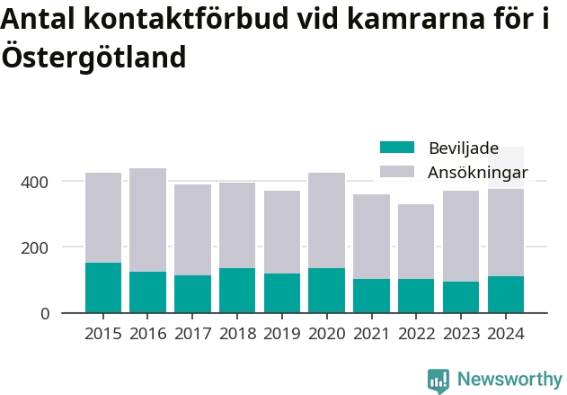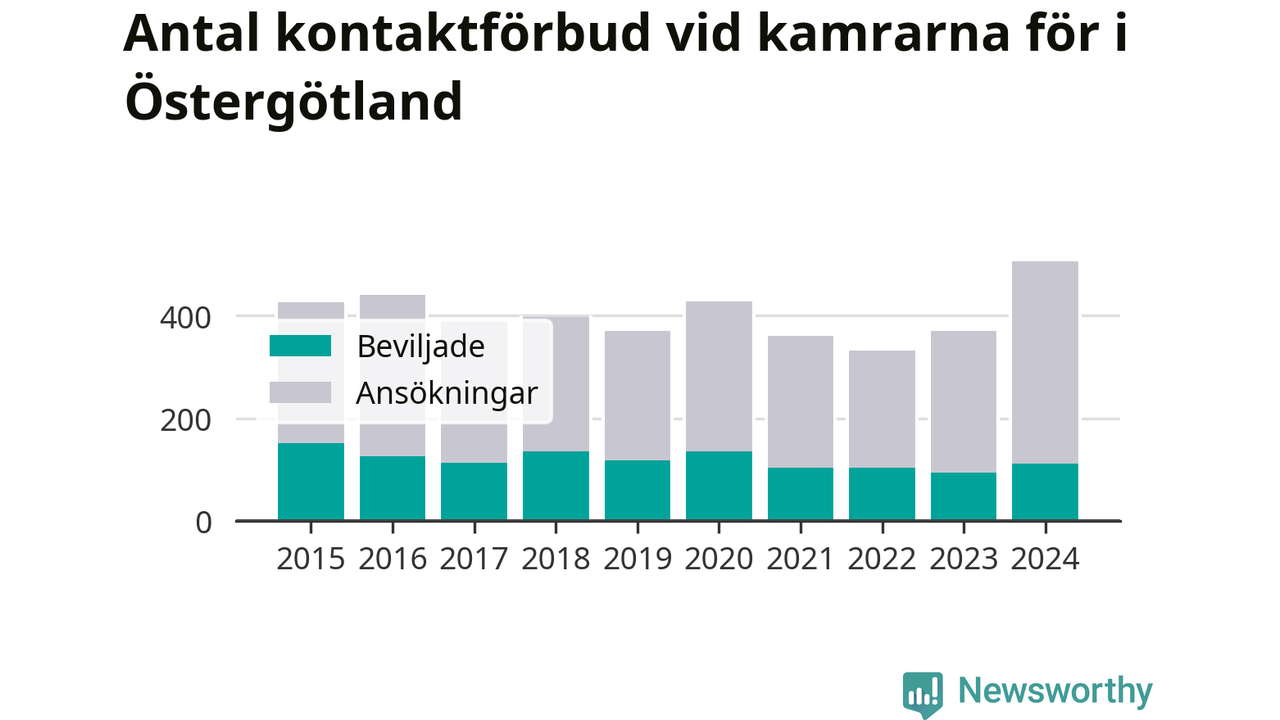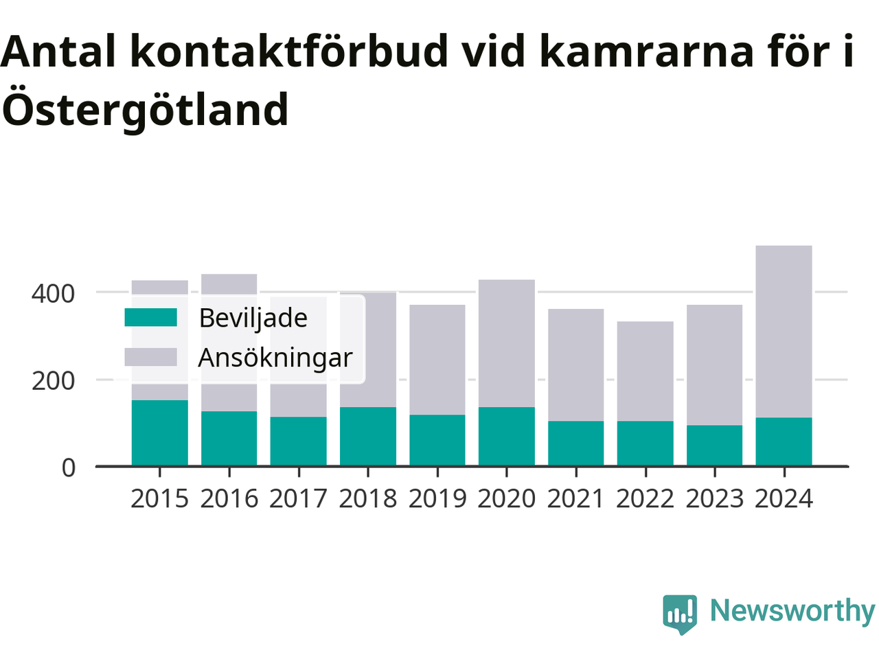 Av alla ansökningar om kontaktförbud har ungefär en fjärdedel godkänts vid åklagarkammaren i Linköping och åklagarkammaren i Norrköping, som Östergötlands län hör till, de senaste tio åren. I fjol fick 20 procent av ansökningarna bifall. Det kan jämföras med 30 procent i hela landet.
