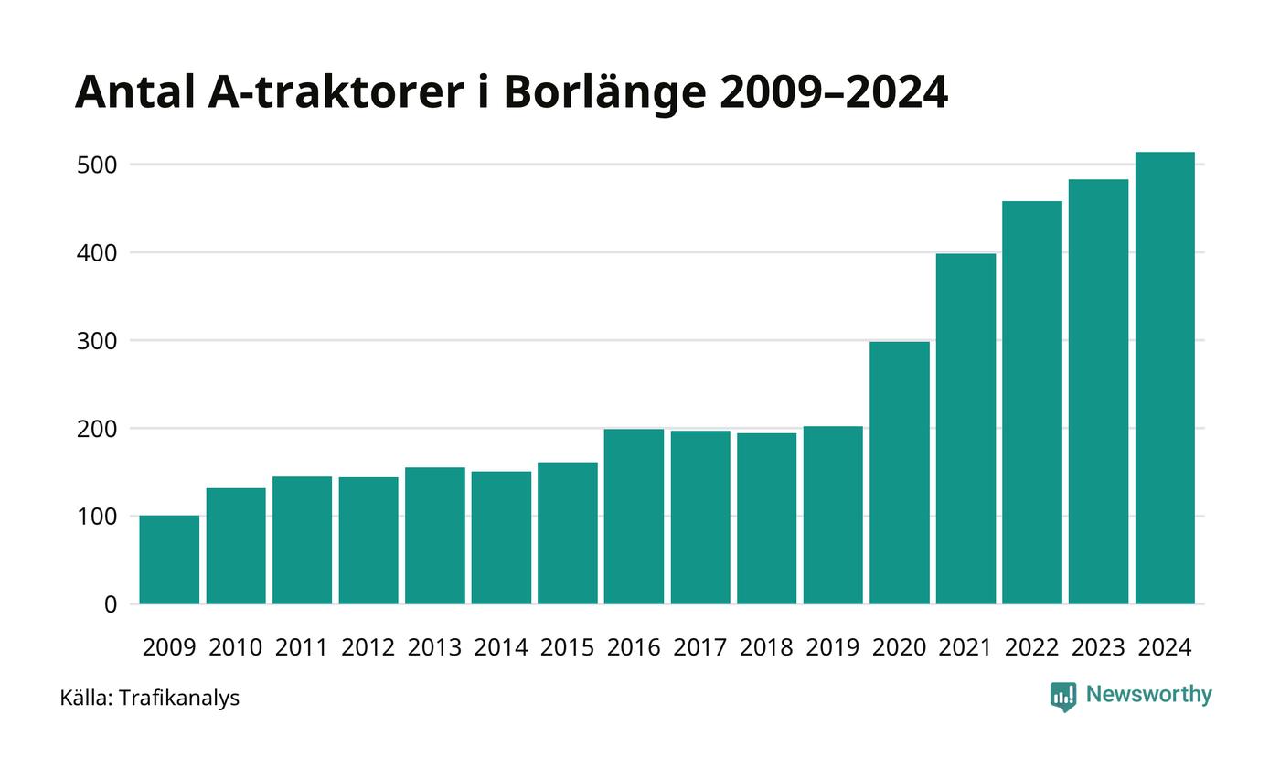 Under det senaste decenniet har antalet A-traktorer nästan femdubblats i Sverige – och under 2024 fortsatte utvecklingen. Precis som i Borlänge kommun.