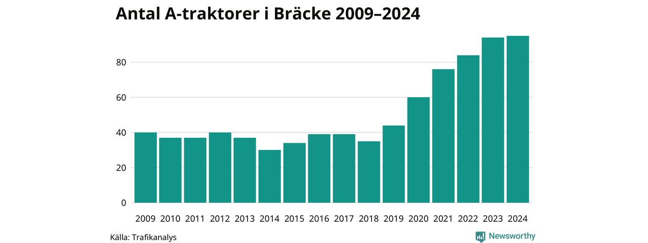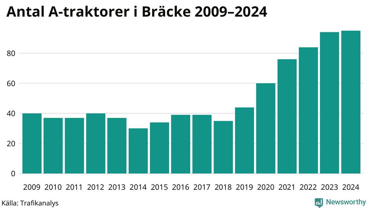 Under det senaste decenniet har antalet A-traktorer nästan femdubblats i Sverige – och under 2024 fortsatte utvecklingen. Precis som i Bräcke kommun.
