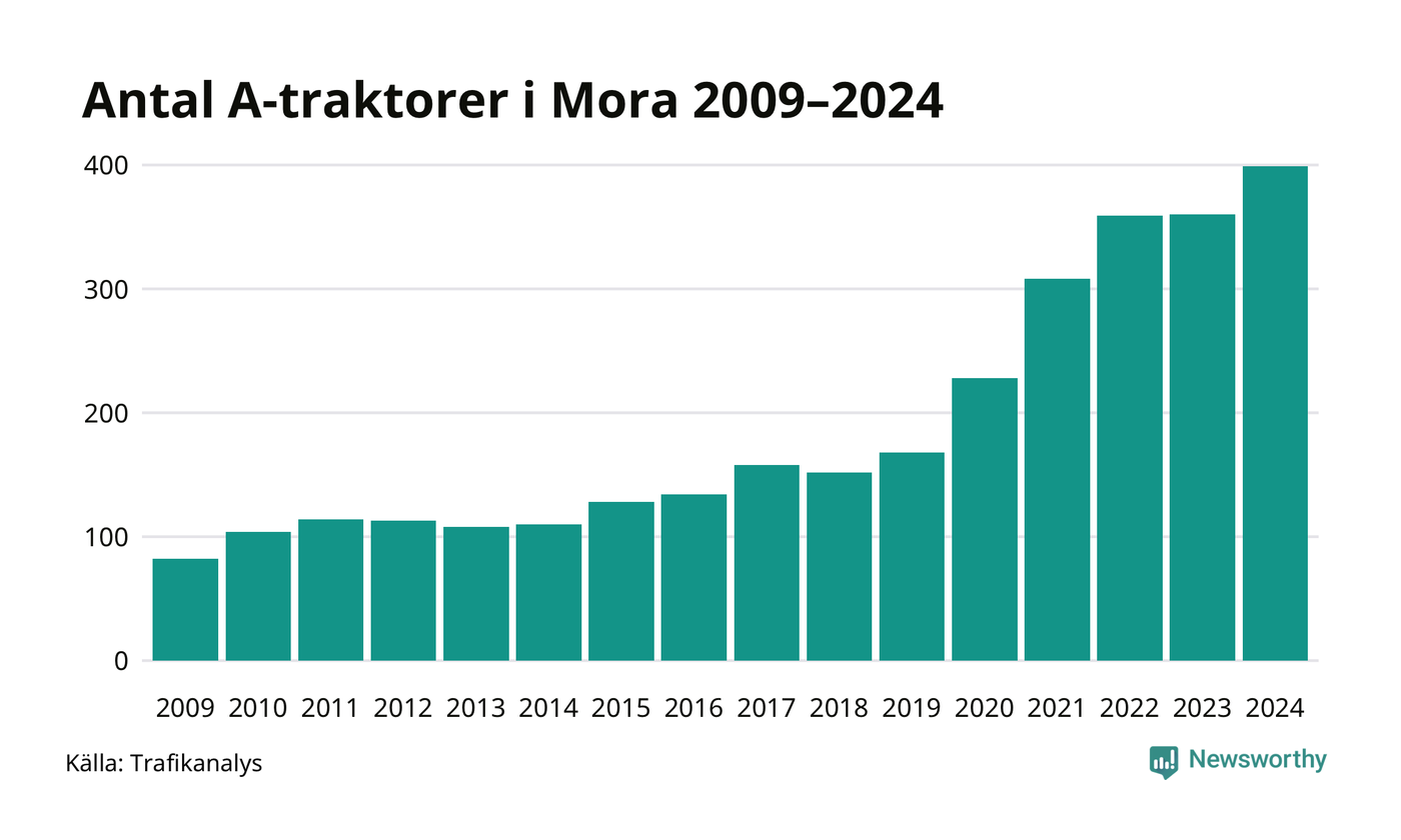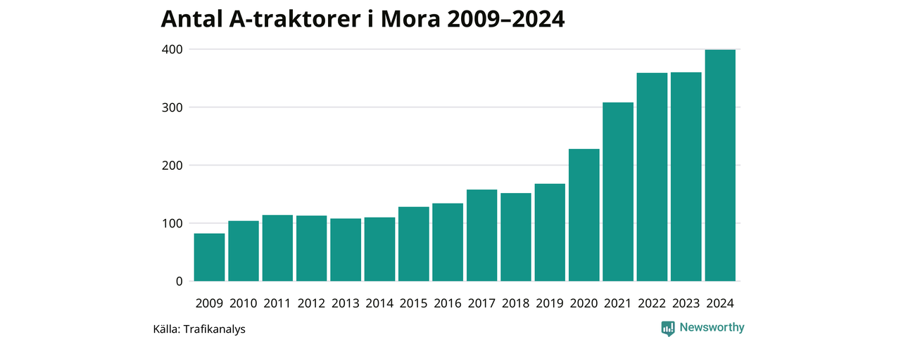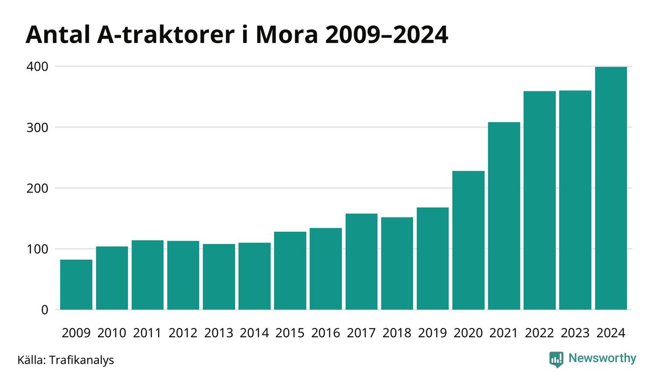 Under det senaste decenniet har antalet A-traktorer nästan femdubblats i Sverige – och under 2024 fortsatte utvecklingen. Precis som i Mora kommun.