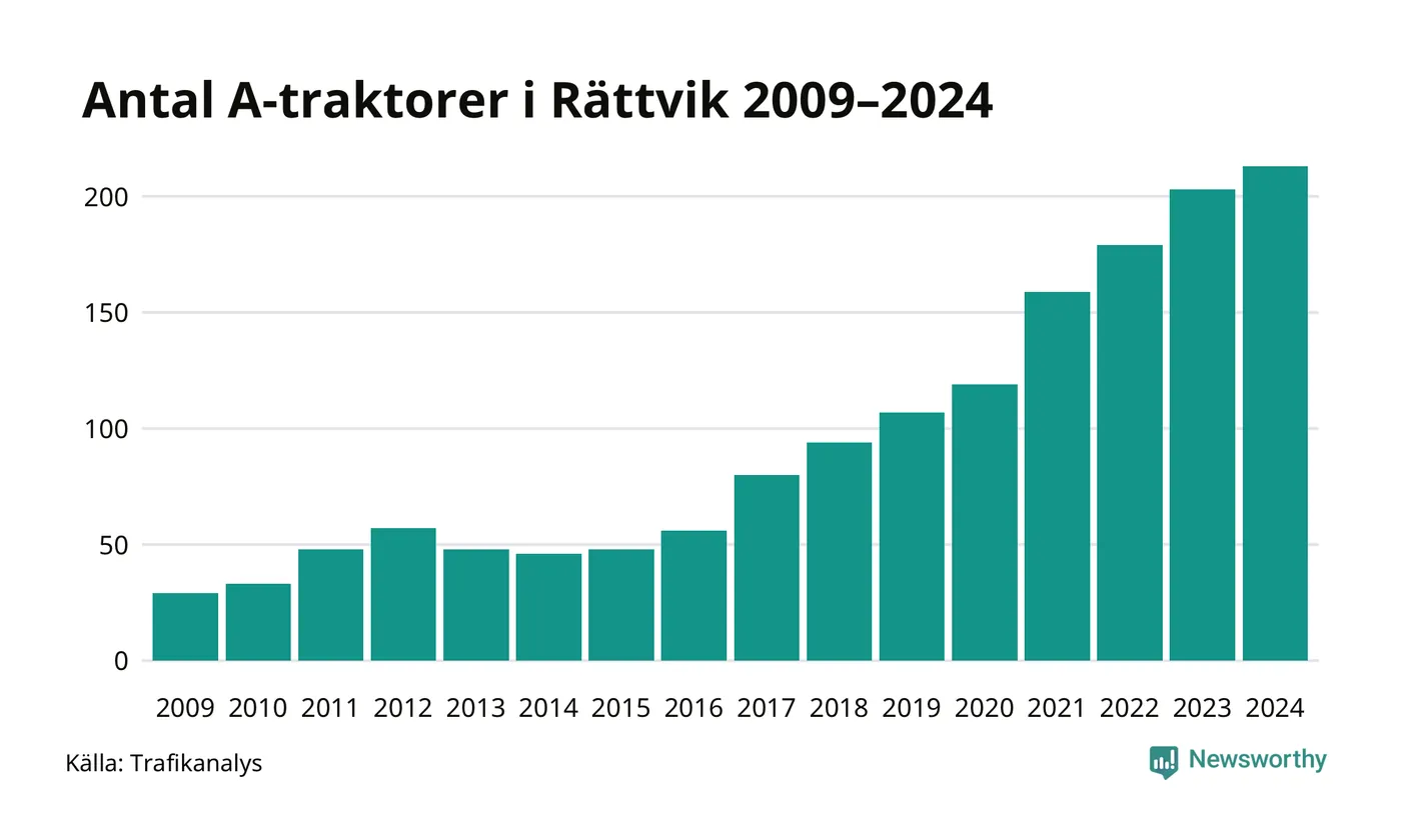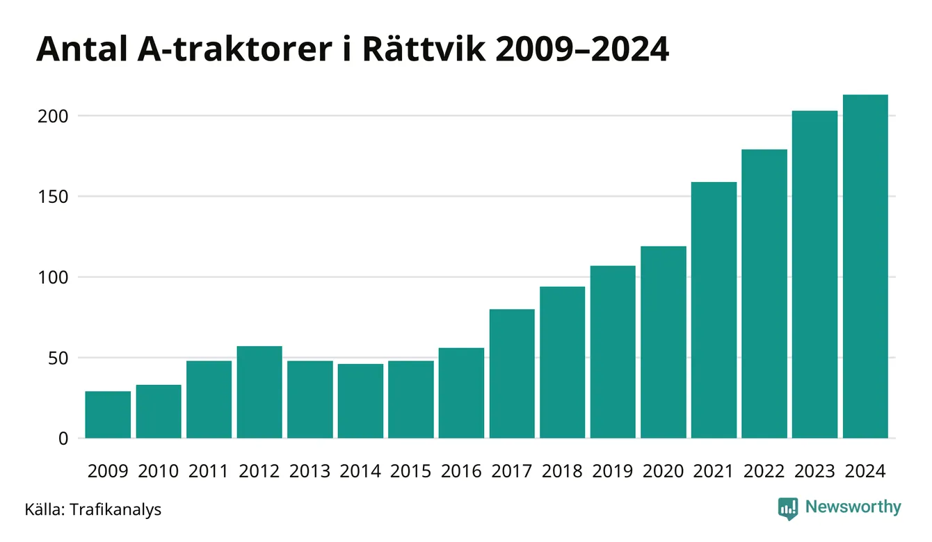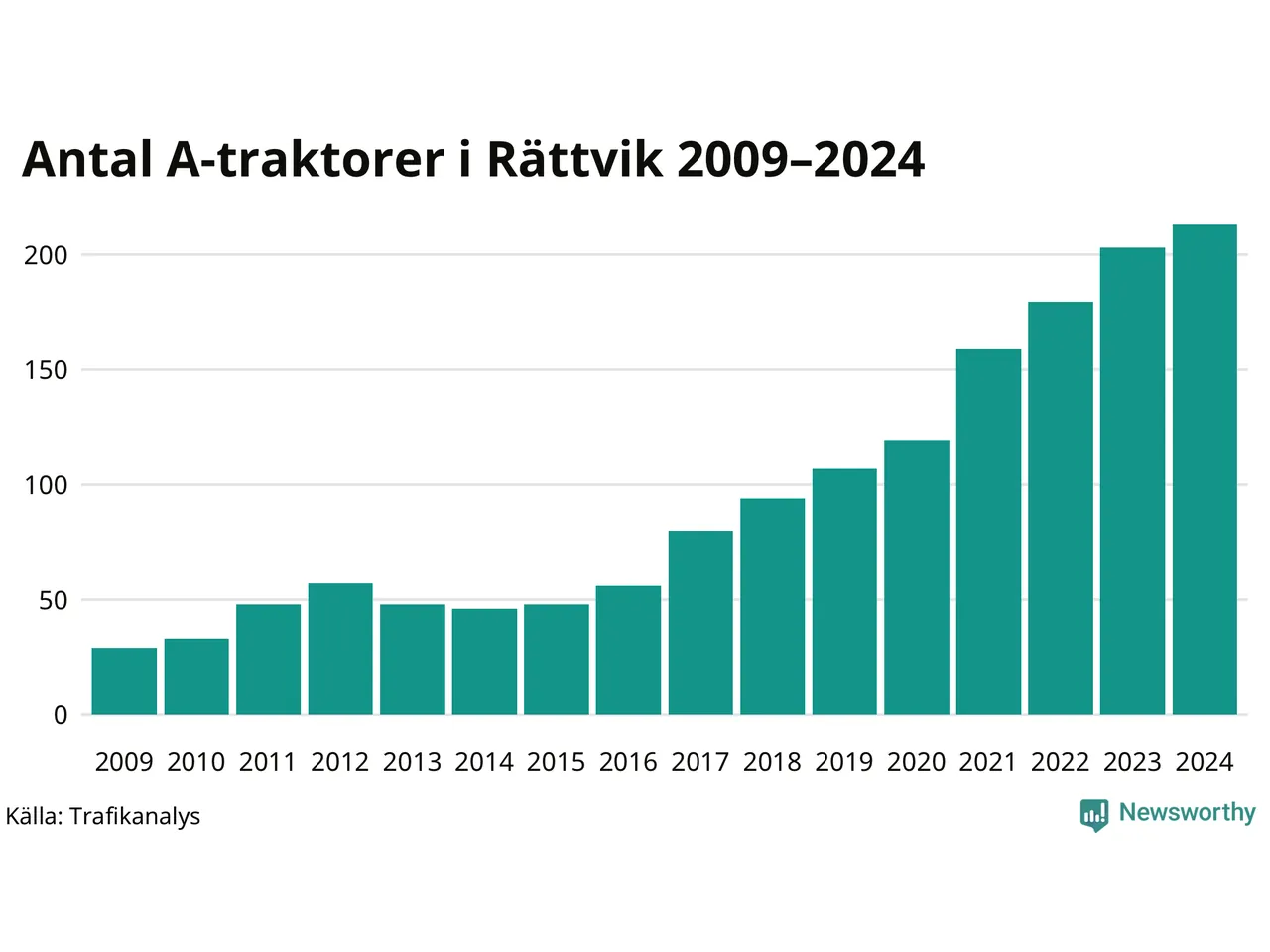 Under det senaste decenniet har antalet A-traktorer nästan femdubblats i Sverige – och under 2024 fortsatte utvecklingen. Precis som i Rättviks kommun.