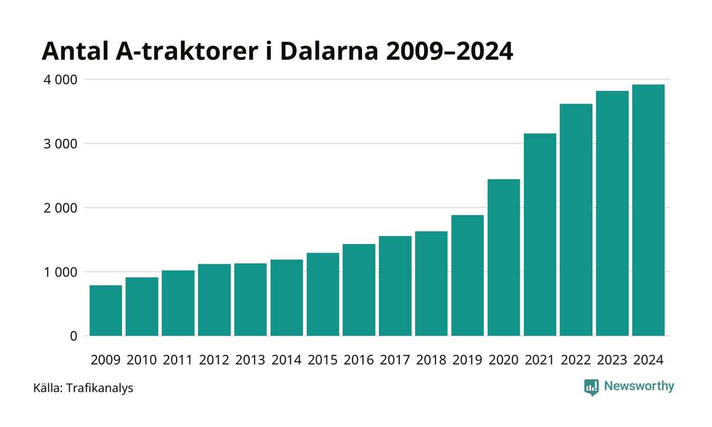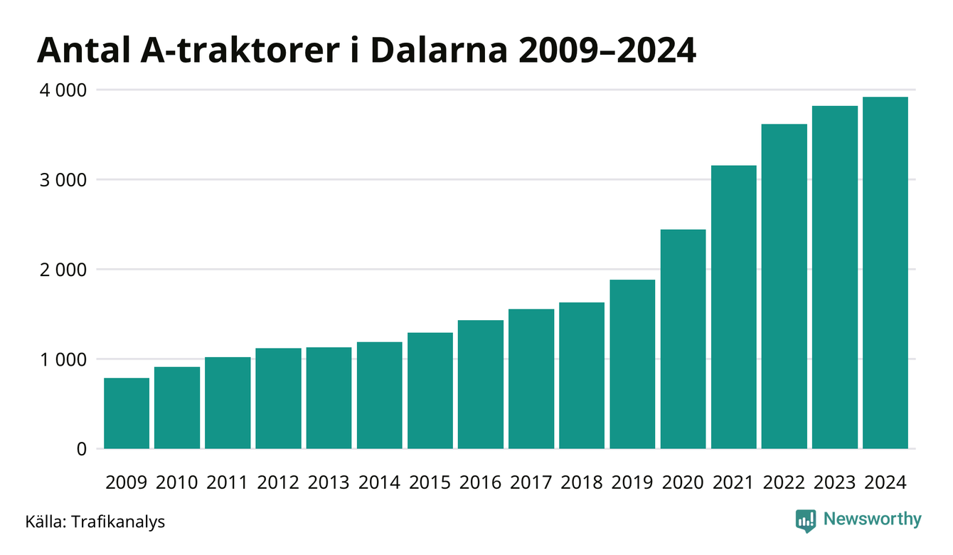 Under det senaste decenniet har antalet A-traktorer nästan femdubblats i Sverige – och under 2024 fortsatte utvecklingen. Precis som i Dalarnas län.