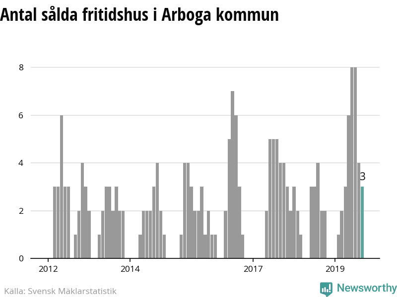 Mellan juli och september gjordes sammanlagt tre affärer med fritidshus i Arboga kommun. Det kan jämföras med två vid motsvarande tid i fjol.
