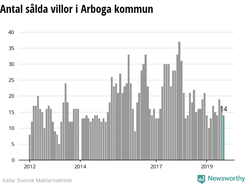 Mellan juli och september gjordes sammanlagt 14 affärer med villor i Arboga kommun. Det kan jämföras med 16 vid motsvarande tid i fjol.