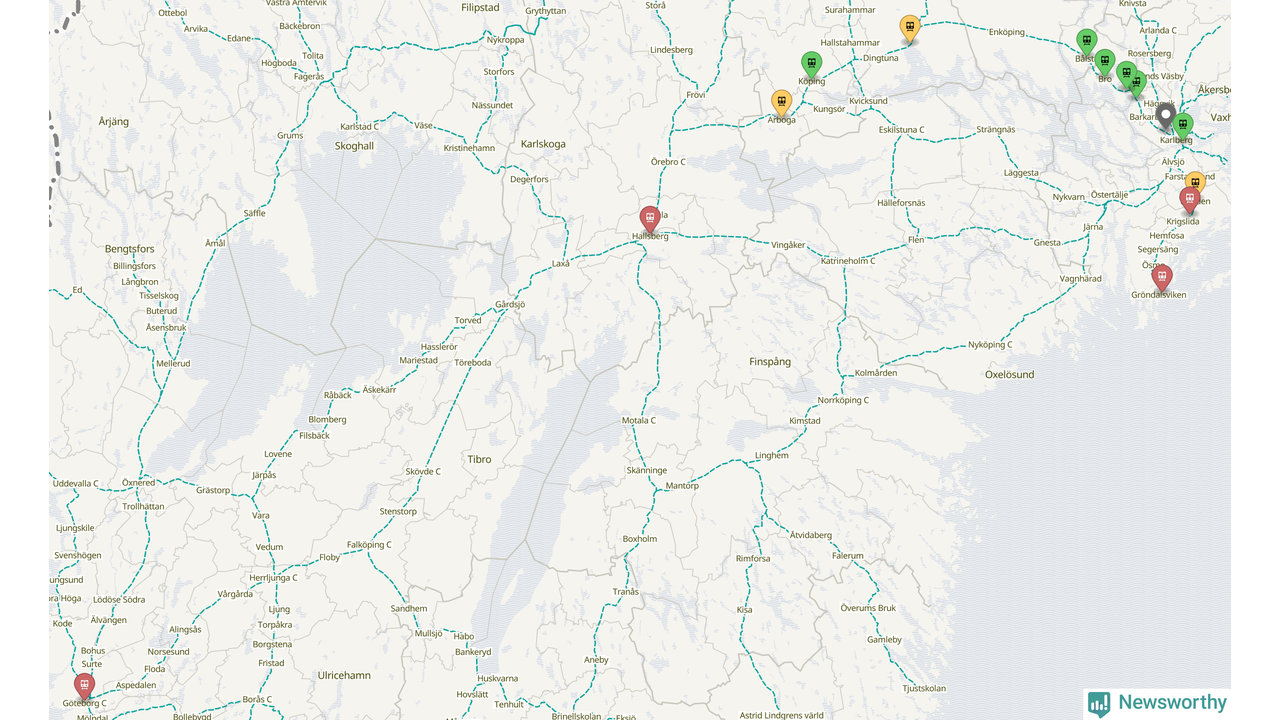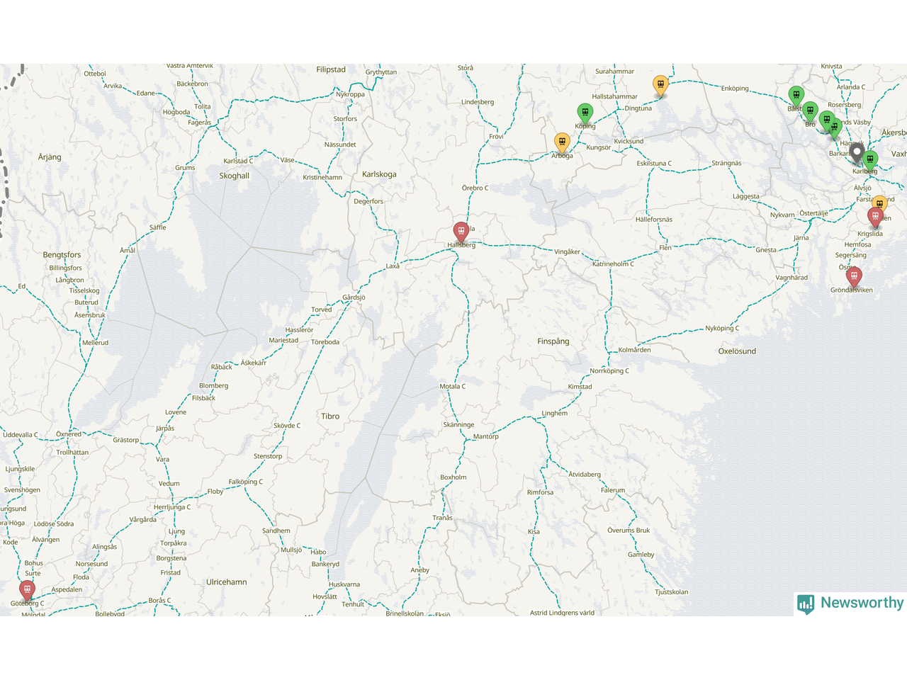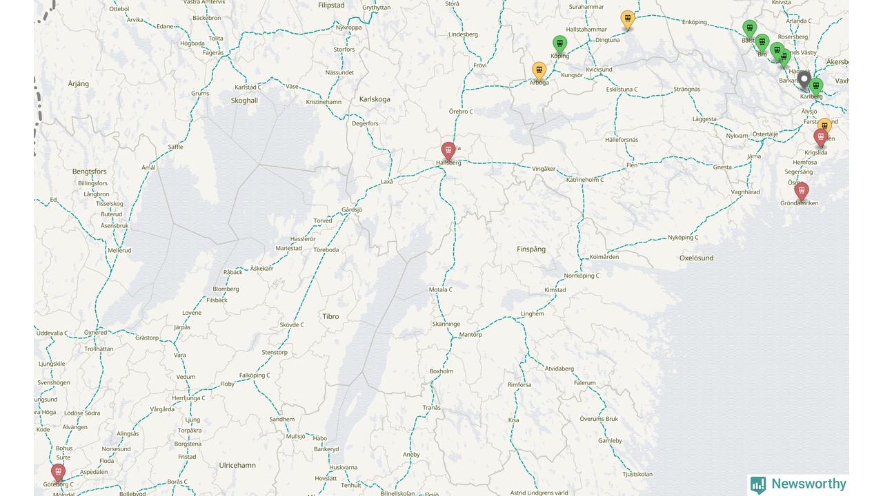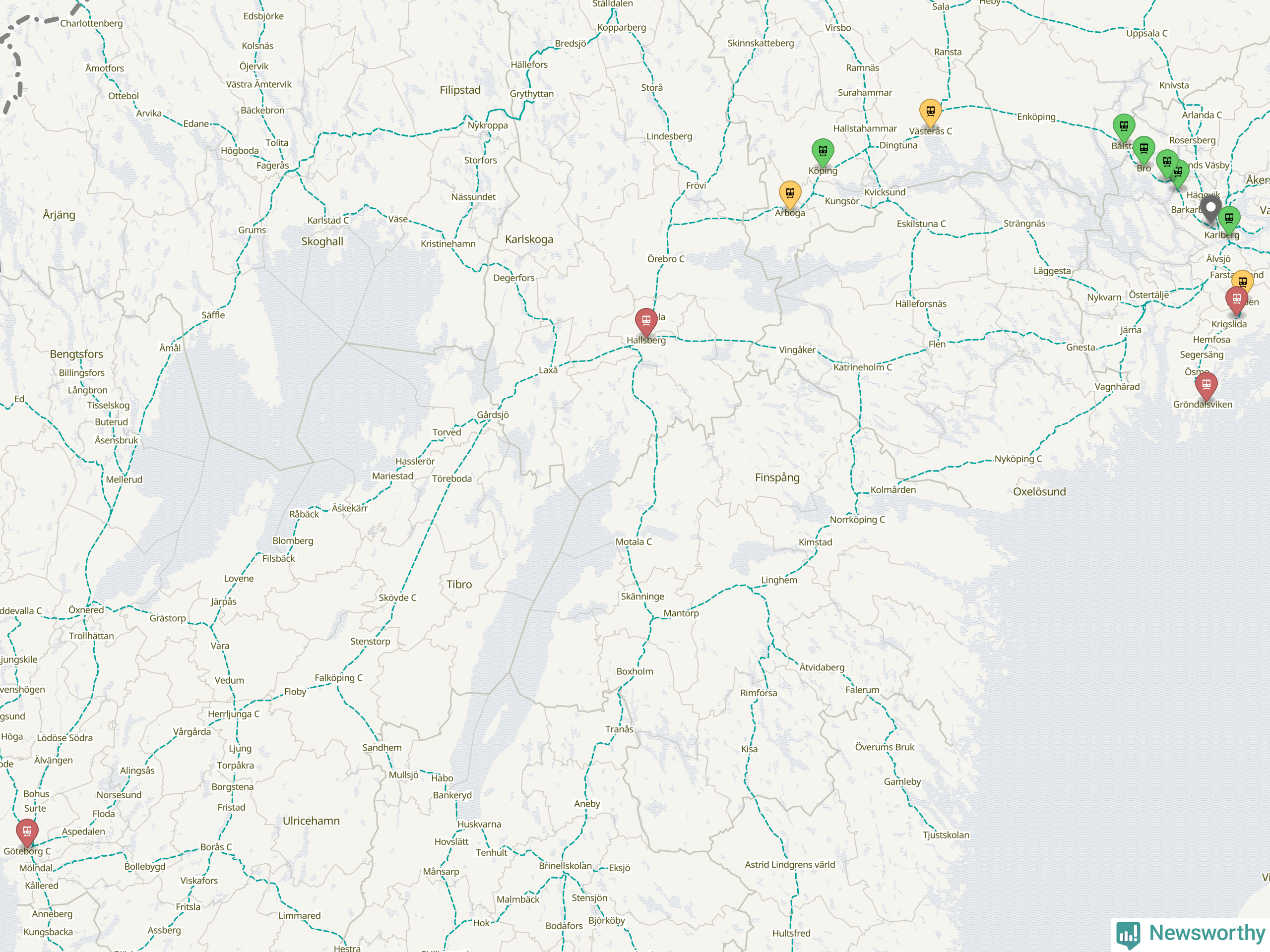 Kartdata från Mapbox, Newsworthy, OpenStreetMap och Trafikverket. Uppgifter om sträckor med passagerartrafik från jarnvag.net.