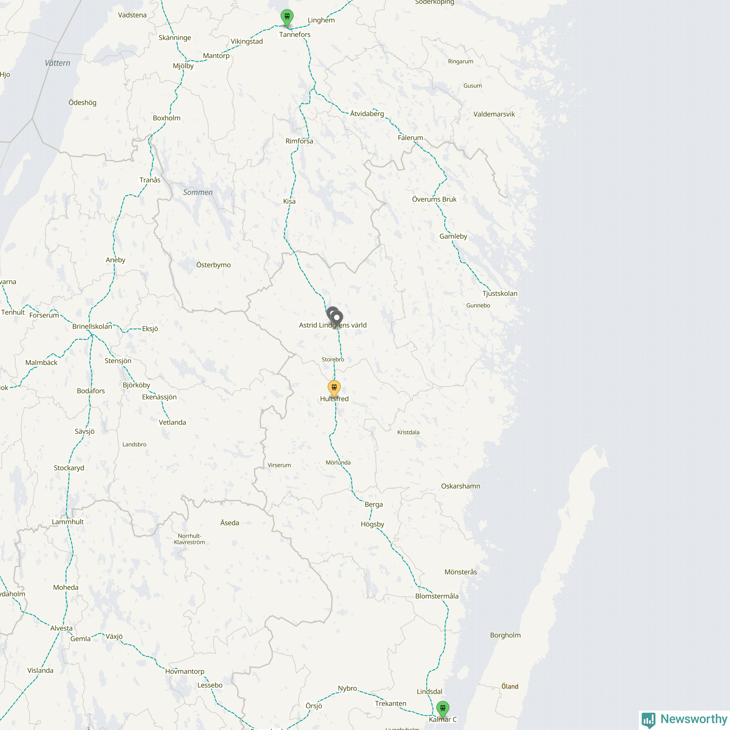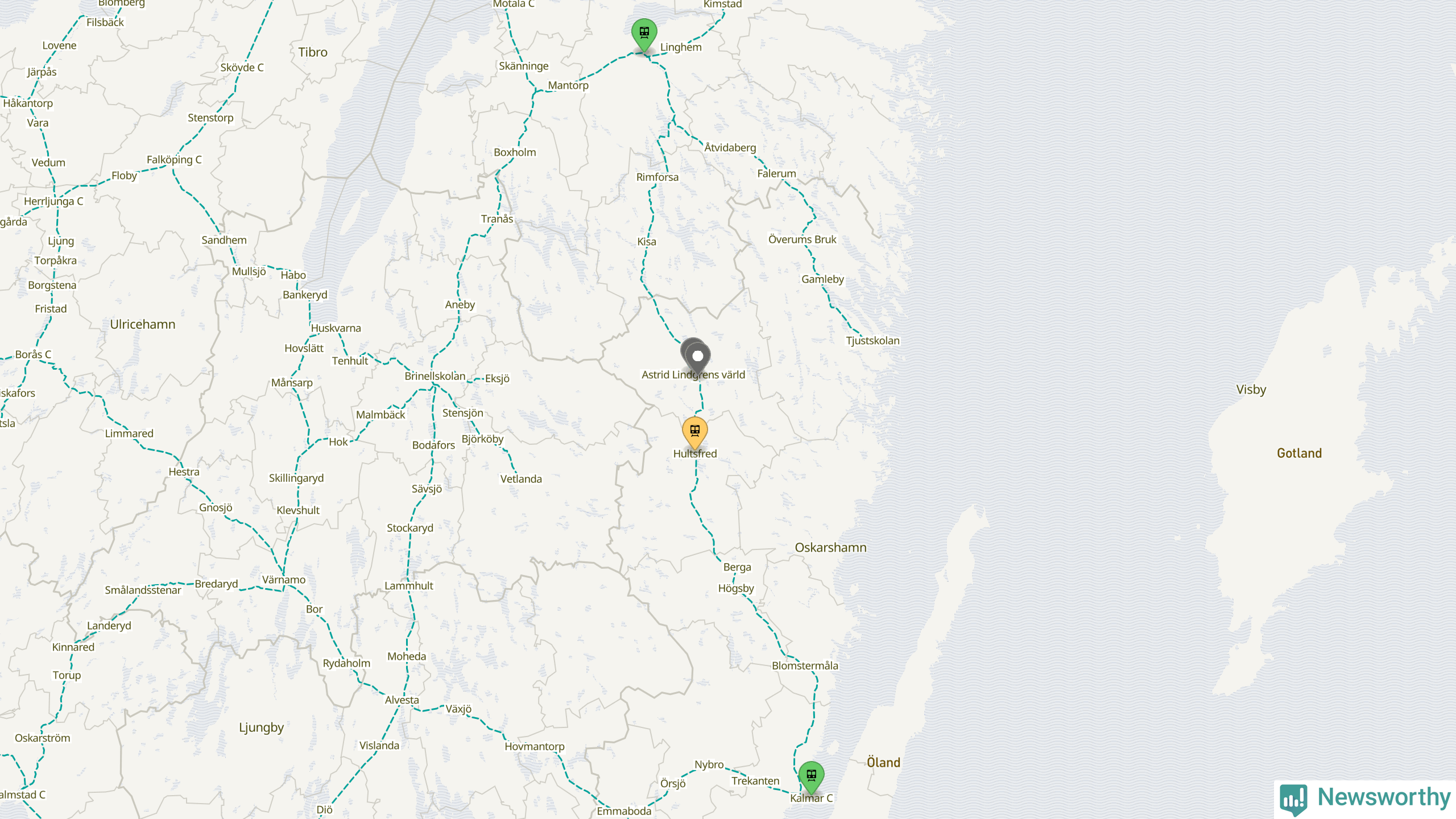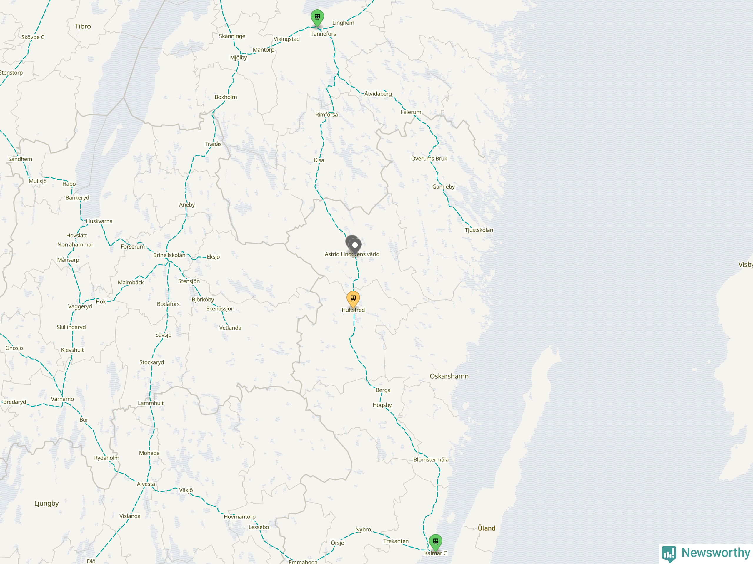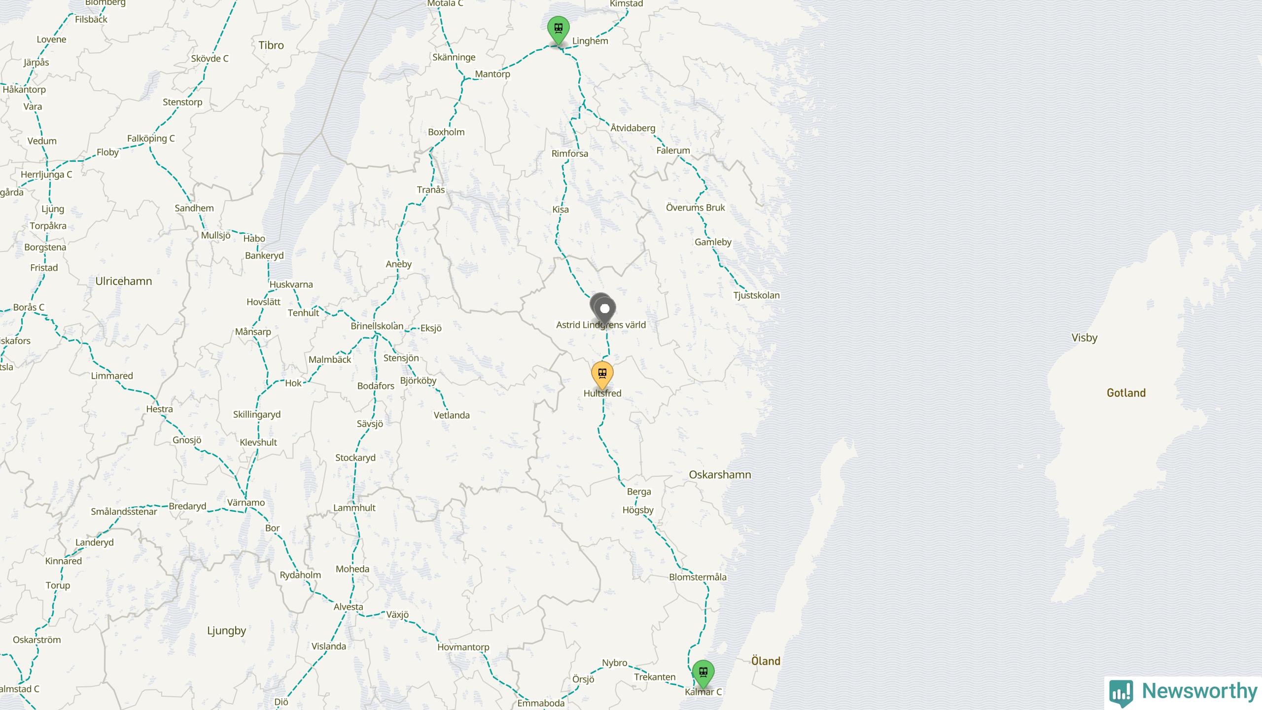 Kartdata från Mapbox, Newsworthy, OpenStreetMap och Trafikverket. Uppgifter om sträckor med passagerartrafik från jarnvag.net.