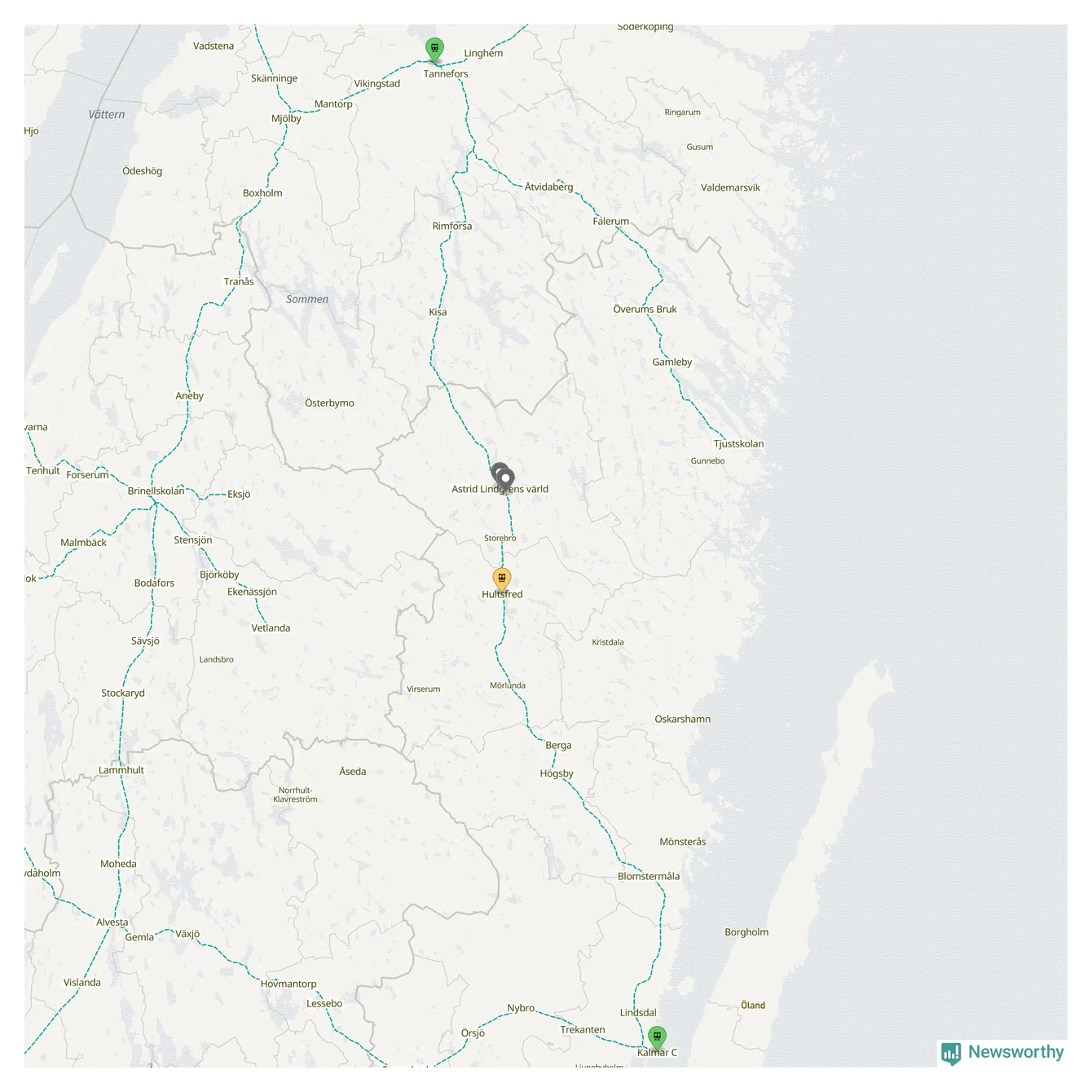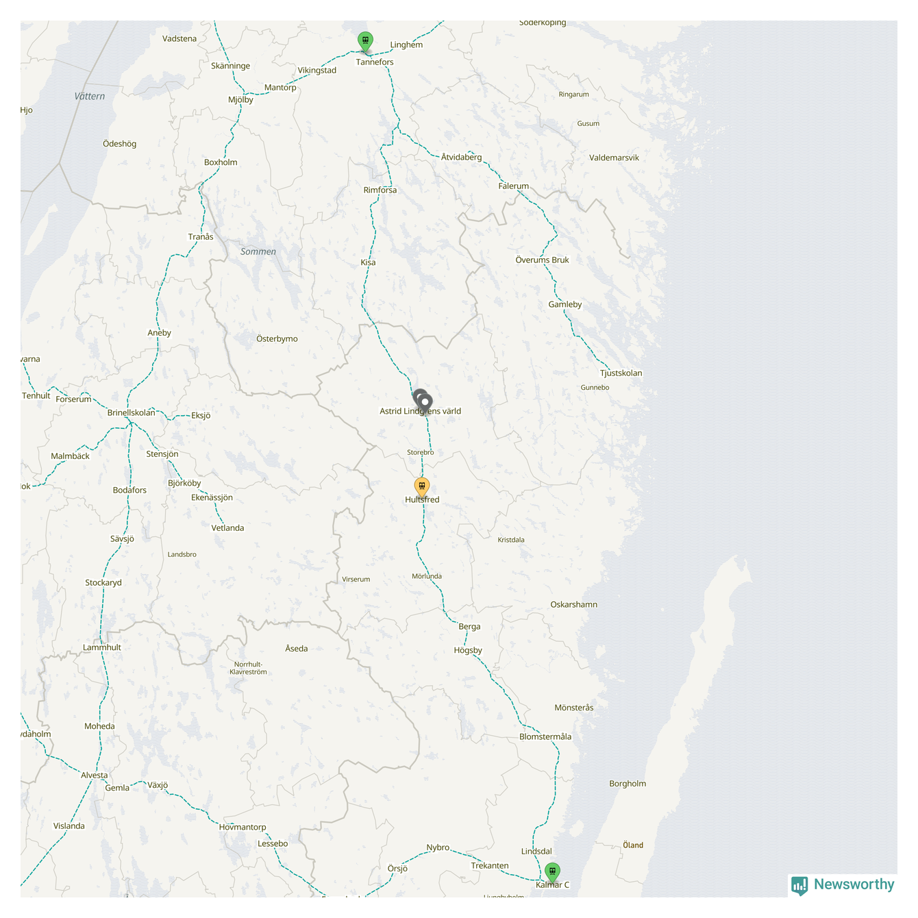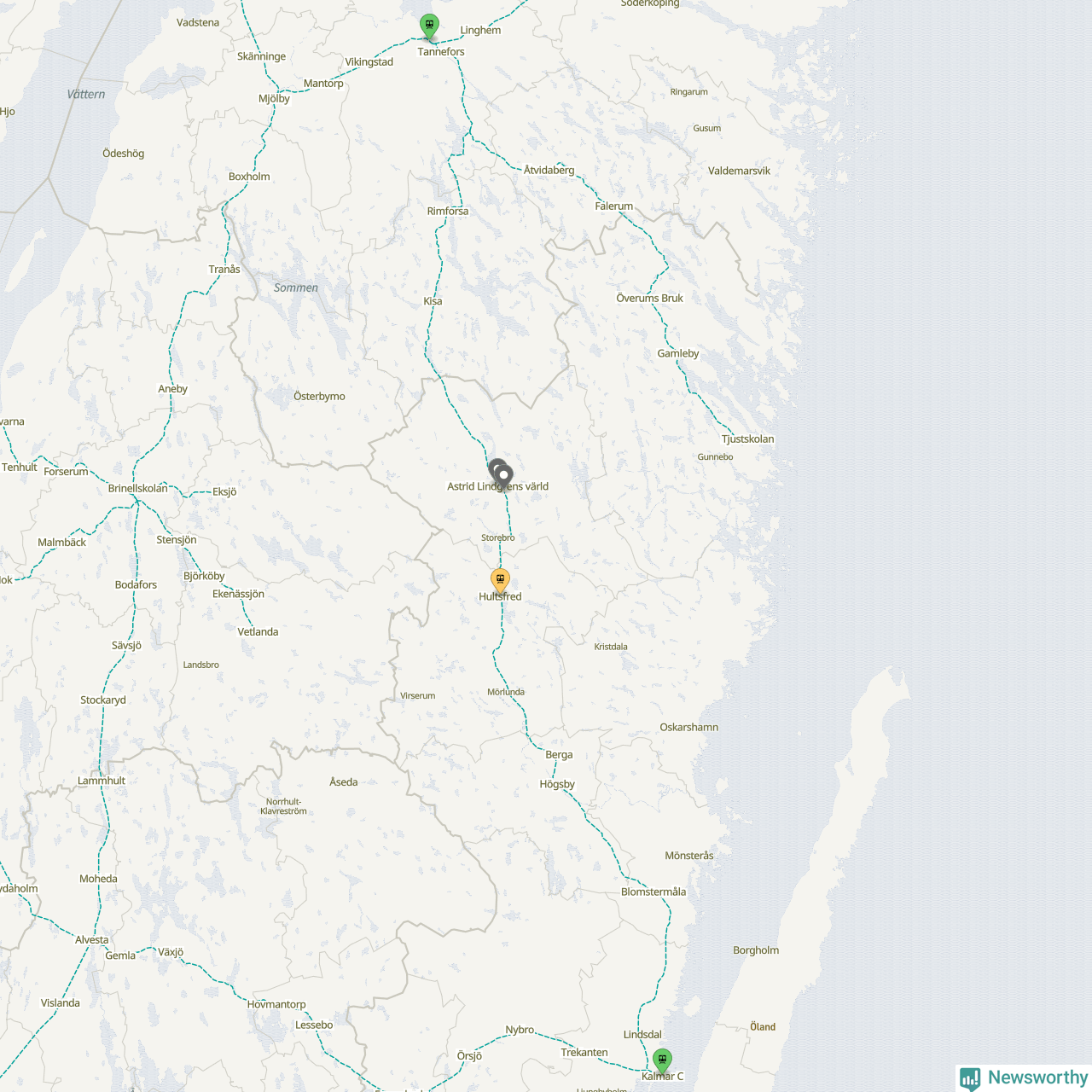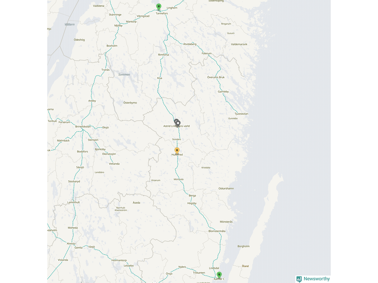 Kartdata från Mapbox, Newsworthy, OpenStreetMap och Trafikverket. Uppgifter om sträckor med passagerartrafik från jarnvag.net.