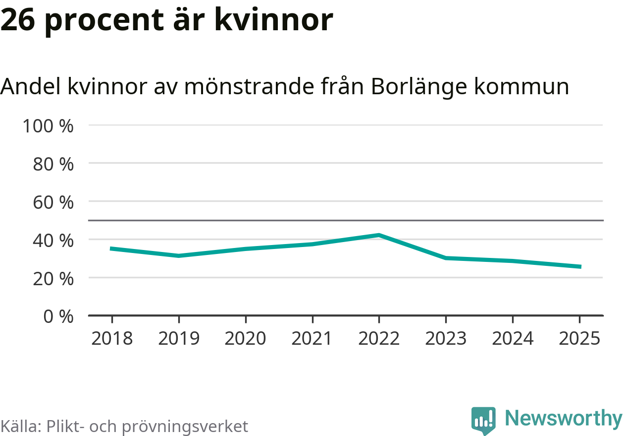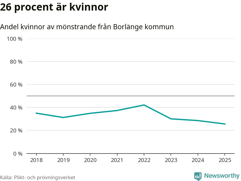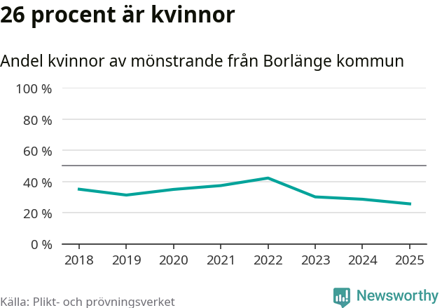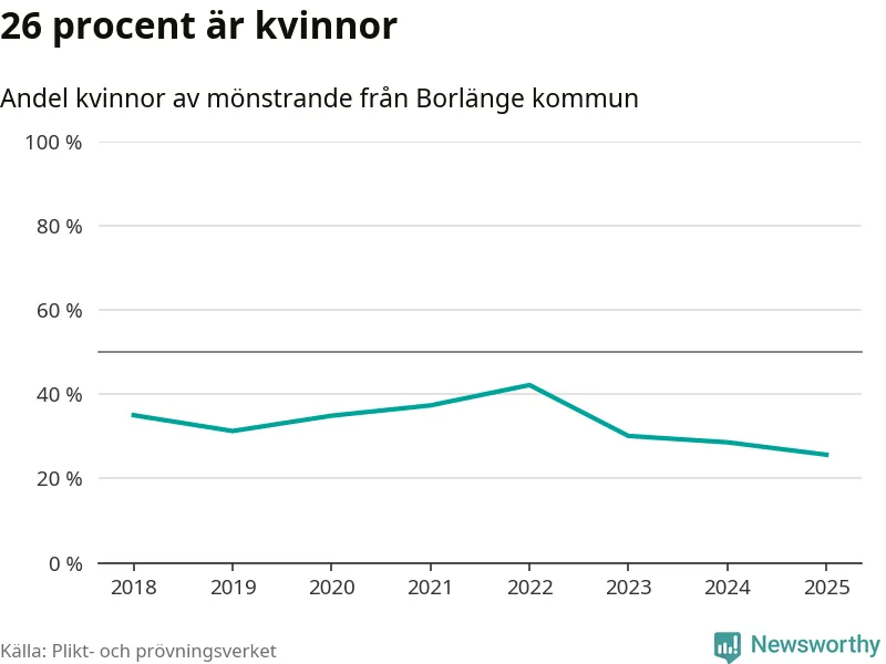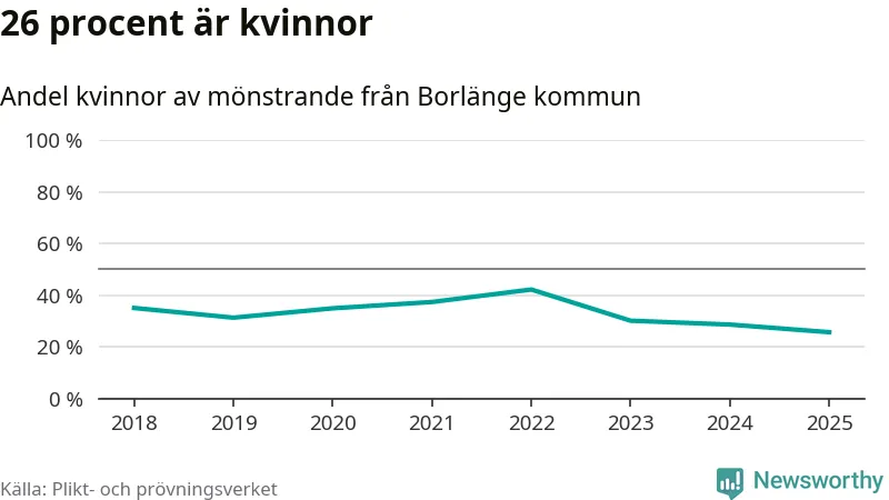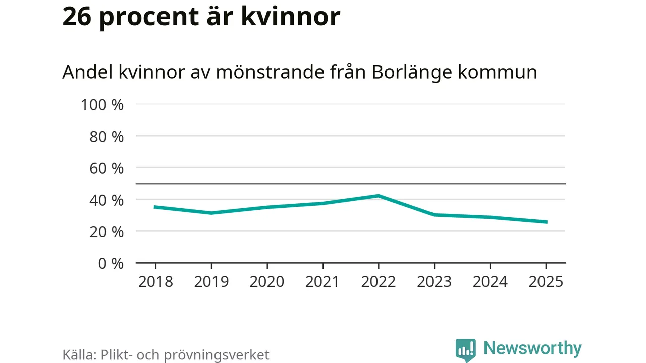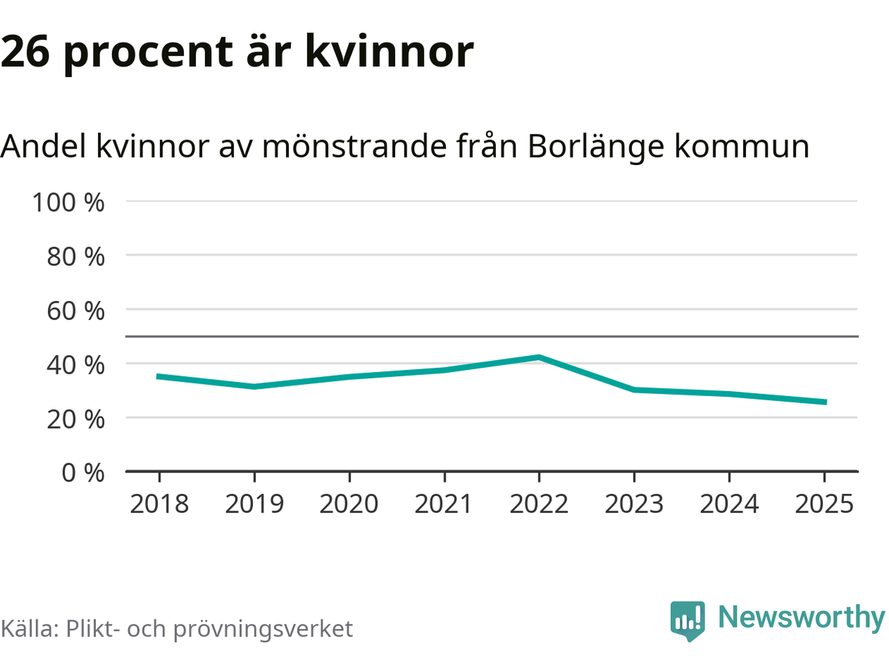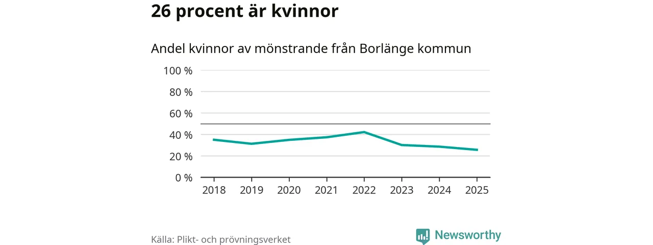 31 av de som kallats till mönstring från Borlänge är kvinnor, vilket motsvarar 26 procent av de mönstrande. Som mest har 43 kvinnor kallats från kommunen (2022). I riket som helhet är 28 procent av de mönstrande tjejer.