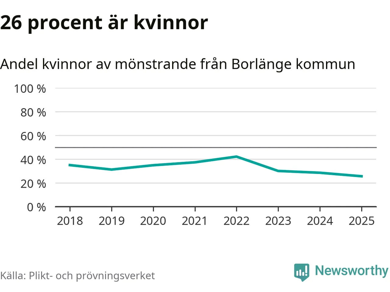 Av de som skrivits in till någon av Försvarmaktens grundutbildningar det senaste året, från juni 2024 till mars i år, kommer 33 (26 män och sju kvinnor) från Borlänge. 29 av dessa antogs efter att ha kallats till mönstring.