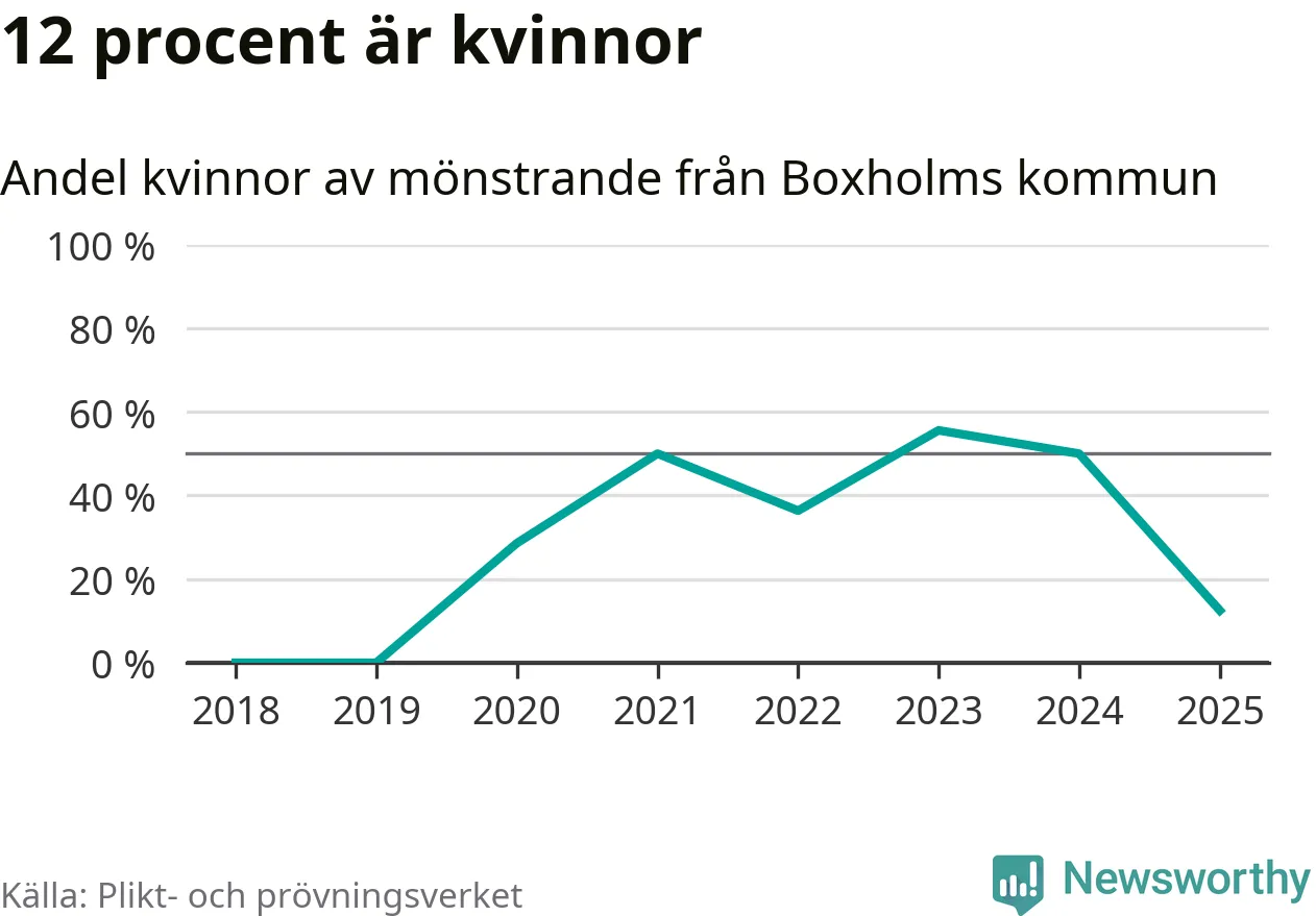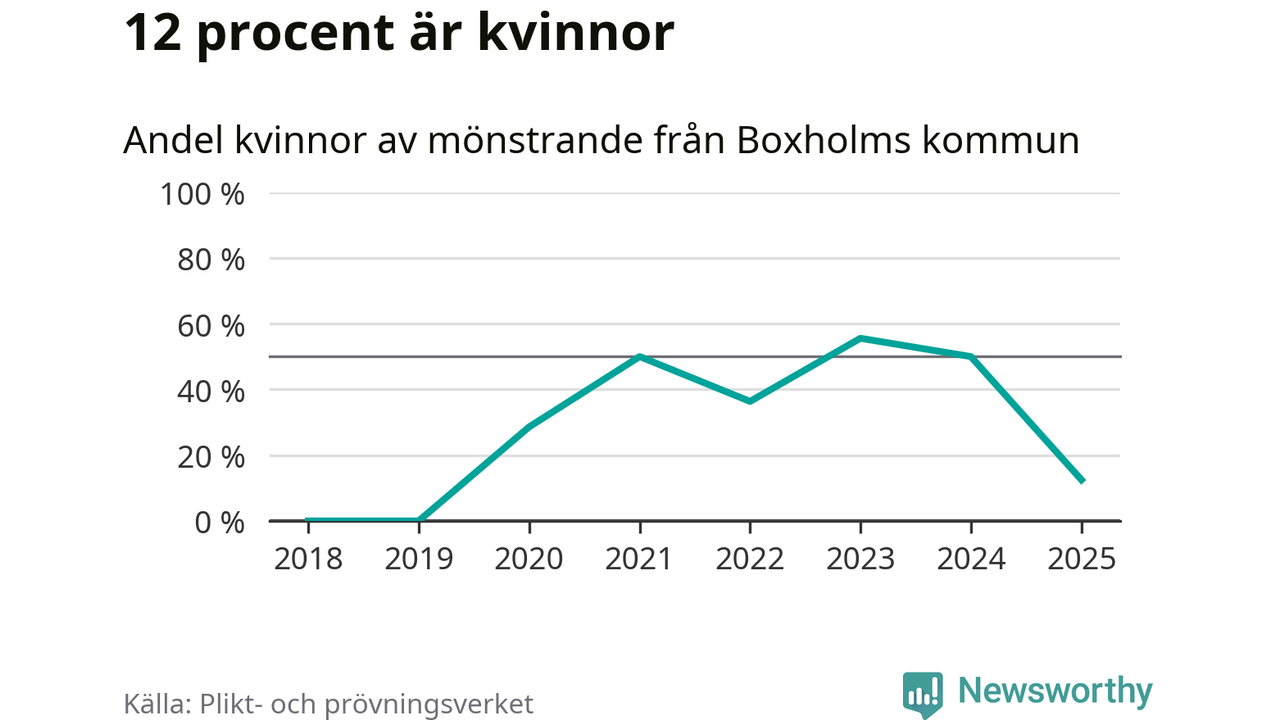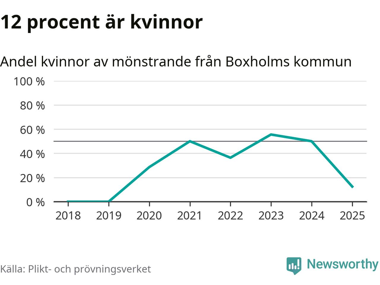Av de som skrivits in till någon av Försvarmaktens grundutbildningar det senaste året, från juni 2024 till mars i år, kommer två (en man och en kvinna) från Boxholm. Samtliga antogs efter att ha kallats till mönstring.