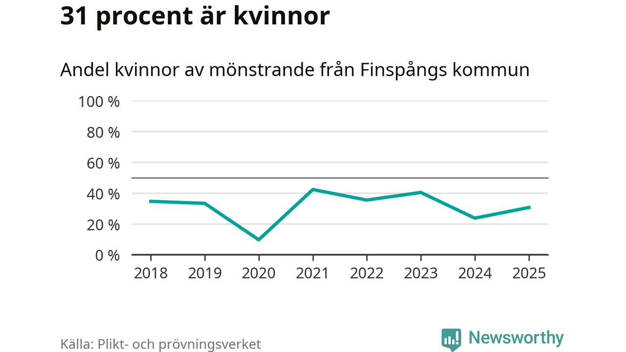 Av de som skrivits in till någon av Försvarmaktens grundutbildningar det senaste året, från juni 2024 till mars i år, kommer 17 (13 män och fyra kvinnor) från Finspång. 15 av dessa antogs efter att ha kallats till mönstring.