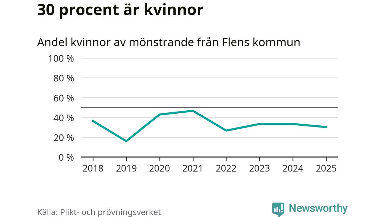 Av de som skrivits in till någon av Försvarmaktens grundutbildningar det senaste året, från juni 2024 till mars i år, kommer sex (fyra män och två kvinnor) från Flen. Samtliga antogs efter att ha kallats till mönstring.