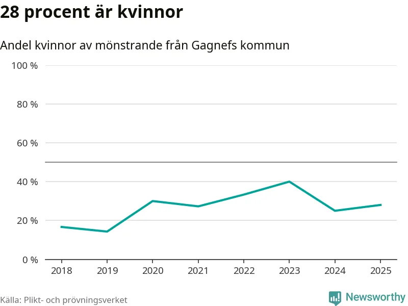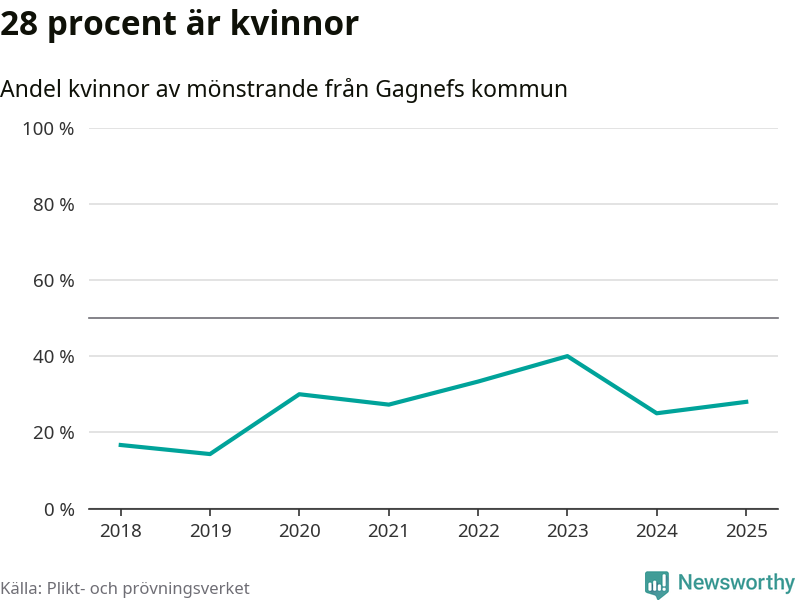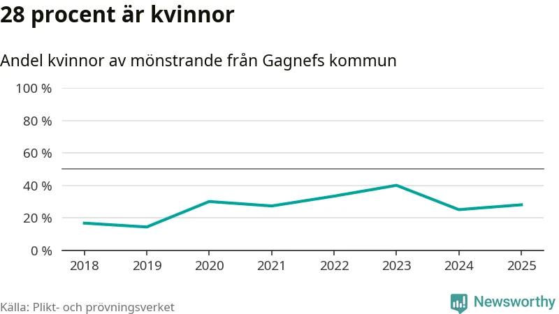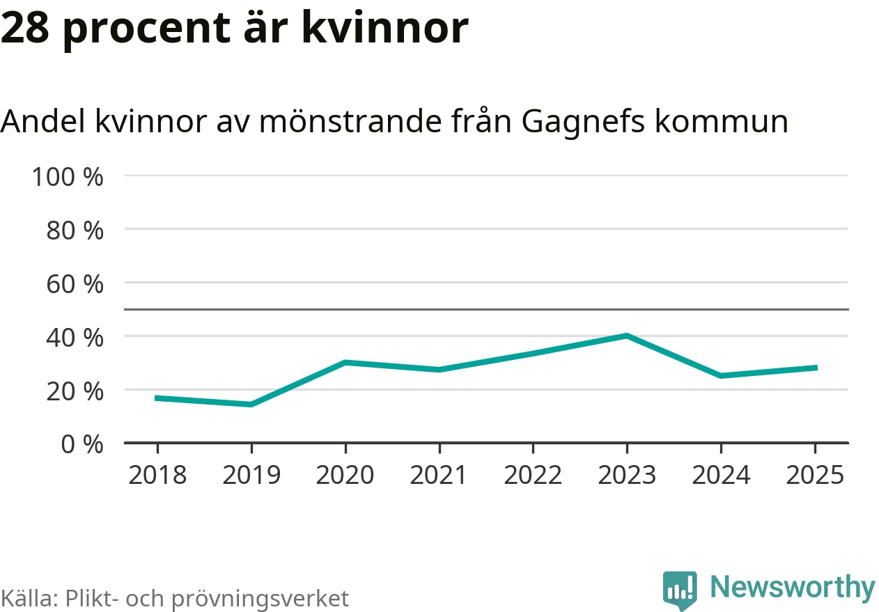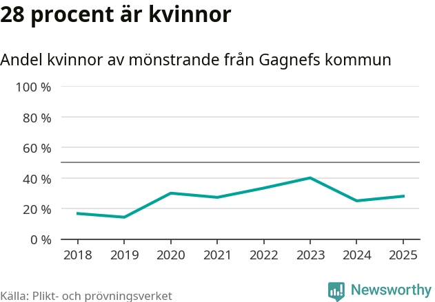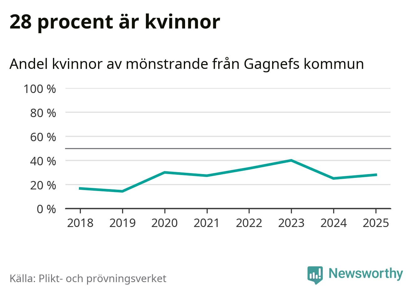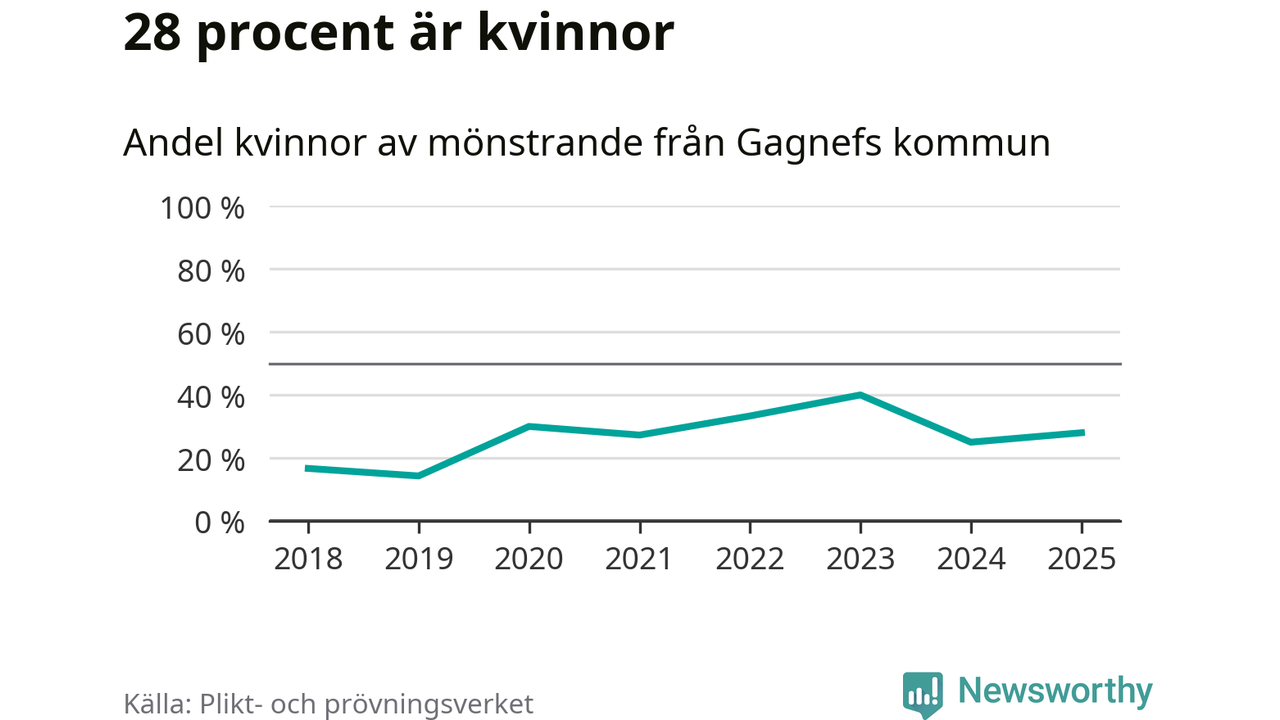 Av de som skrivits in till någon av Försvarmaktens grundutbildningar det senaste året, från juni 2024 till mars i år, kommer 13 (elva män och två kvinnor) från Gagnef. Tolv av dessa antogs efter att ha kallats till mönstring.