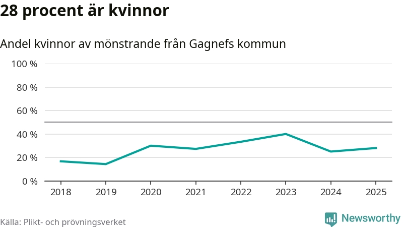 Nu kallas omkring 28 200 svenskar födda 2007 till mönstring. Och 25 av dem kommer från Gagnef, enligt ny statistik från Plikt- och prövningsverket. Det innebär att var femte invånare i åldersgruppen i kommunen kallas till mönstring. Det är ungefär lika stor andel som i Dalarna totalt. I riket som helhet kallas nästan var fjärde person i årskullen.