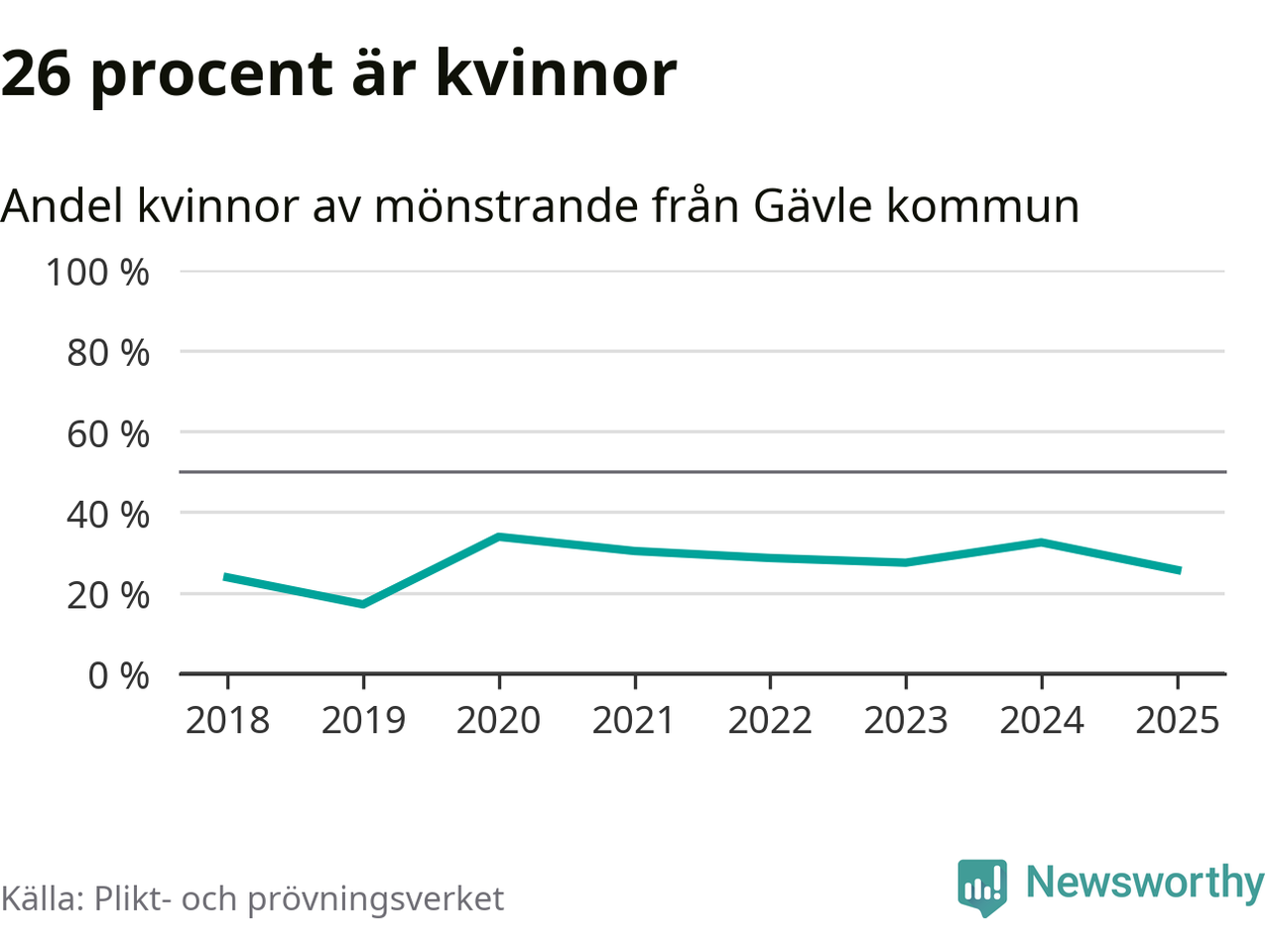 Av de som skrivits in till någon av Försvarmaktens grundutbildningar det senaste året, från juni 2024 till mars i år, kommer 75 (67 män och åtta kvinnor) från Gävle. 66 av dessa antogs efter att ha kallats till mönstring.