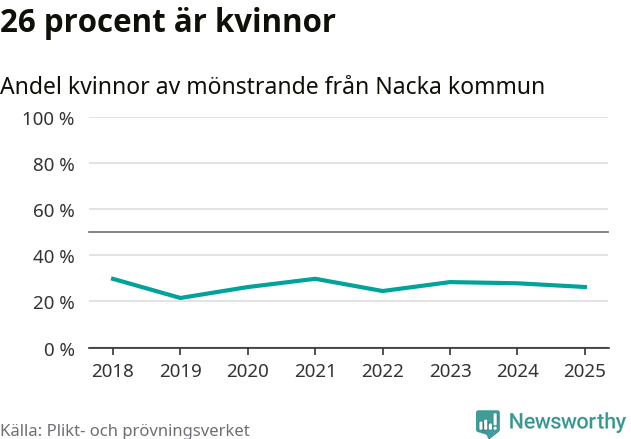26 procent av de kallade från Nacka är kvinnor