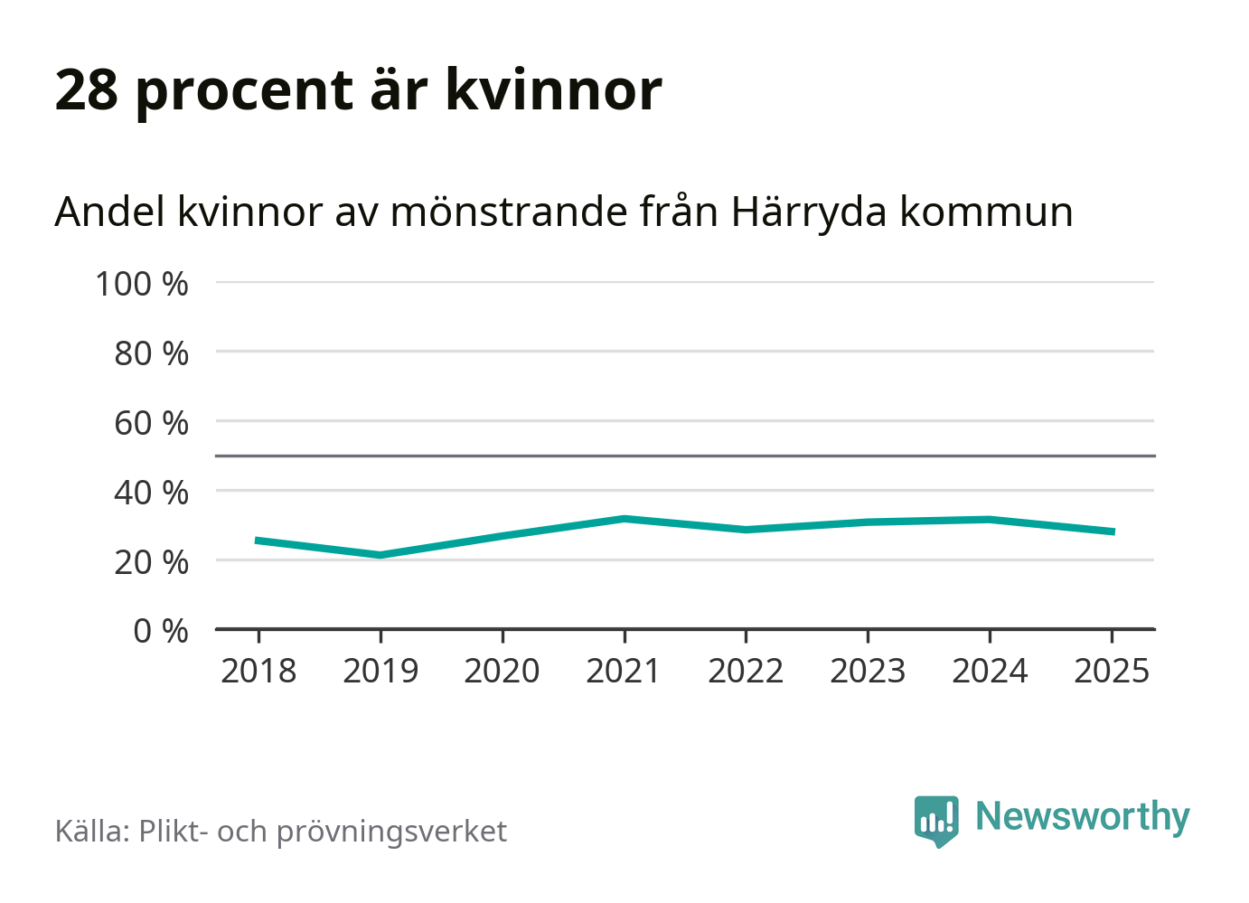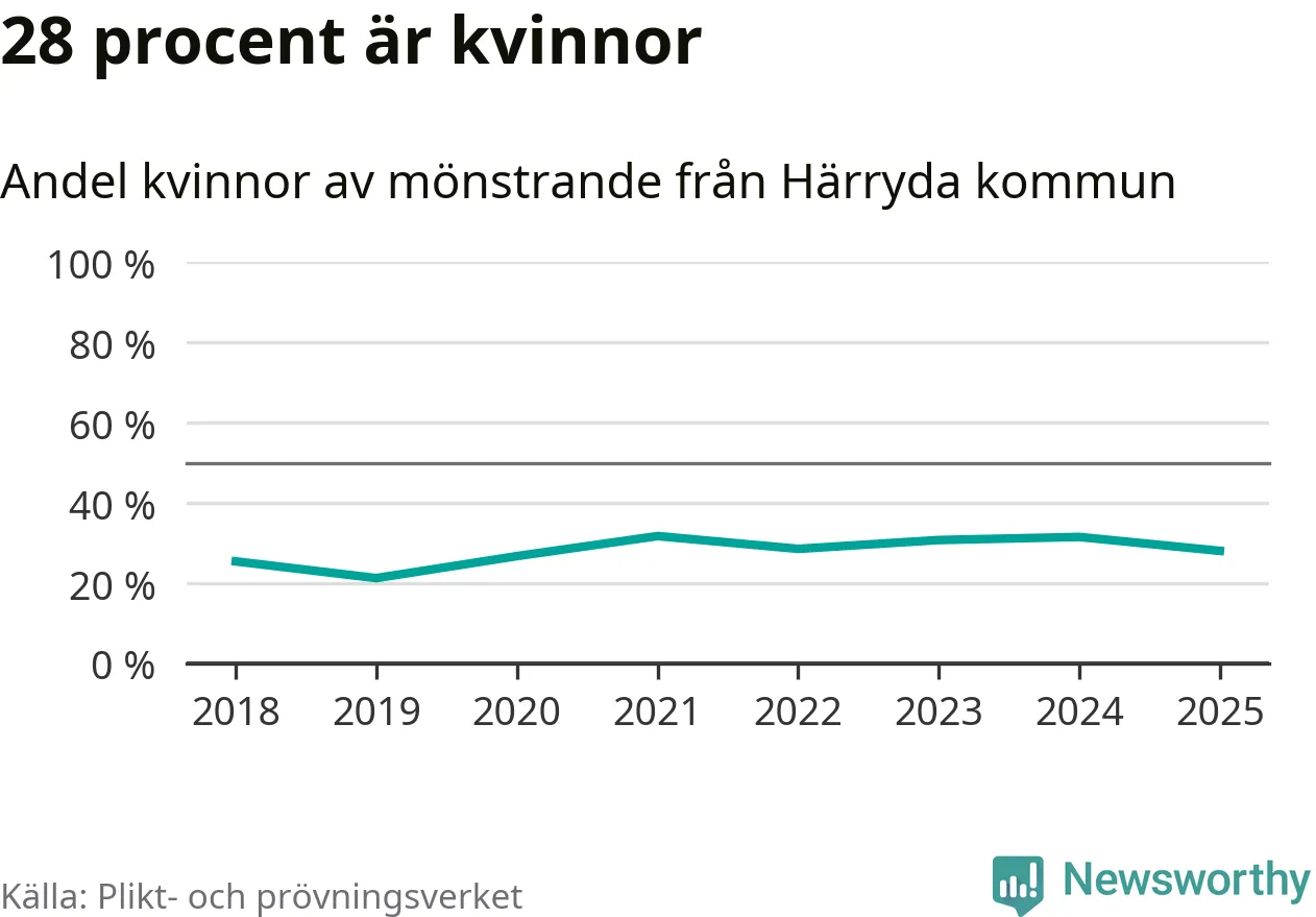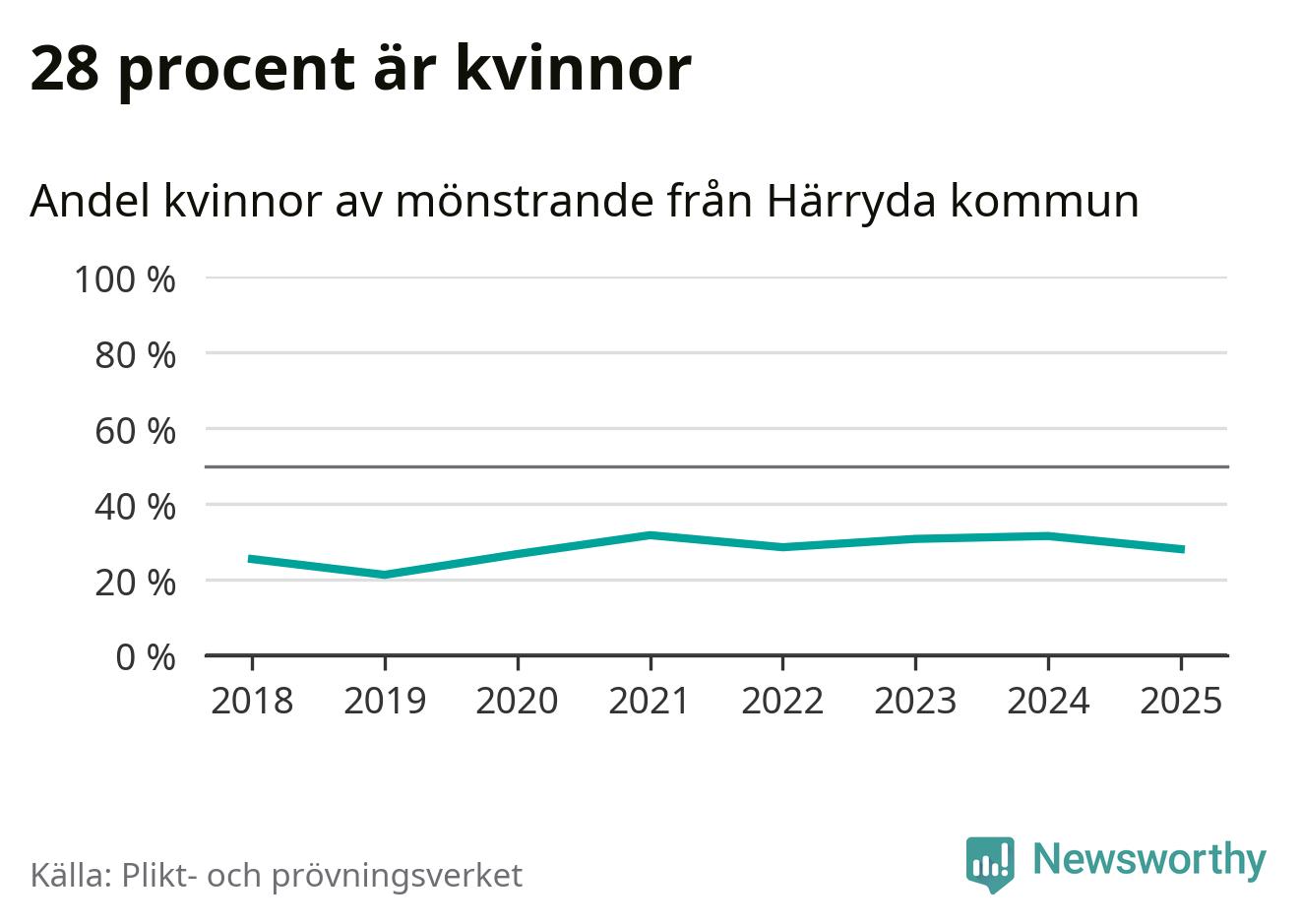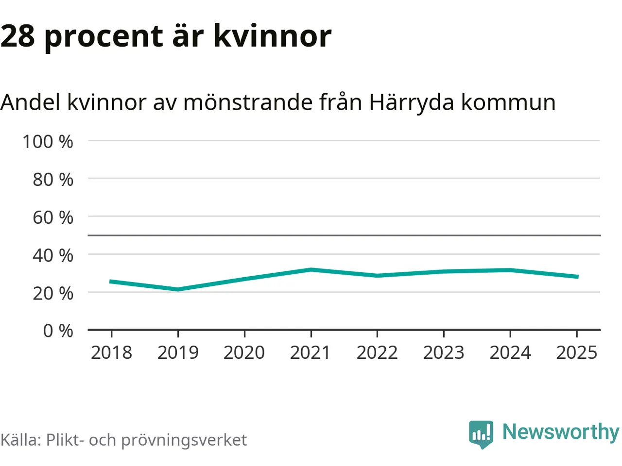 Av de som skrivits in till någon av Försvarmaktens grundutbildningar det senaste året, från juni 2024 till mars i år, kommer 47 (37 män och tio kvinnor) från Härryda. 43 av dessa antogs efter att ha kallats till mönstring.