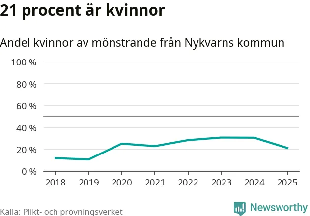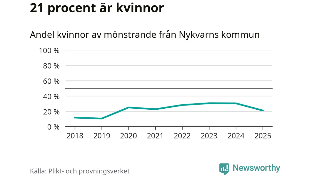 Av de som skrivits in till någon av Försvarmaktens grundutbildningar det senaste året, från juni 2024 till mars i år, kommer tolv (nio män och tre kvinnor) från Nykvarn. Nio av dessa antogs efter att ha kallats till mönstring.