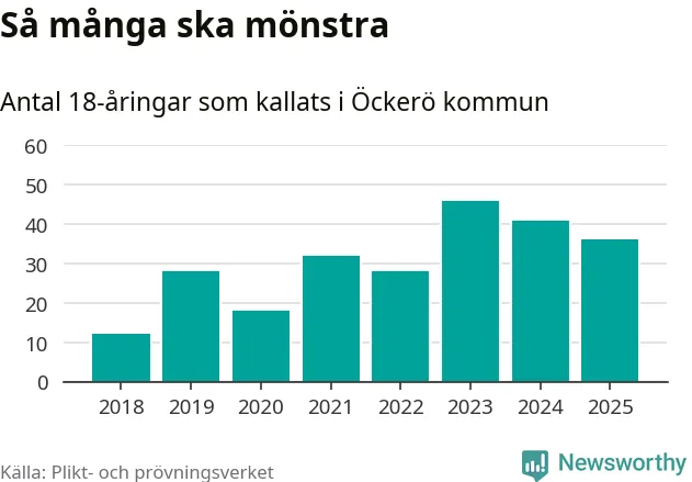 I takt med att värnplikten byggs ut ökar antalet 18-åringar som kallas till mönstring. Men från Öckerö kallas färre än i fjol, visar siffror från Plikt- och prövningsverket.