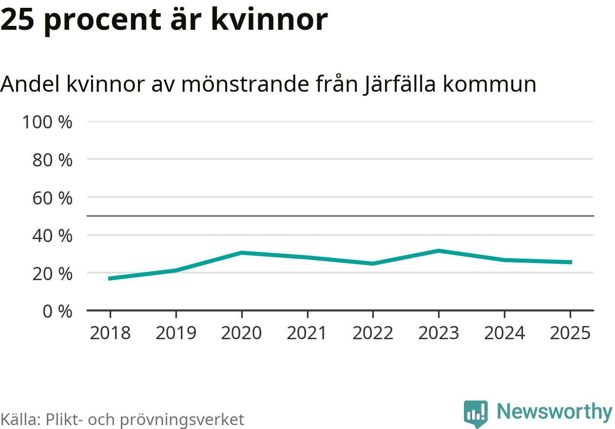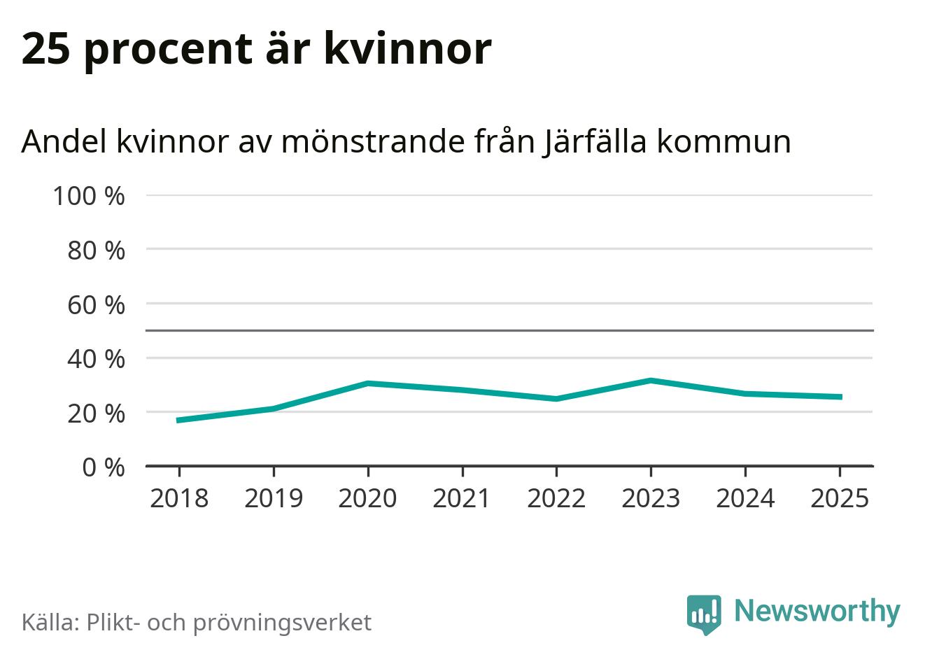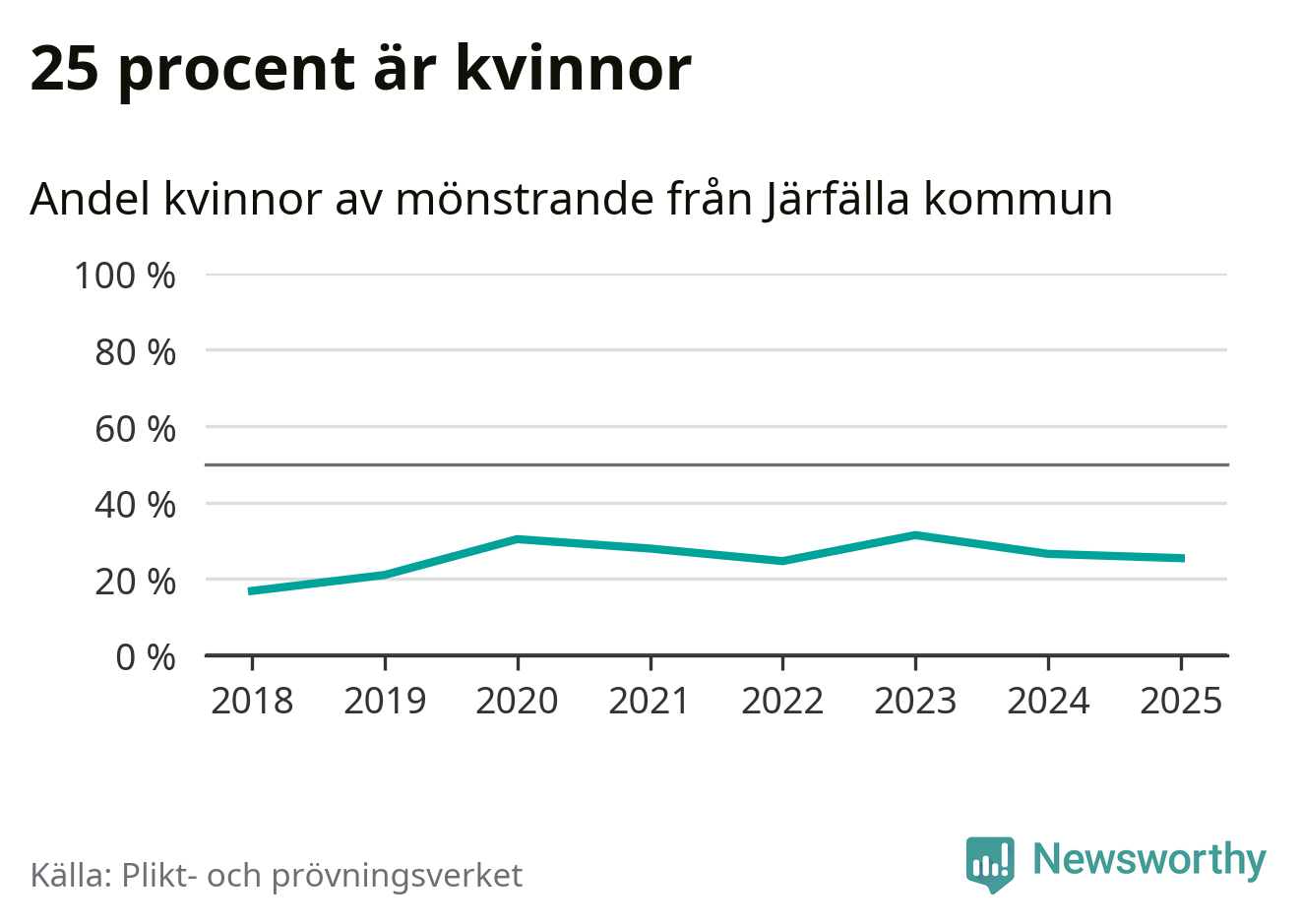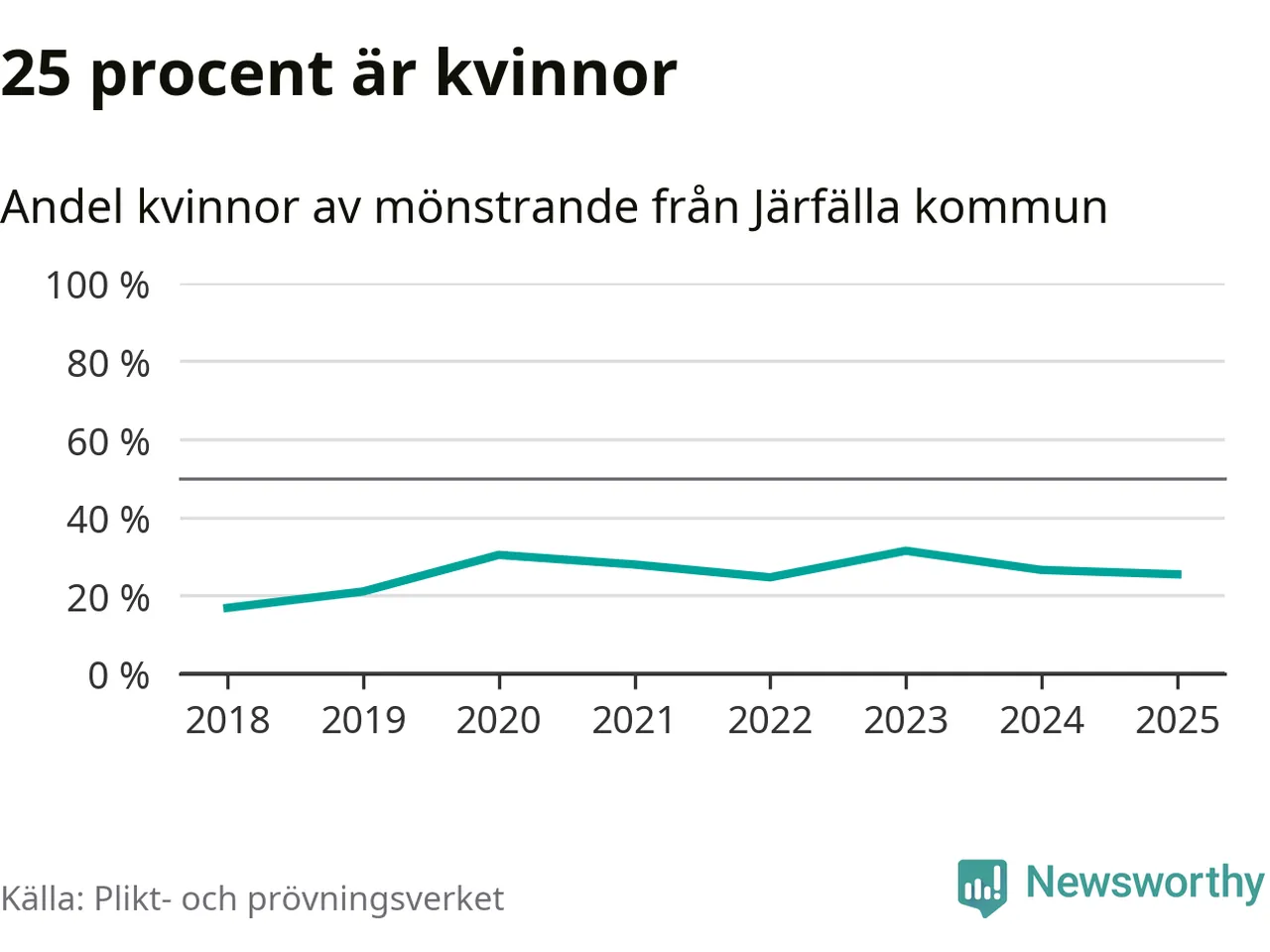 Av de som skrivits in till någon av Försvarmaktens grundutbildningar det senaste året, från juni 2024 till mars i år, kommer 53 (47 män och sex kvinnor) från Järfälla. 43 av dessa antogs efter att ha kallats till mönstring.