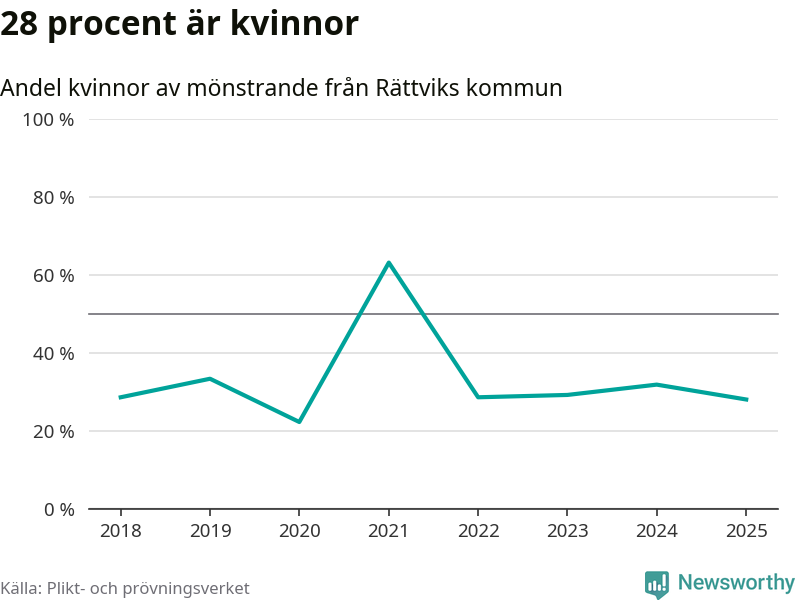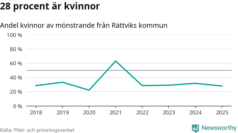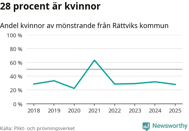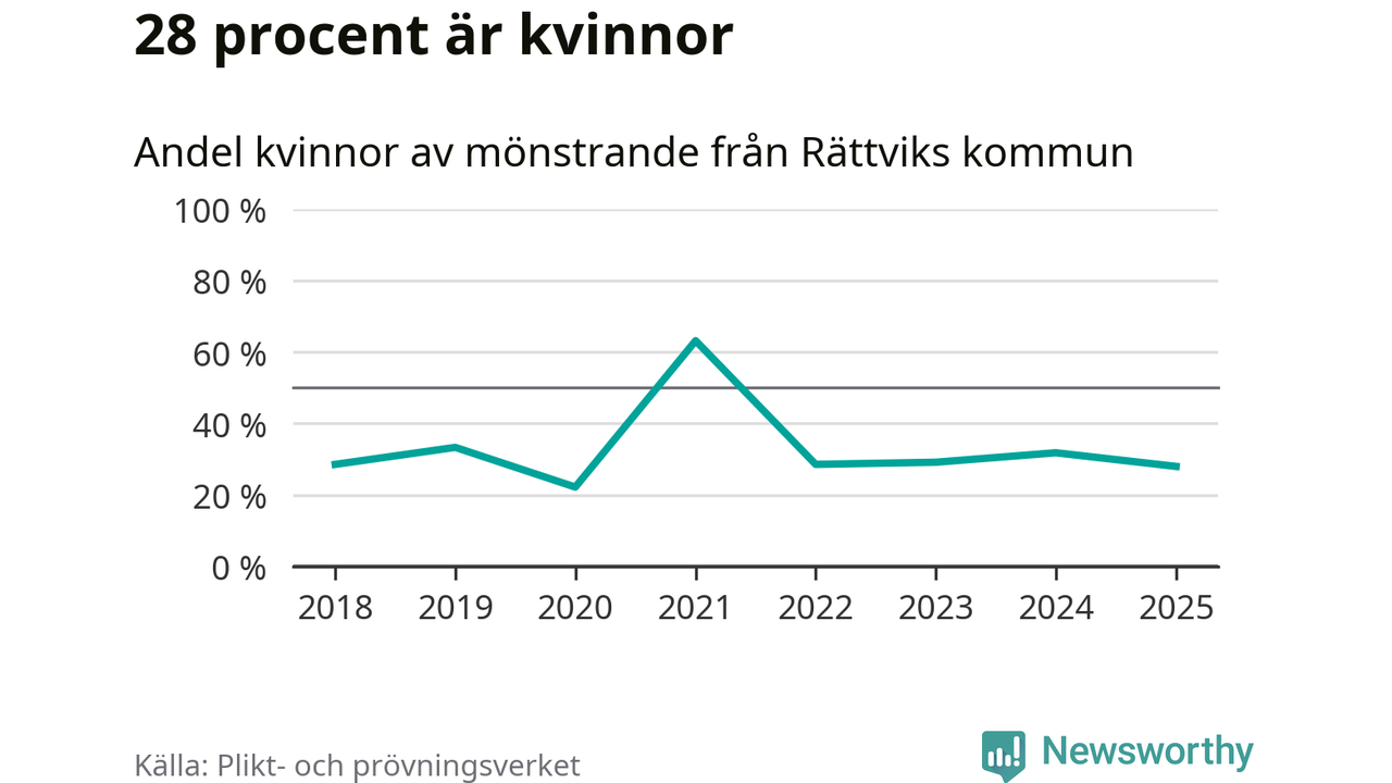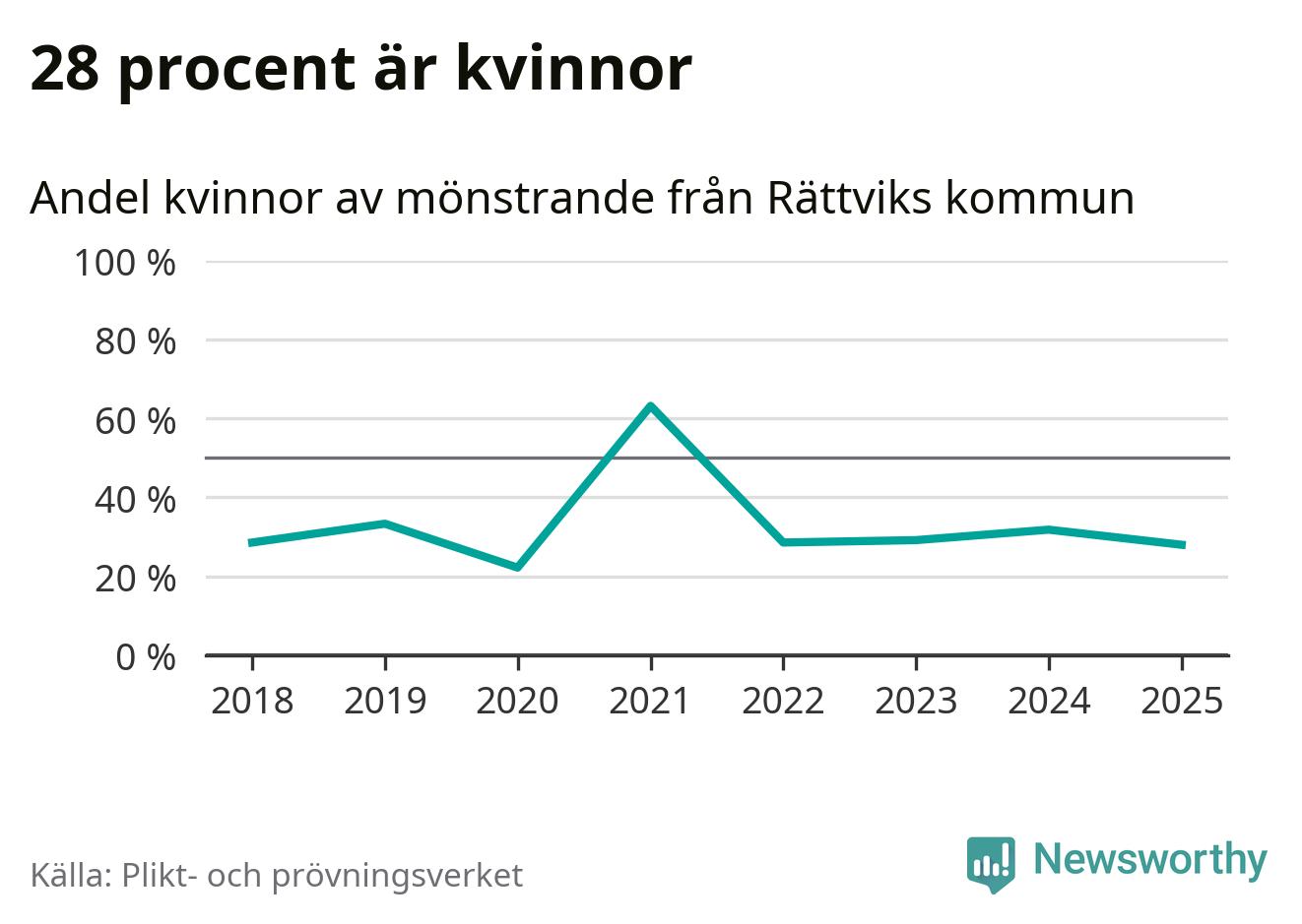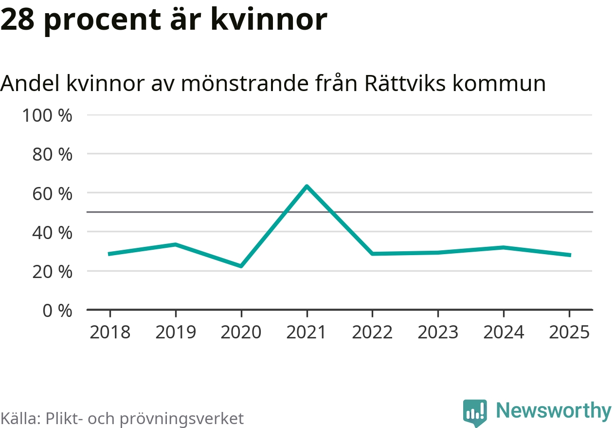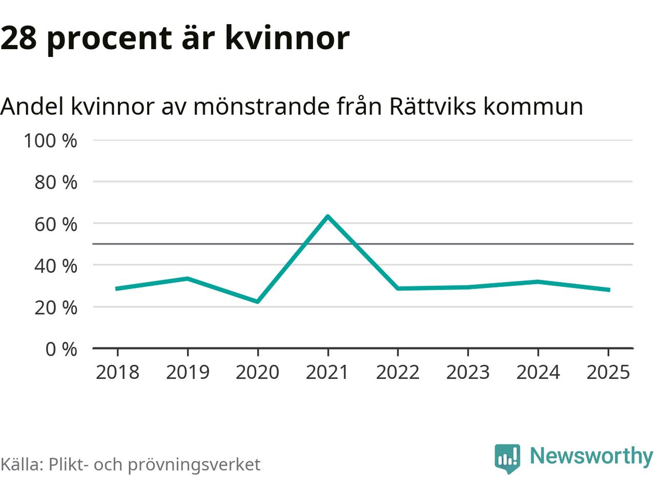 Nu kallas omkring 28 200 svenskar födda 2007 till mönstring. Och 25 av dem kommer från Rättvik, enligt ny statistik från Plikt- och prövningsverket. Det innebär att var femte invånare i åldersgruppen i kommunen kallas till mönstring. Det är ungefär lika stor andel som i Dalarna totalt. I riket som helhet kallas nästan var fjärde person i årskullen.