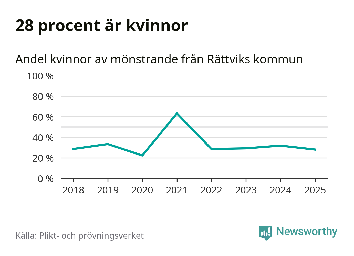 Sju av de som kallats till mönstring från Rättvik är kvinnor, vilket motsvarar 28 procent av de mönstrande. Som mest har tolv kvinnor kallats från kommunen (2021). I riket som helhet är 28 procent av de mönstrande tjejer.