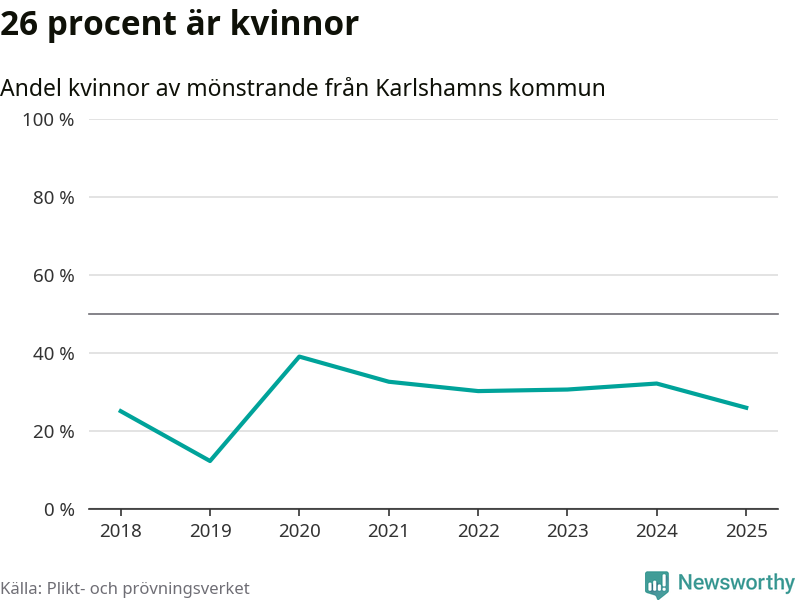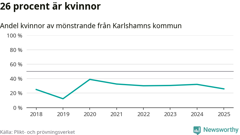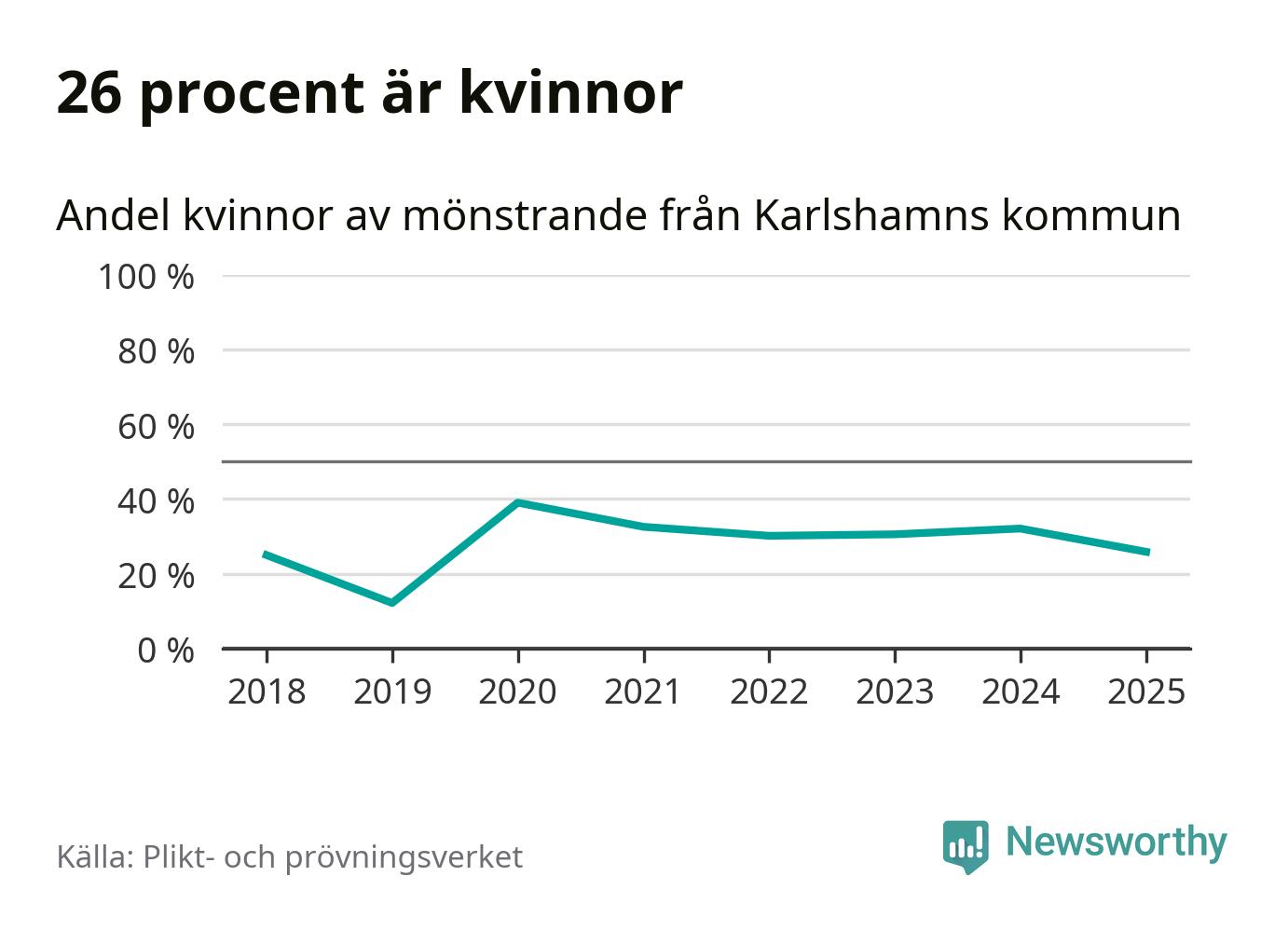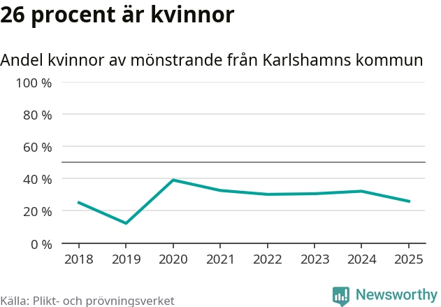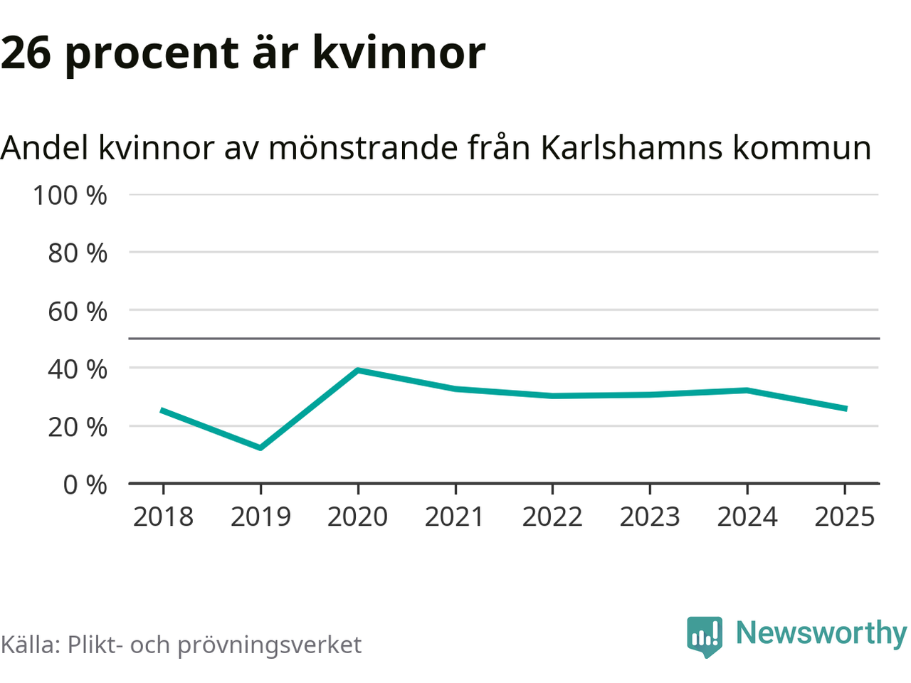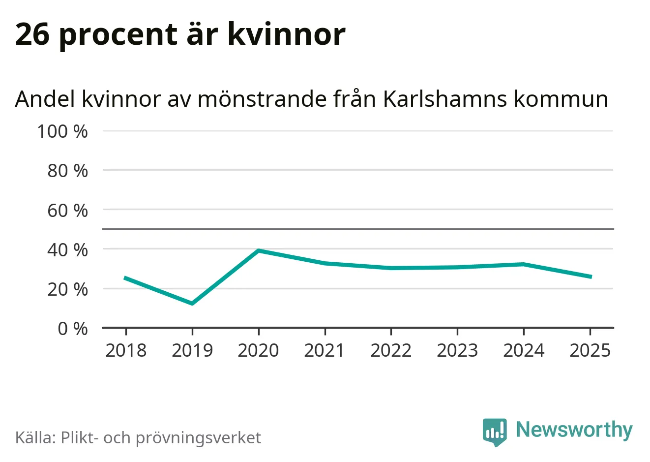 85 personer är det högsta antalet kallade i Karlshamn sedan 2018, som är första året med statistik på kommunnivå (värnplikten återinfördes 2017), och fyra mönstrande fler än 2024. Totalt från Blekinge län kallas 500 personer i år.