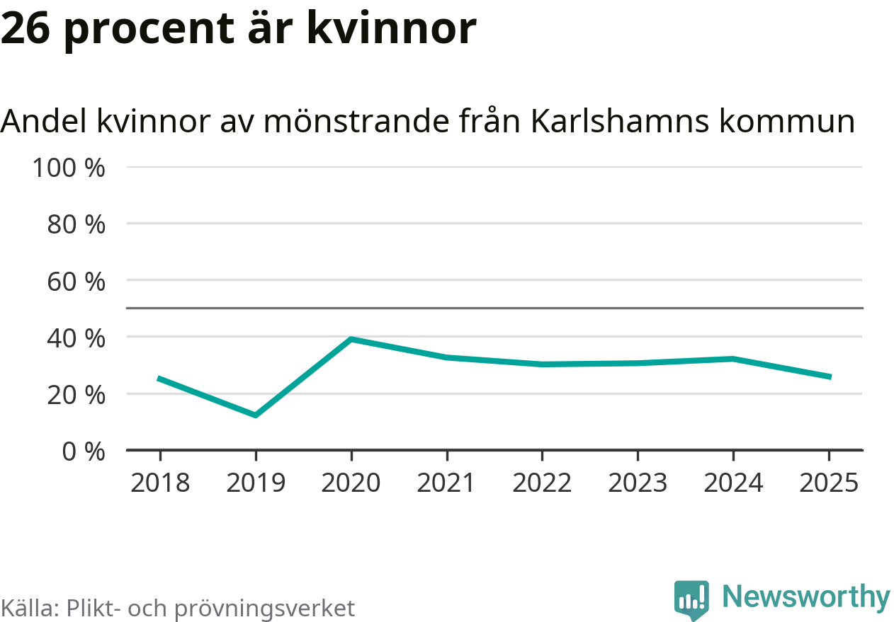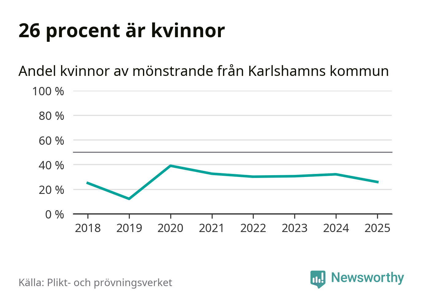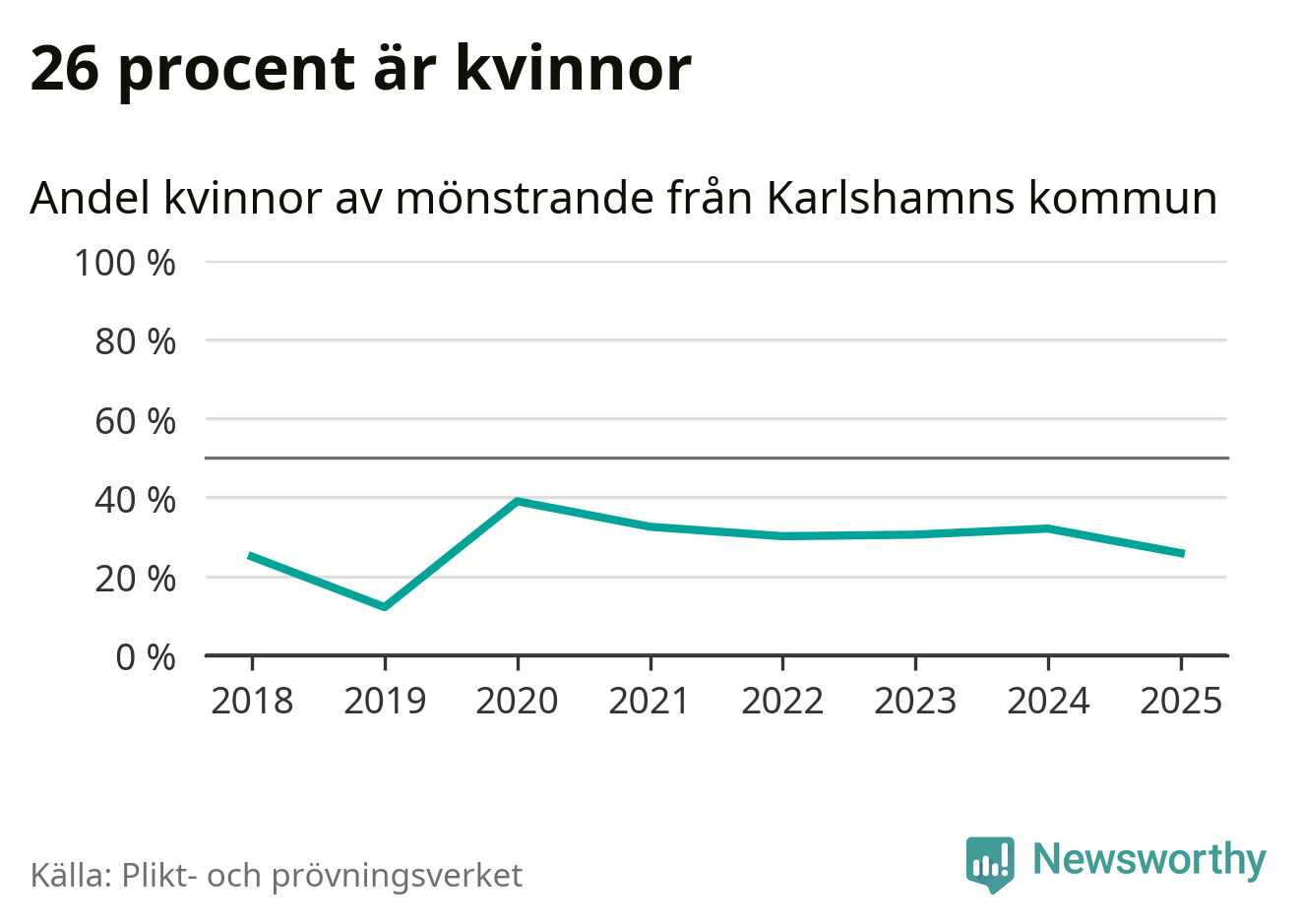 Av de som skrivits in till någon av Försvarmaktens grundutbildningar det senaste året, från juni 2024 till mars i år, kommer 24 (21 män och tre kvinnor) från Karlshamn. 20 av dessa antogs efter att ha kallats till mönstring.