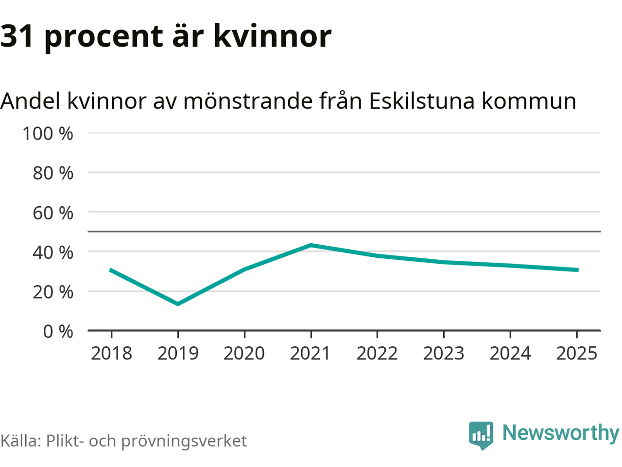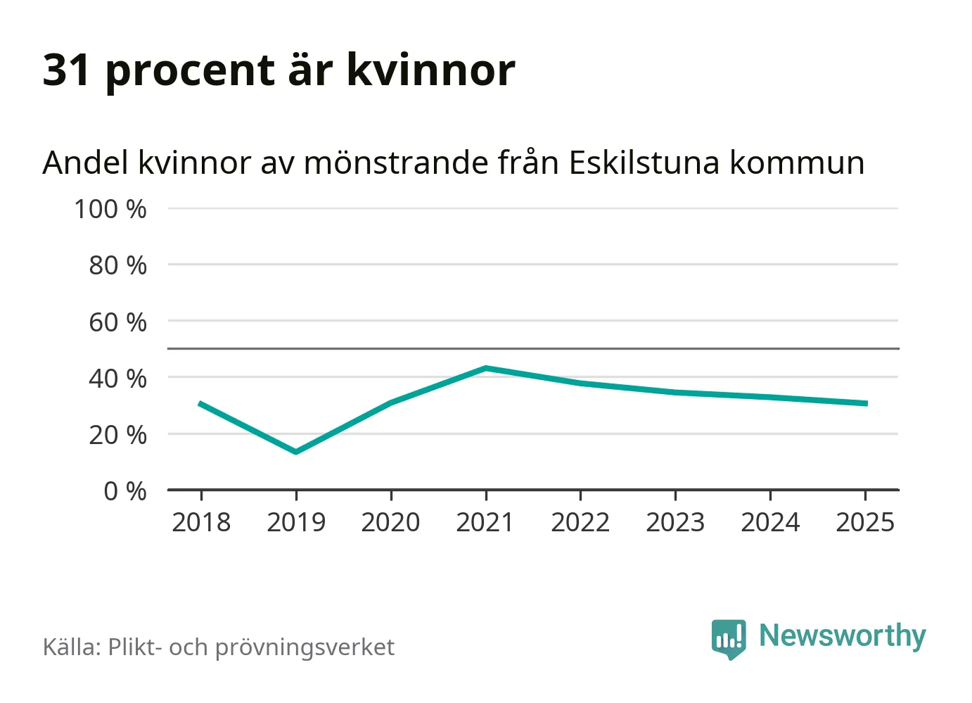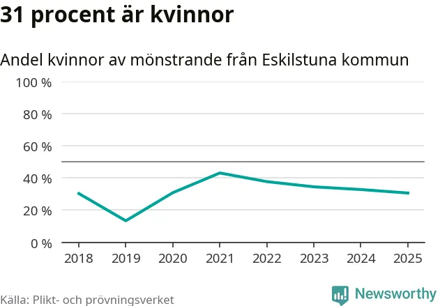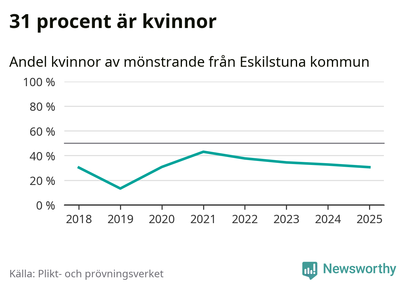 Av de som skrivits in till någon av Försvarmaktens grundutbildningar det senaste året, från juni 2024 till mars i år, kommer 61 (51 män och tio kvinnor) från Eskilstuna. 56 av dessa antogs efter att ha kallats till mönstring.