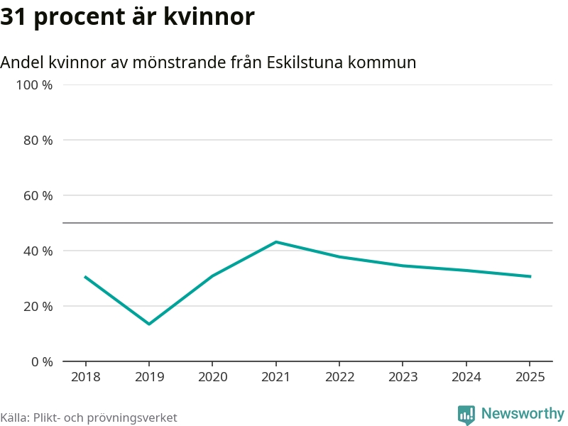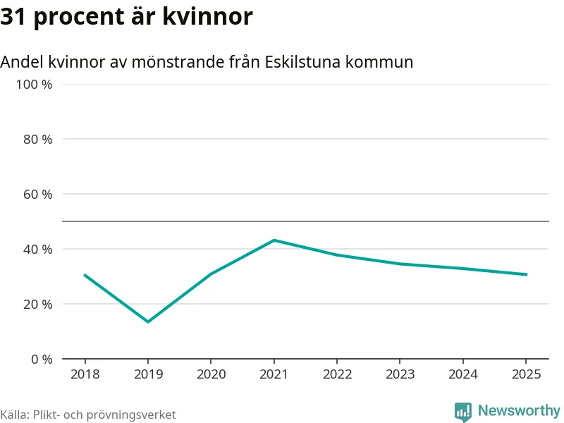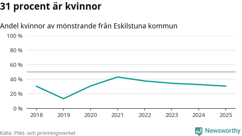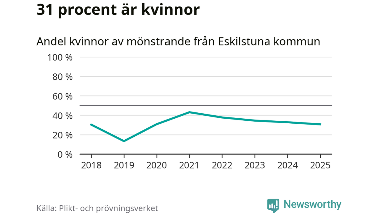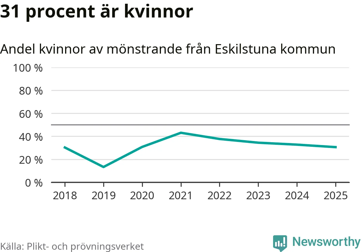 Av de som skrivits in till någon av Försvarmaktens grundutbildningar det senaste året, från juni 2024 till mars i år, kommer 61 (51 män och tio kvinnor) från Eskilstuna. 56 av dessa antogs efter att ha kallats till mönstring.